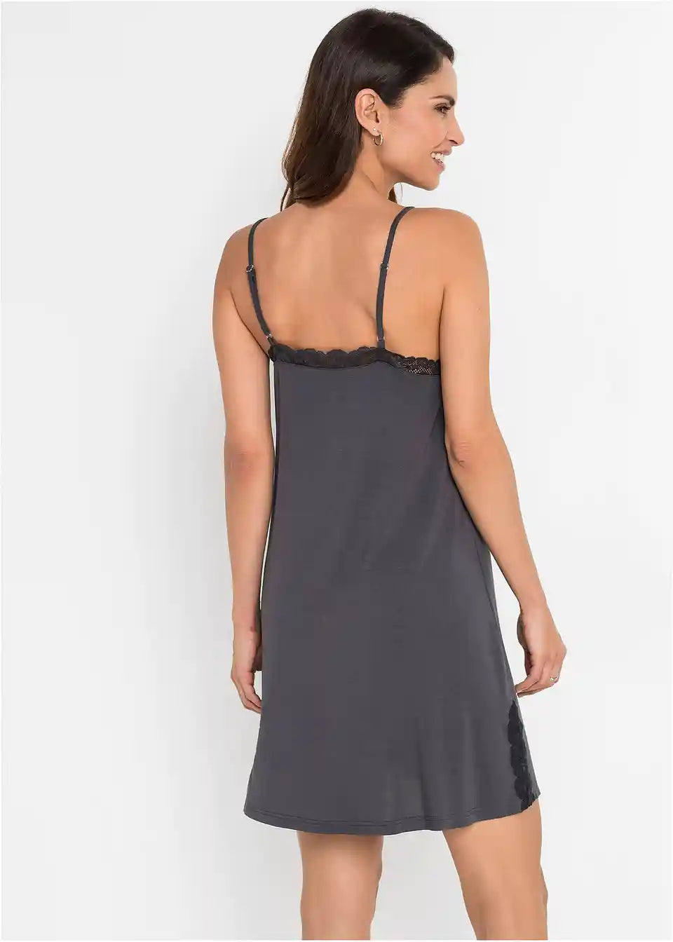Dieses verführerische Negligé ist aus weichem Viskose Material gefertigt. Die Spitze und die seitlichen Schlitze betonen die Weiblichkeit und sorgen für das gewisse Etwas an dem Negligé.