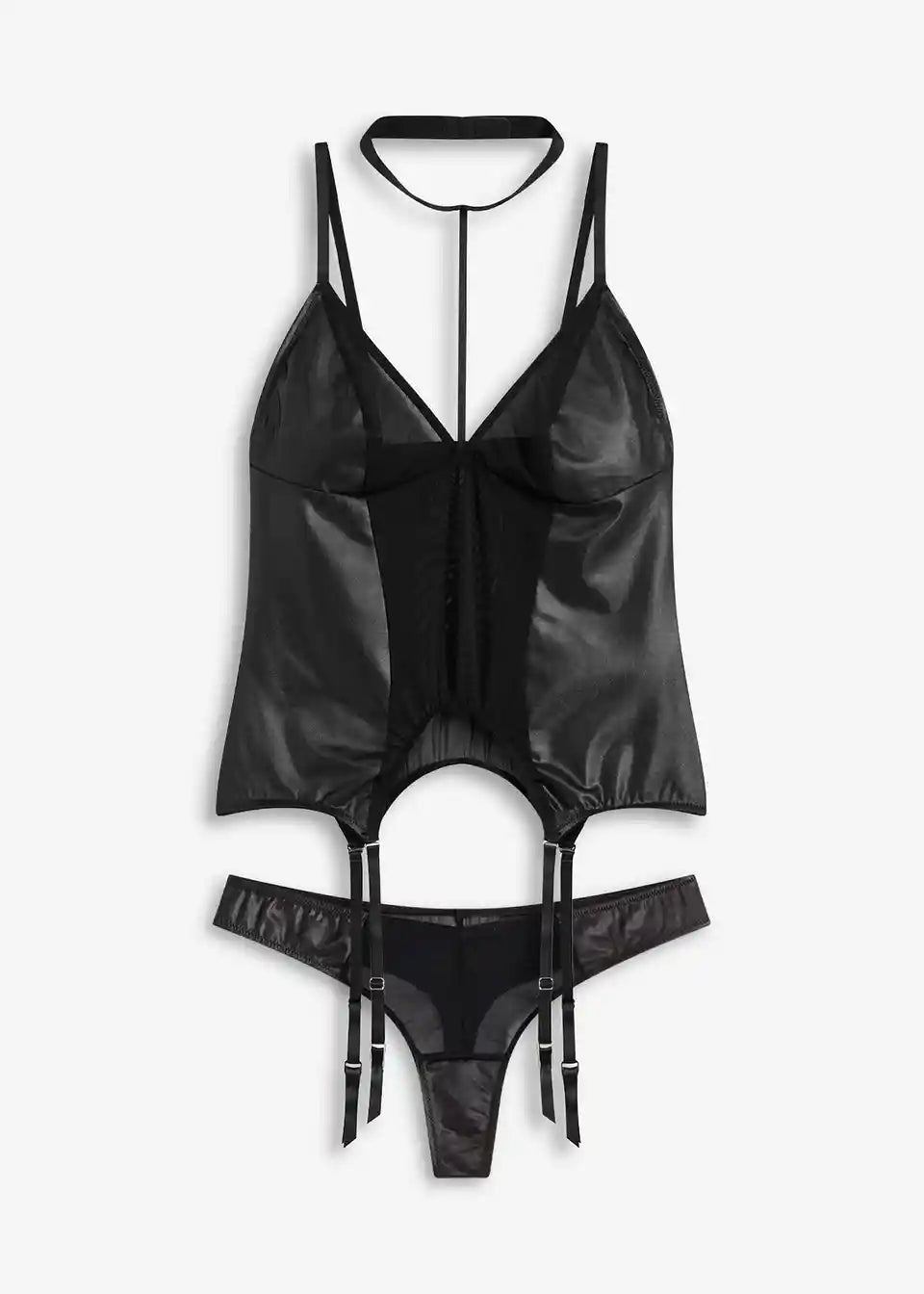Strapstop + String (2-tlg.Set) im Wetlook mit Mesh-Einsätzen.