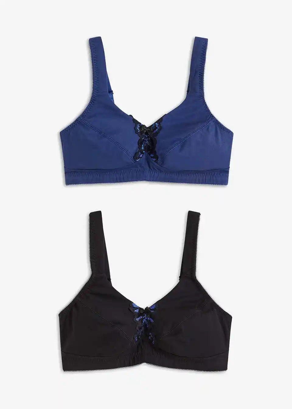Bügelloser BH mit weicher Bio-Baumwolle und Spitze im praktischen 2er Pack