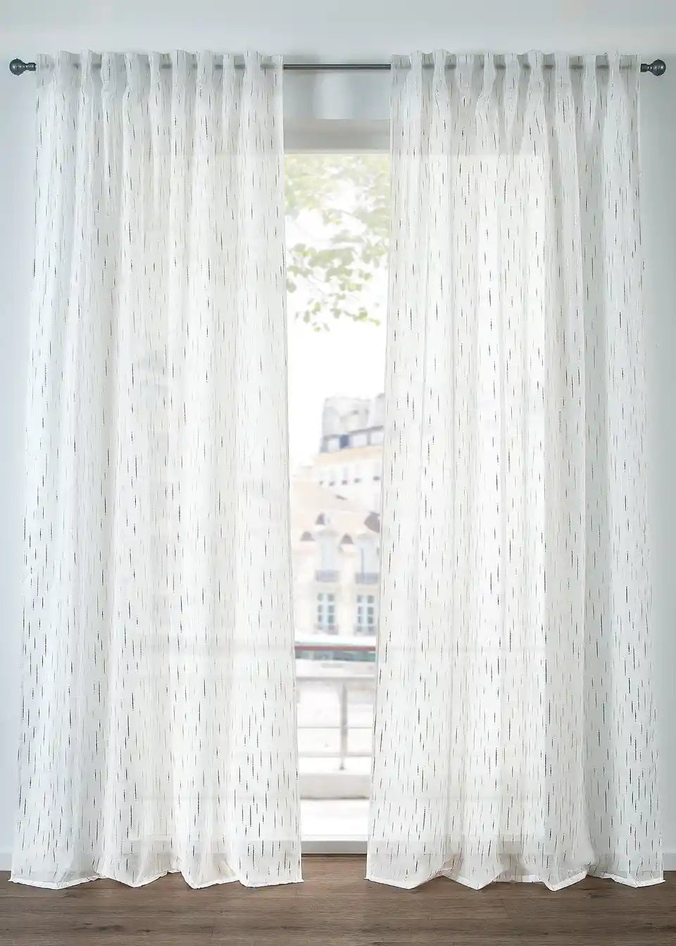Die Gardine aus leichtem Batist Gewebe hat einen zarten Glanzdruck und zaubert eine glamouröse Stimmung an Deine Fenster