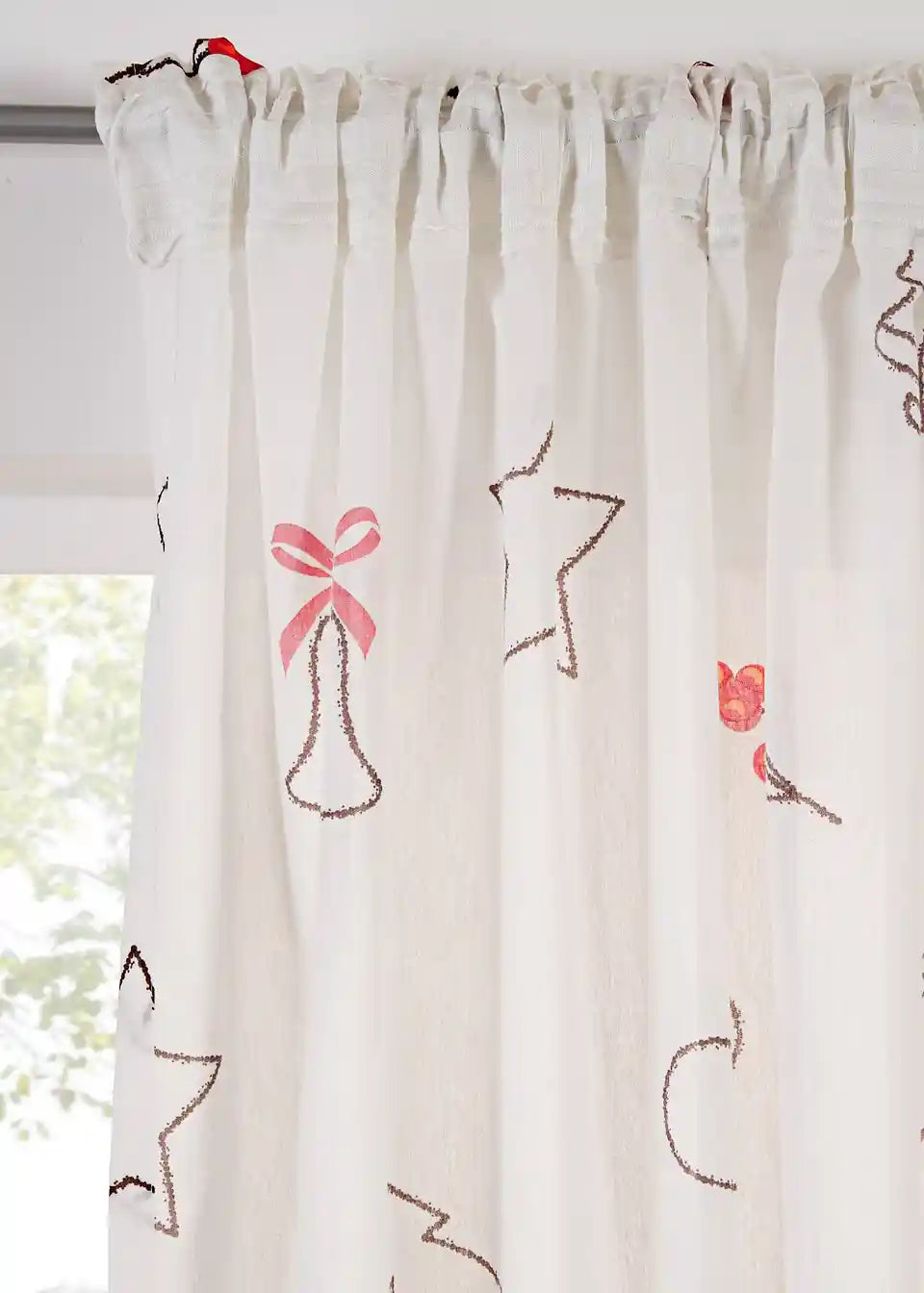 Bringe festliche Stimmung in dein Zuhause mit dieser halbtransparenten Gardine! Gefertigt aus 100% recyceltem Polyester, ist sie nicht nur umweltfreundlich, sondern auch mit einem liebevollen Weihnachtsmotiv bedruckt. Sie lässt sanftes Licht durch und schafft eine warme, weihnachtliche Atmosphäre.