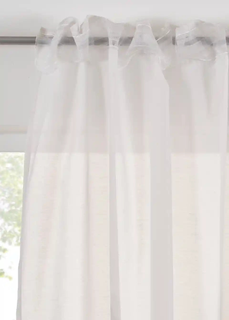 Die Gardine kannst du sofort und kinderleicht dekorieren. Sie hat eine schöne Optik durch ihren nach oben auslaufenden zeitlosen Duck und die wohnliche Farbstellung.