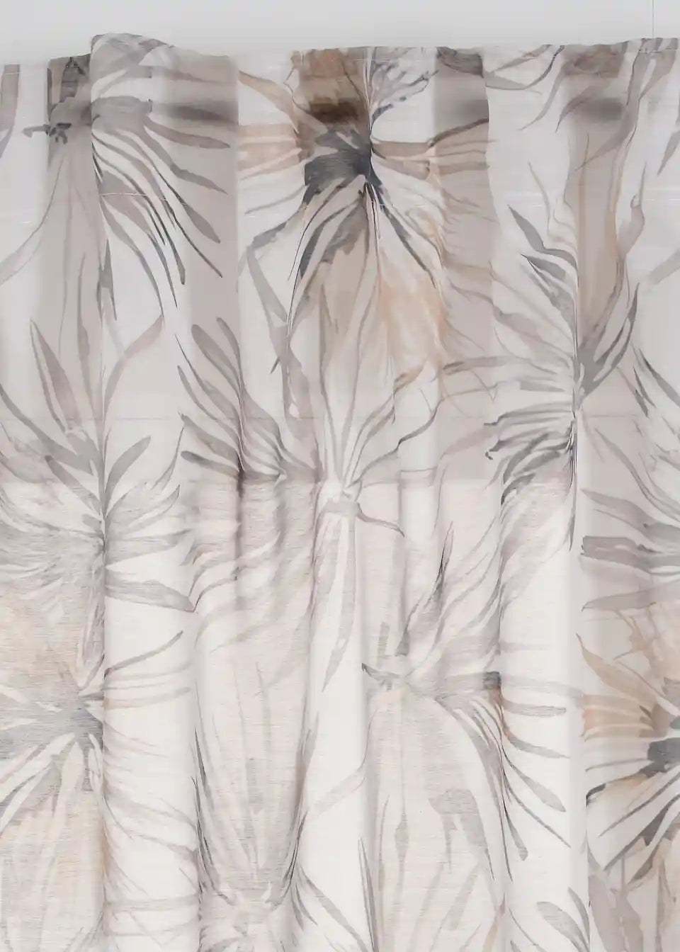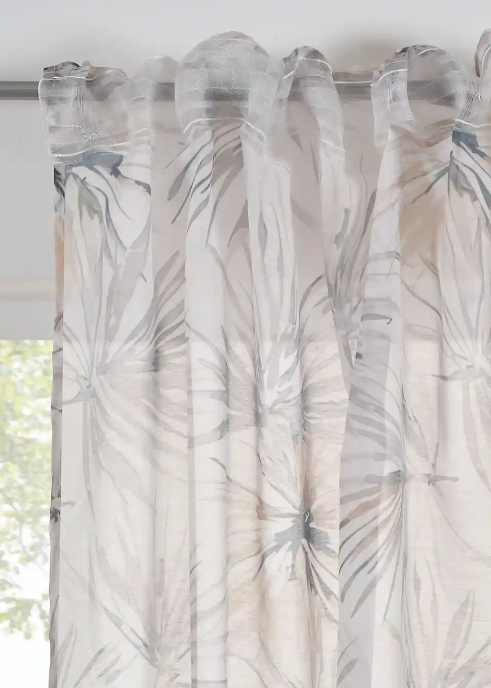 Die Gardine verzaubert durch ihre wohnlichen Farben und den zeitlosen Druck. Die leichte zarte Qualität ist ein weiterer Pluspunkt.