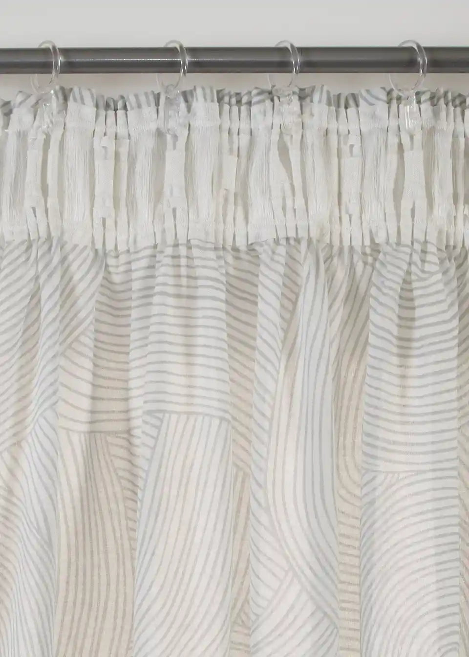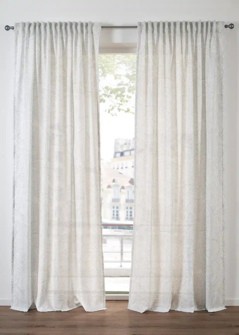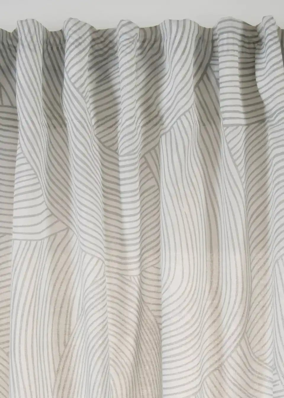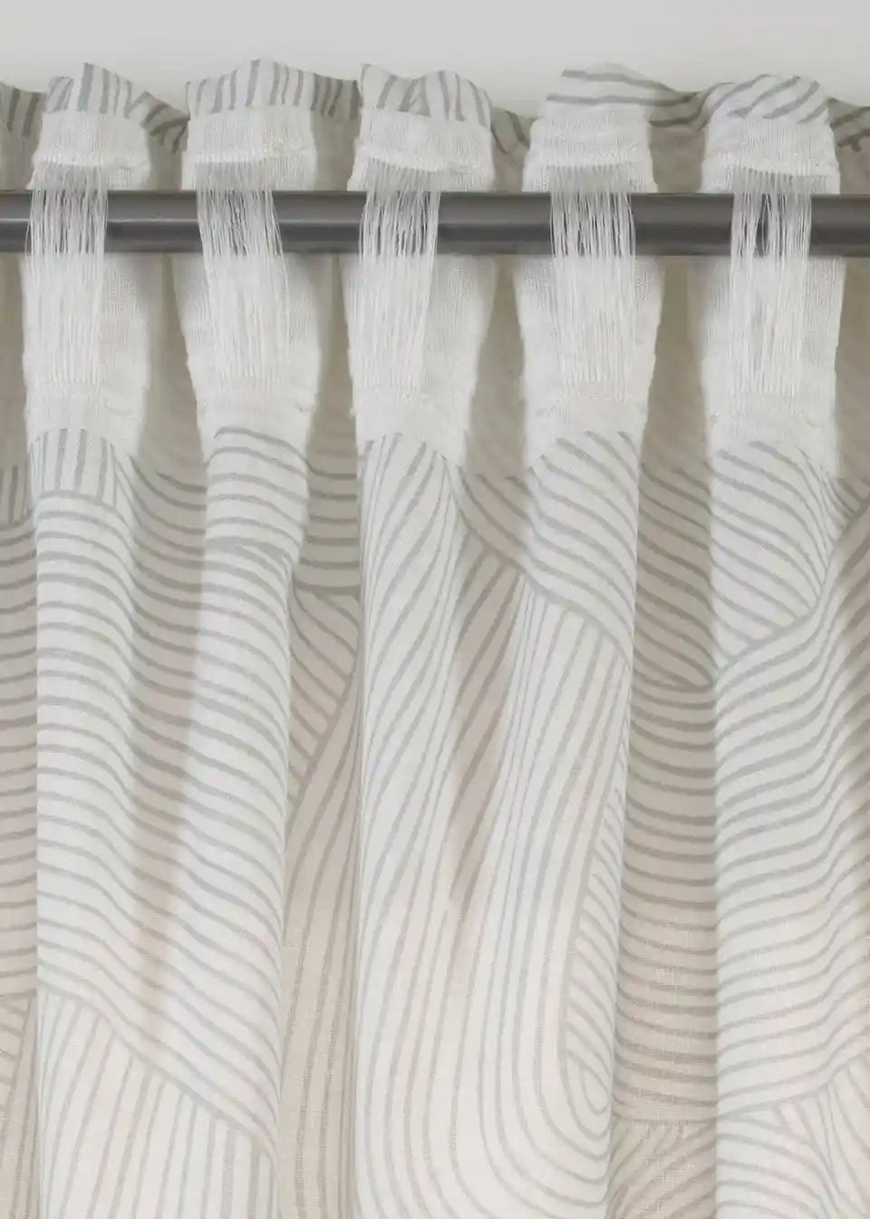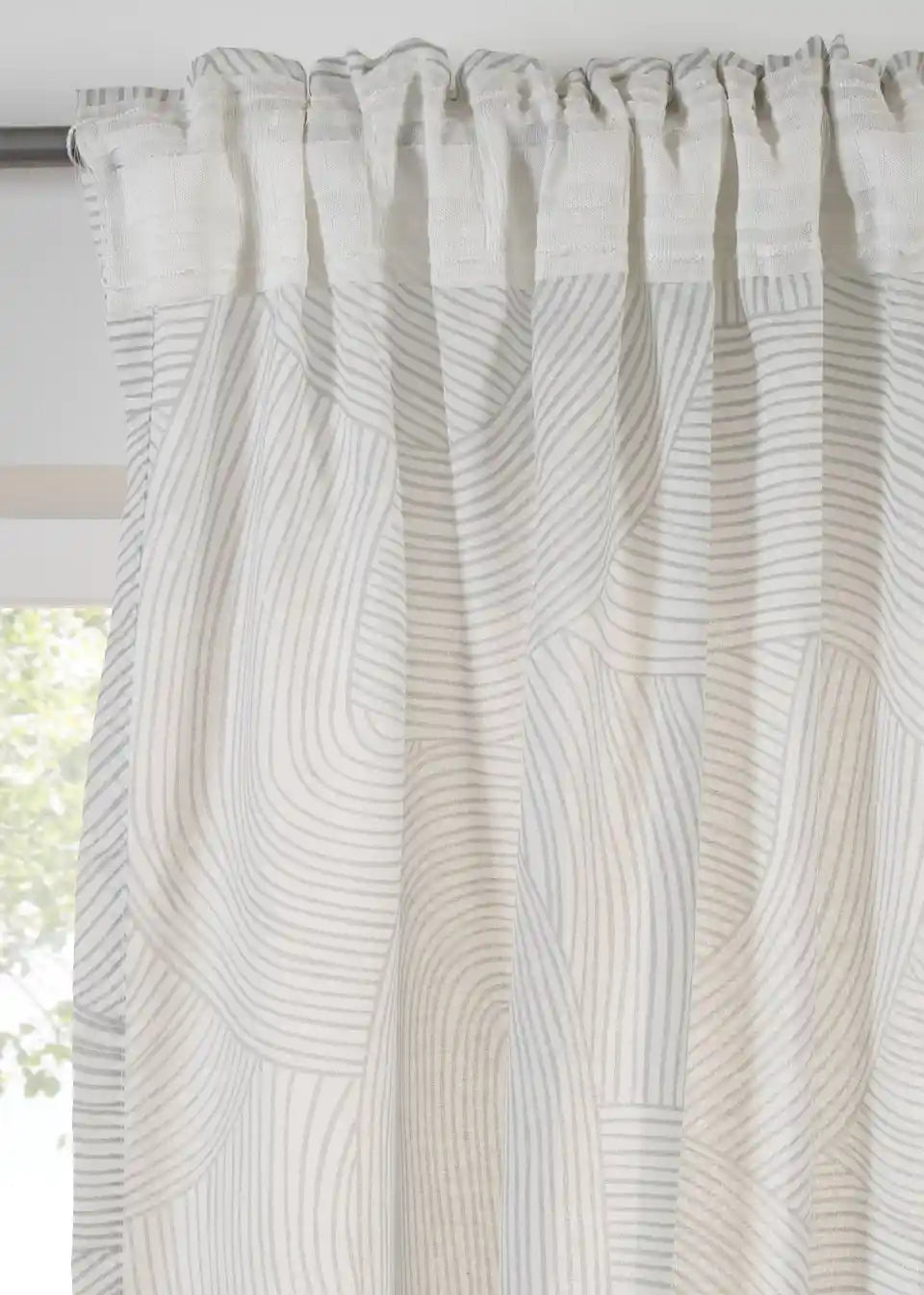 Verleih deinem Zuhause einen Hauch von Stil und Nachhaltigkeit mit dieser halbtransparenten Gardine. Der moderne grafische Druck in dezenter Farbstellung fügt sich perfekt in jeden Raum ein und schafft eine stilvolle und beruhigende Atmosphäre. Gefertigt aus 100% recyceltem Polyester, setzt diese Gardine ein klares Statement für umweltbewusste Entscheidungen. Sie bietet eine optimale Balance zwischen Lichtdurchlässigkeit und Privatsphäre, sodass dein Zuhause stets in einem modernem Look erstrahlt. Ideal für Wohnzimmer, Schlafzimmer oder Büros – diese Gardine ist ein Muss für jeden, der Wert auf Stil und Verantwortung legt.