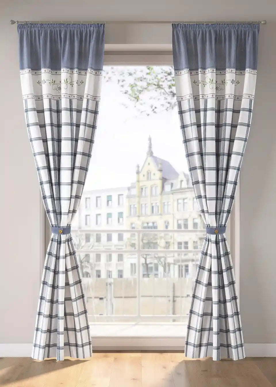 Toller Landhaus-Vorhang mit Karomuster inkl. Raffhalter