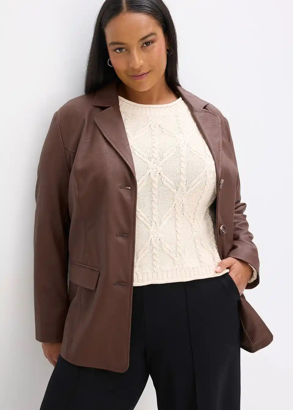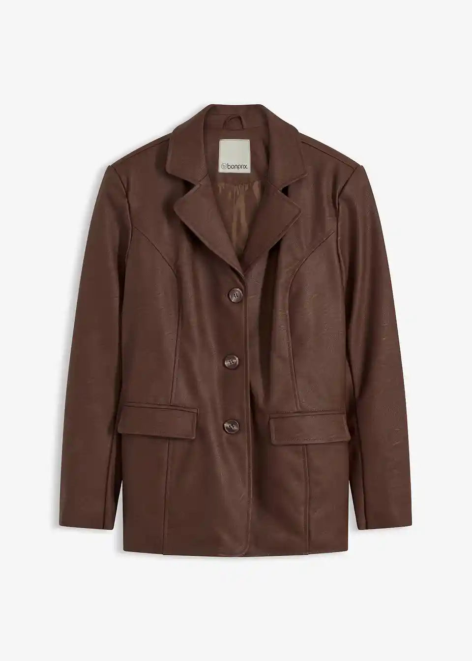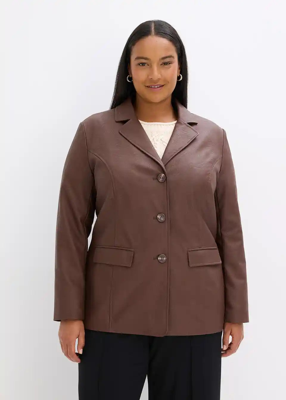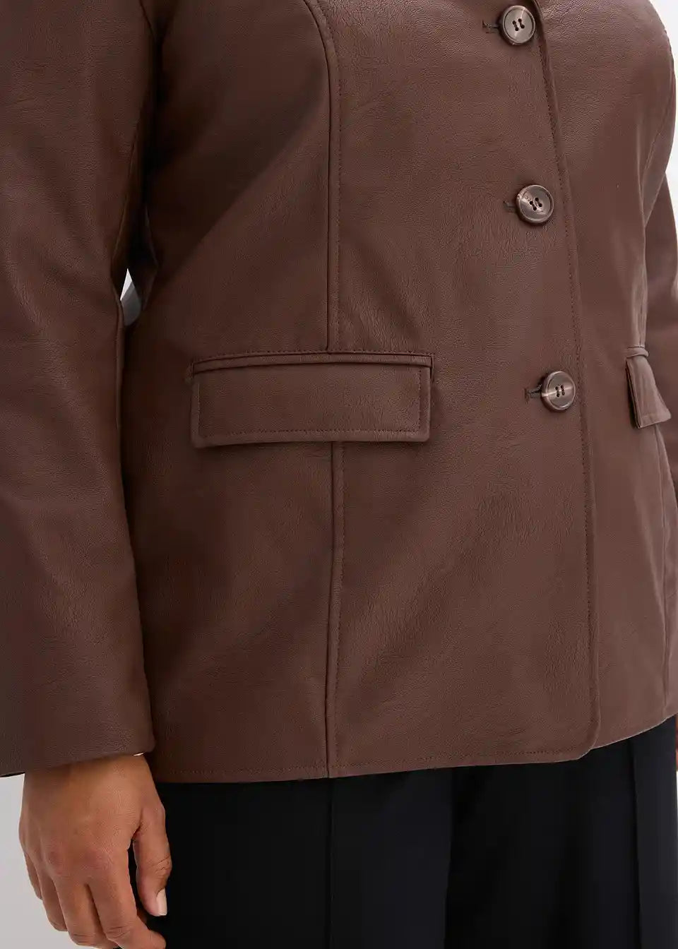 Wunderschöner Lederimitat-Longblazer mit leichter Taillierung
