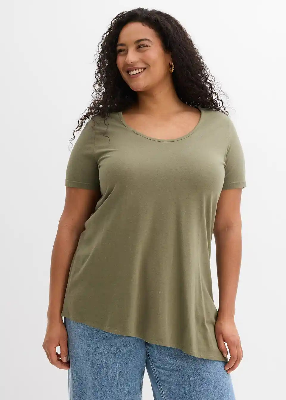 Asymetrisches Longshirt aus Baumwoll-Viskose-Mischung