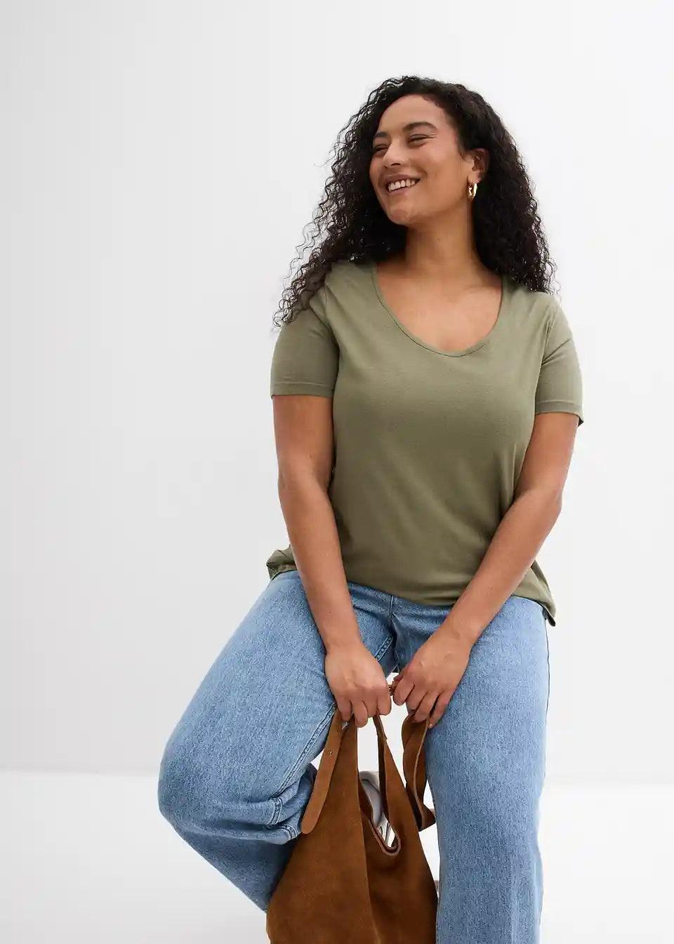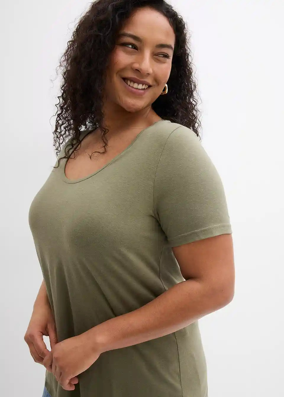Longshirt mit asymetrischem Saum und Seitenschlitz, tiefem Rundhalsausschintt und kurzem Arm