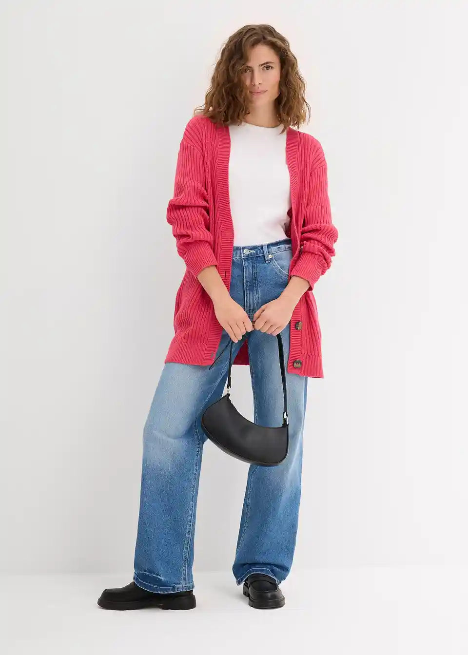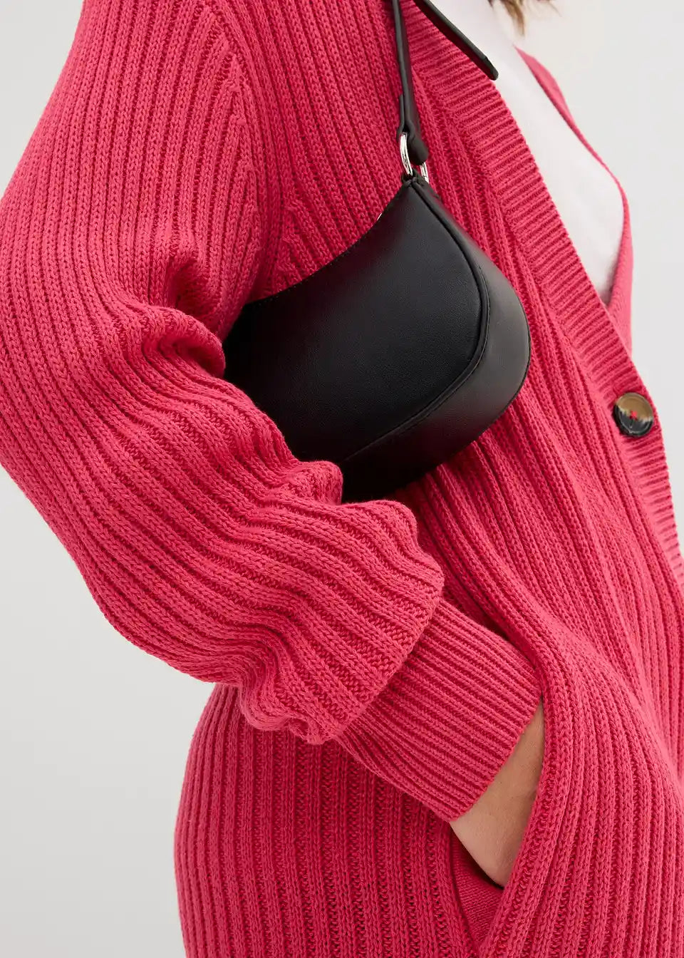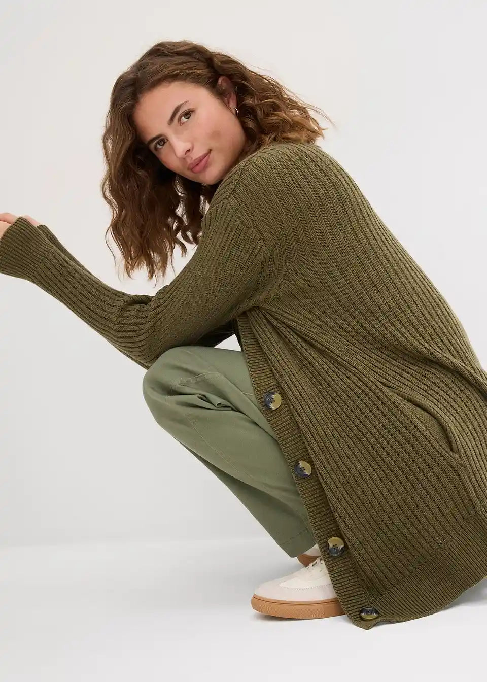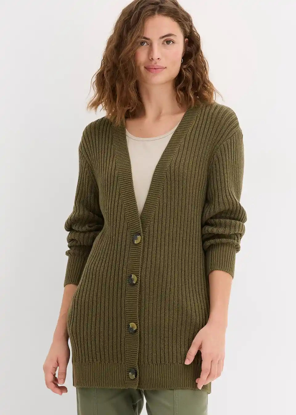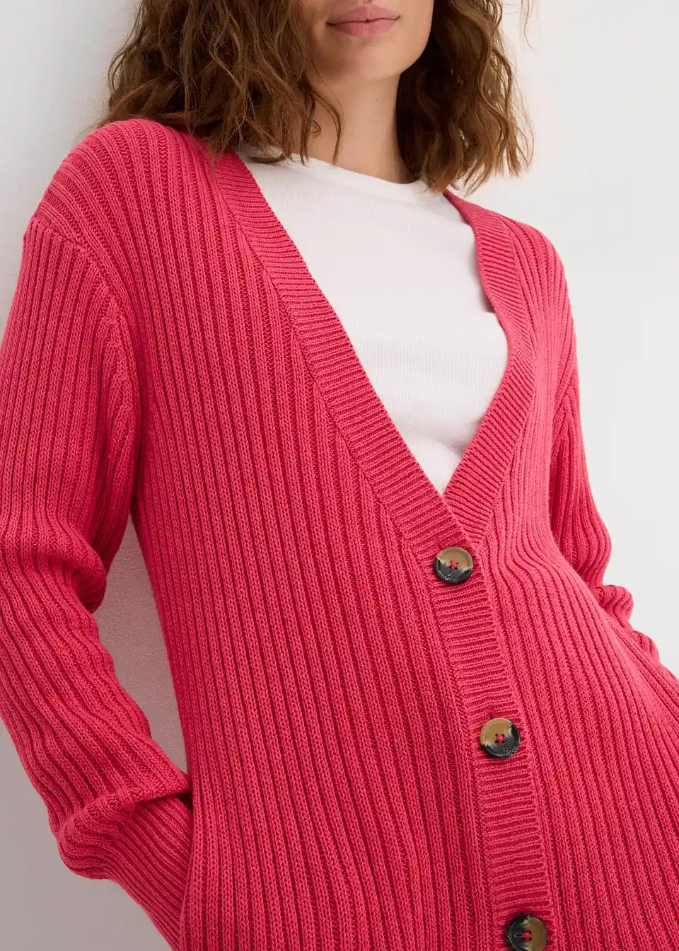 Long-Strickjacke aus Rippstrick