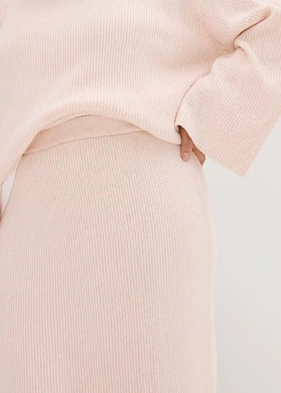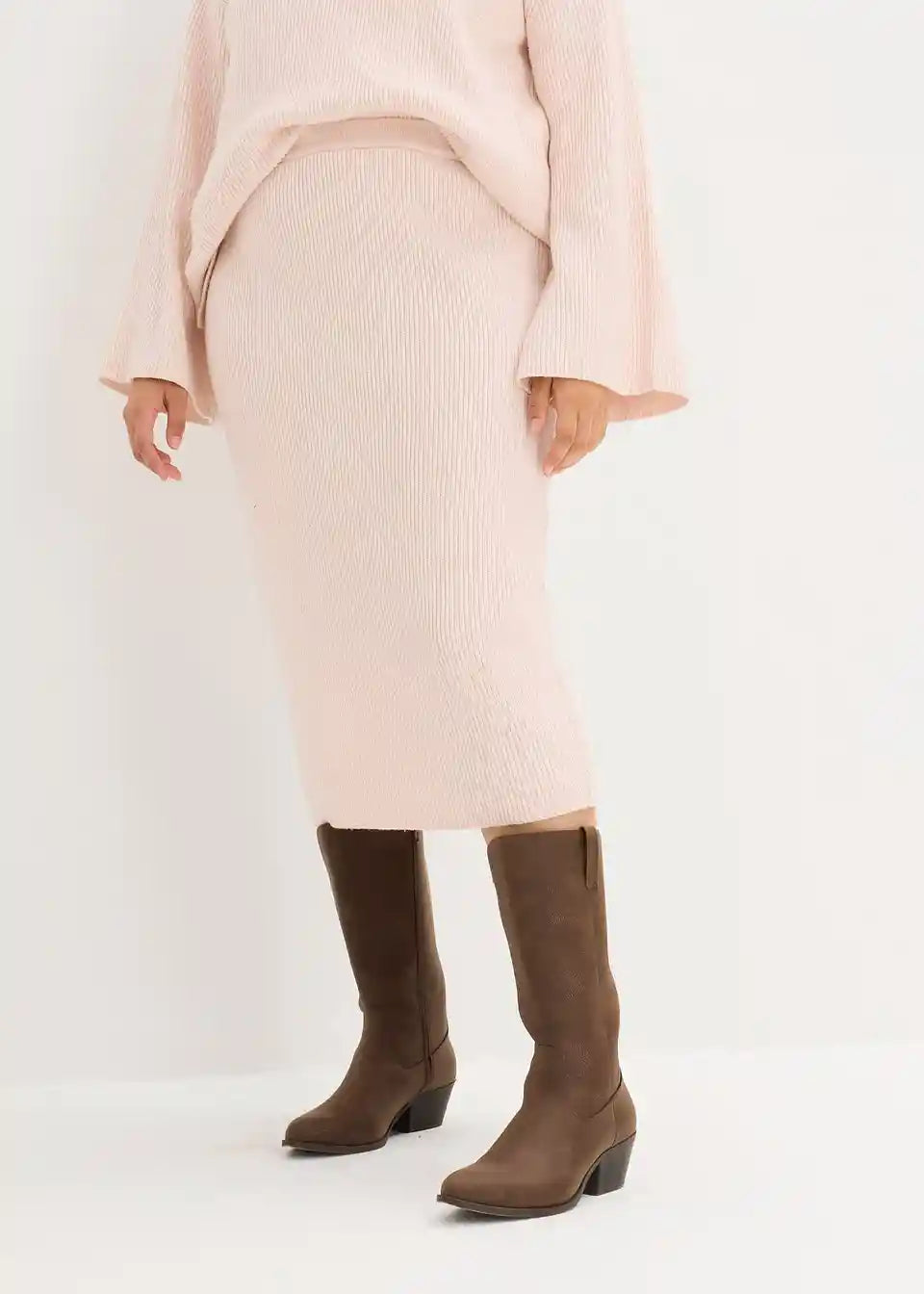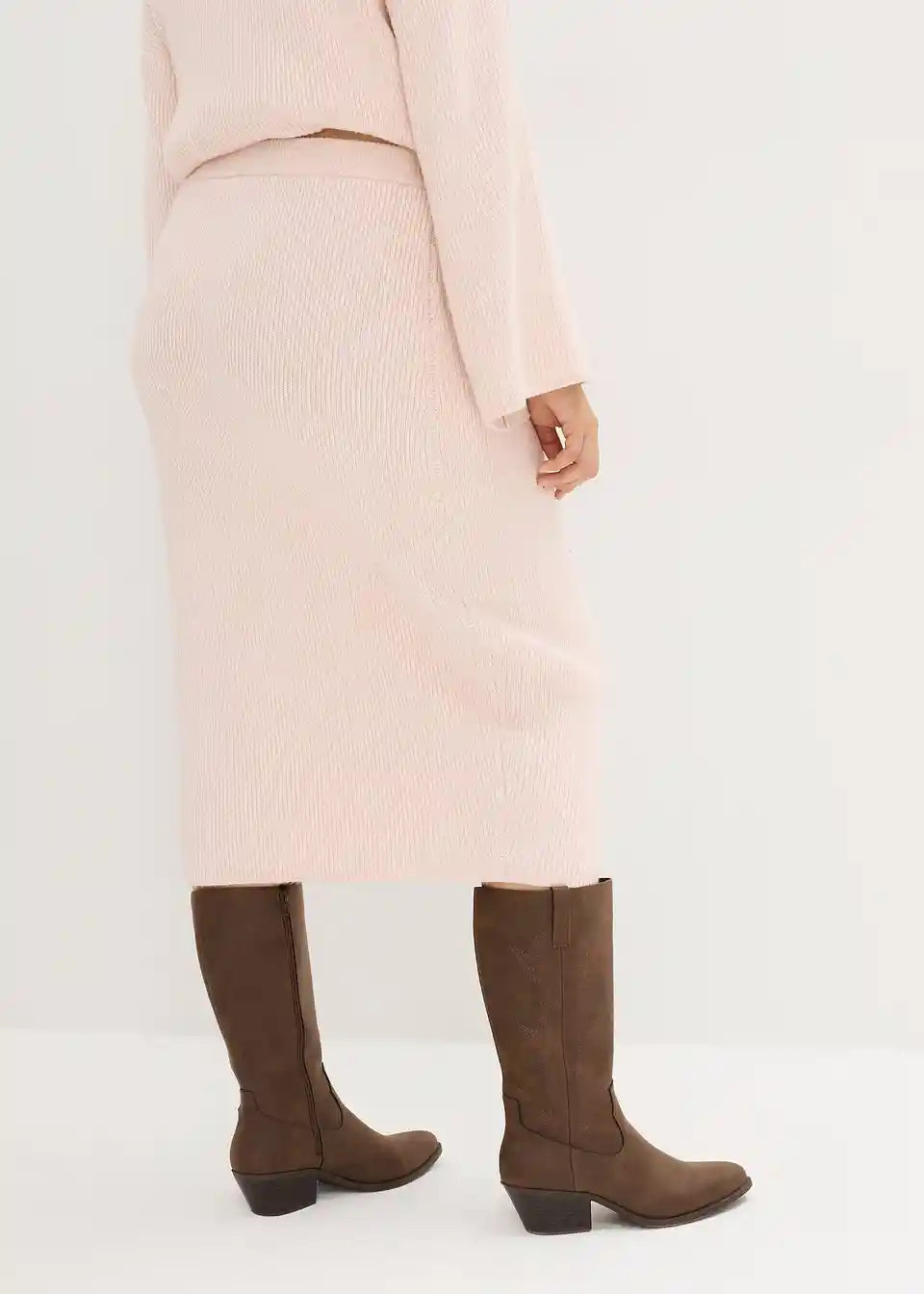 Shöner Rock aus Rippstrick bedeckt die Knie