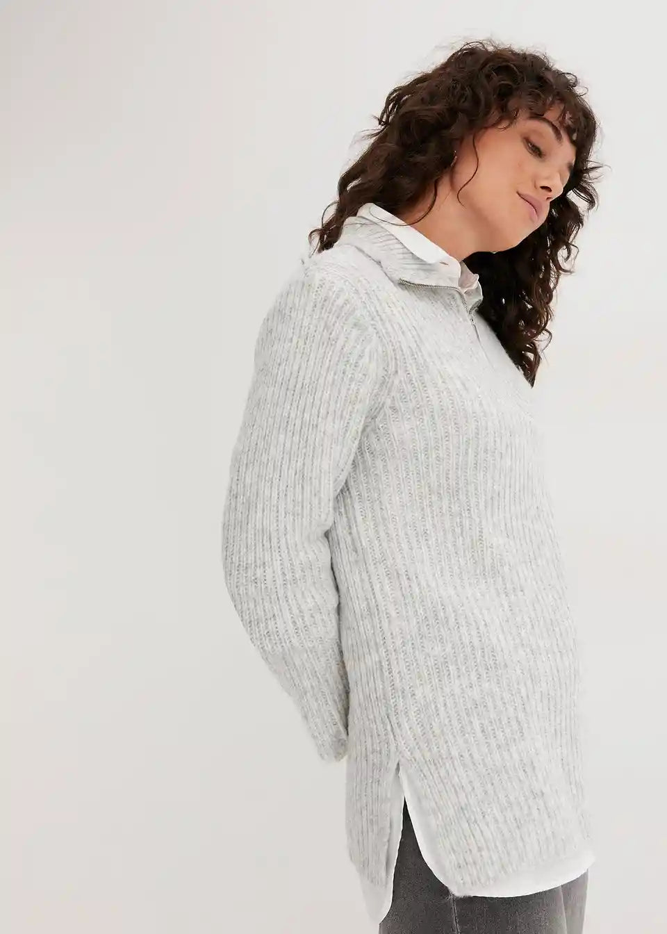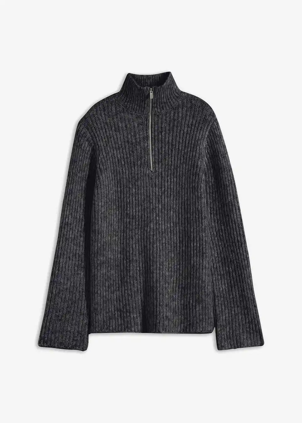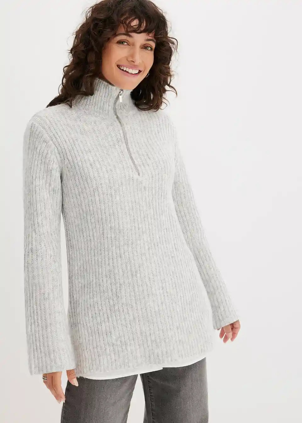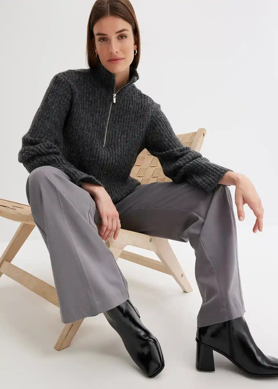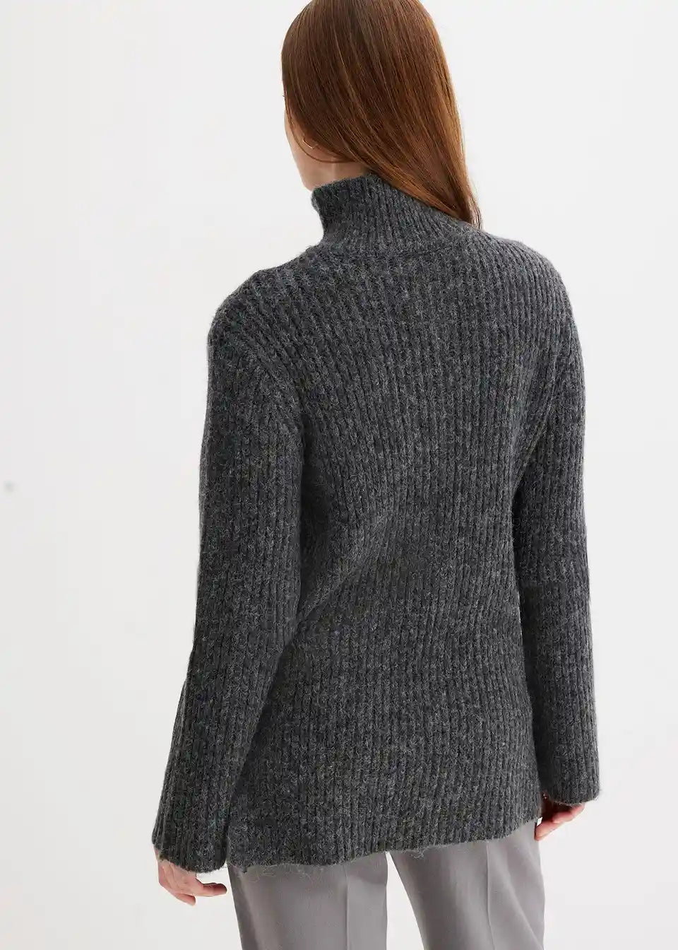 Pullover mit Troyer Kragen aus weich tragbarem Rippstrick