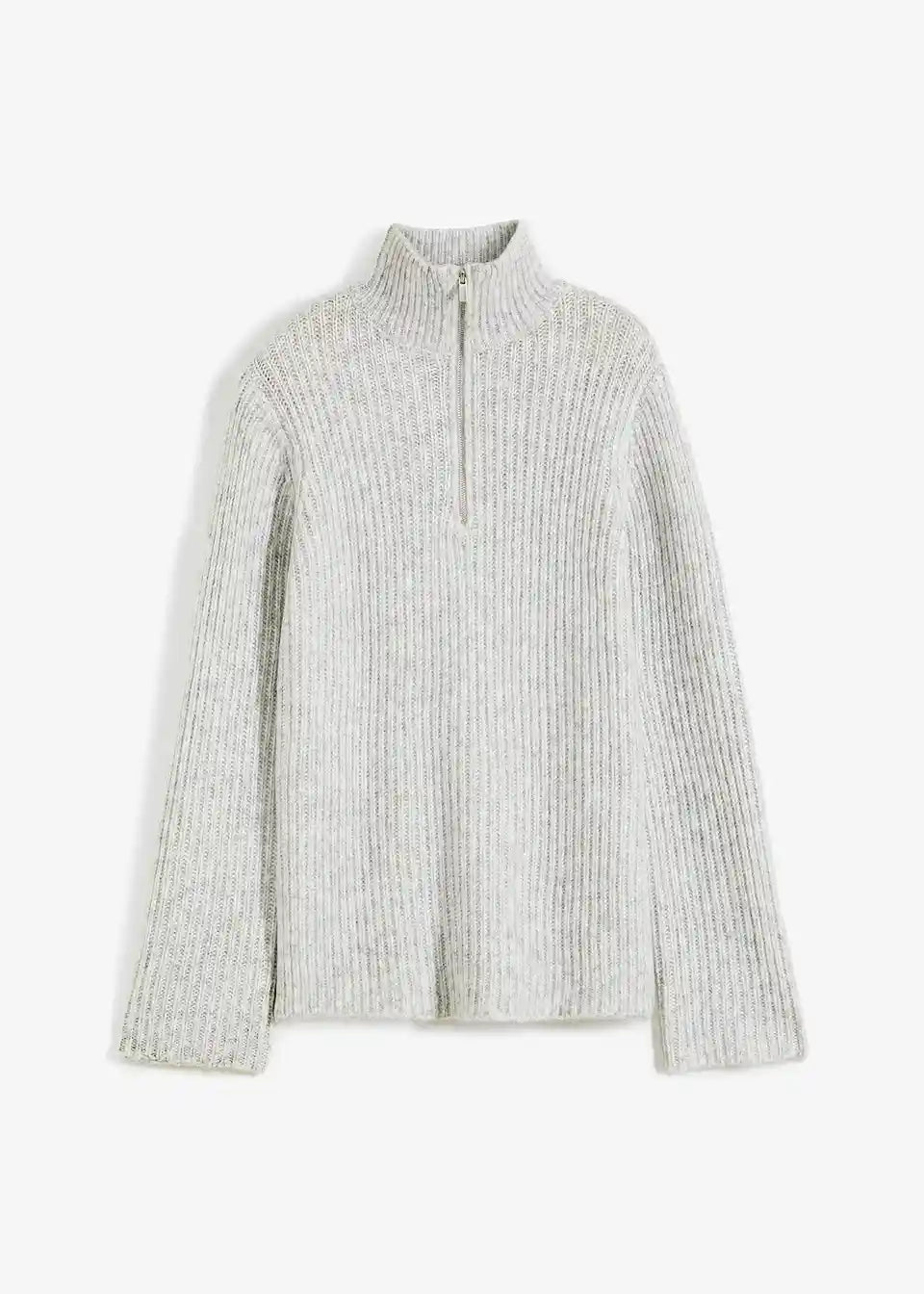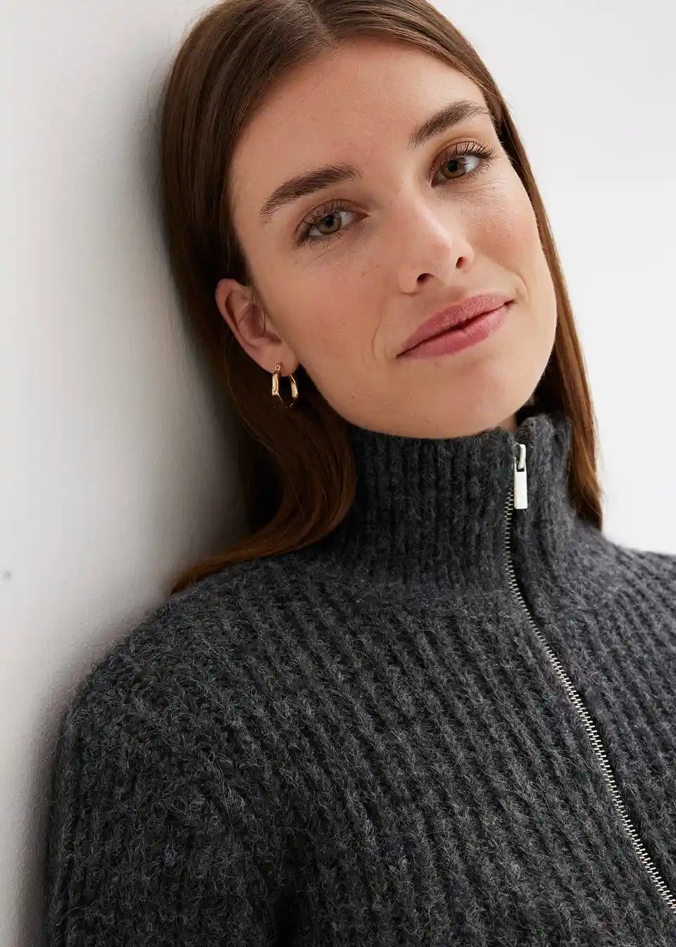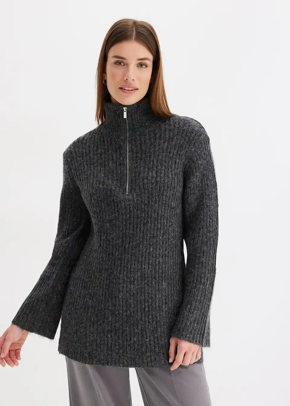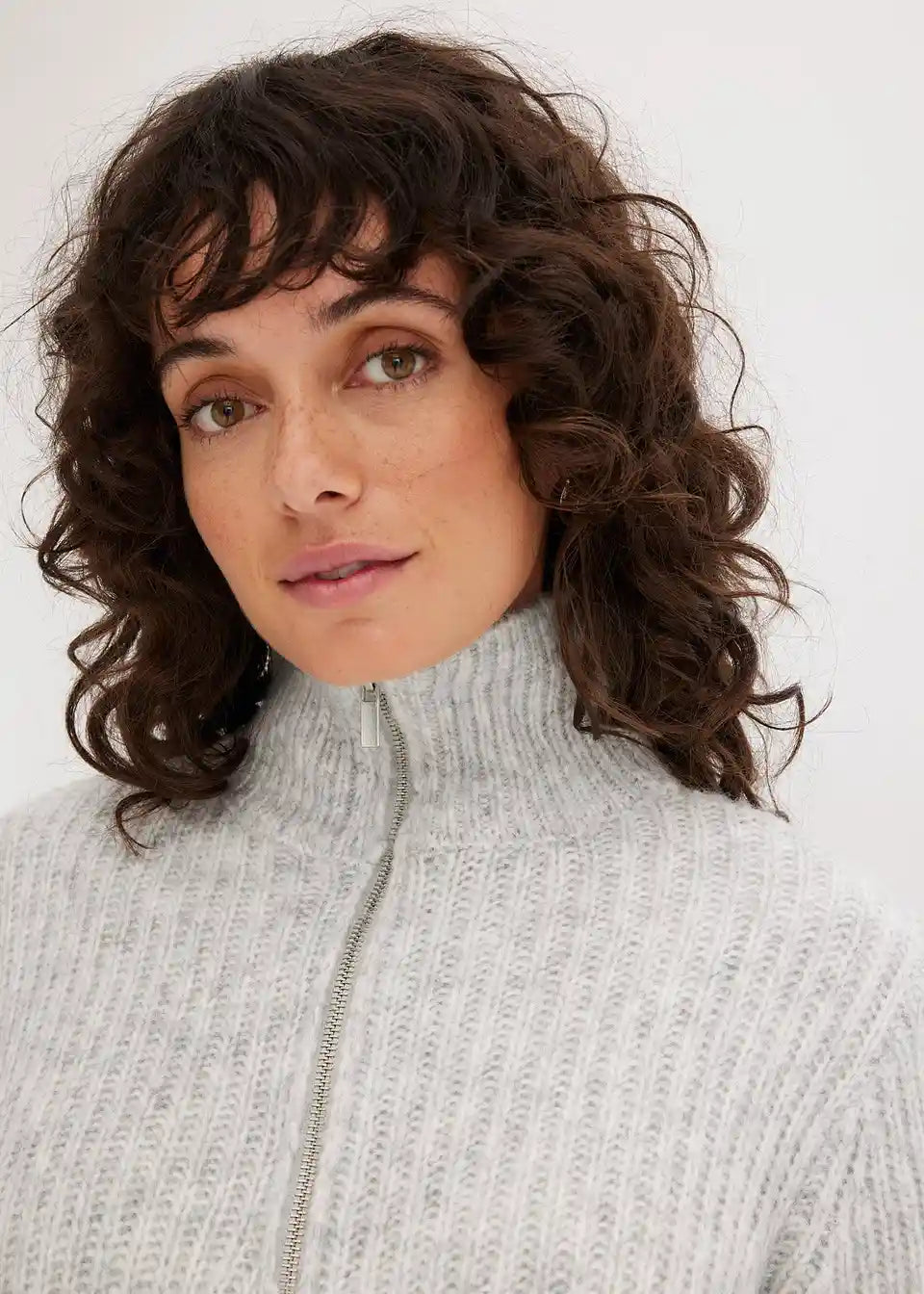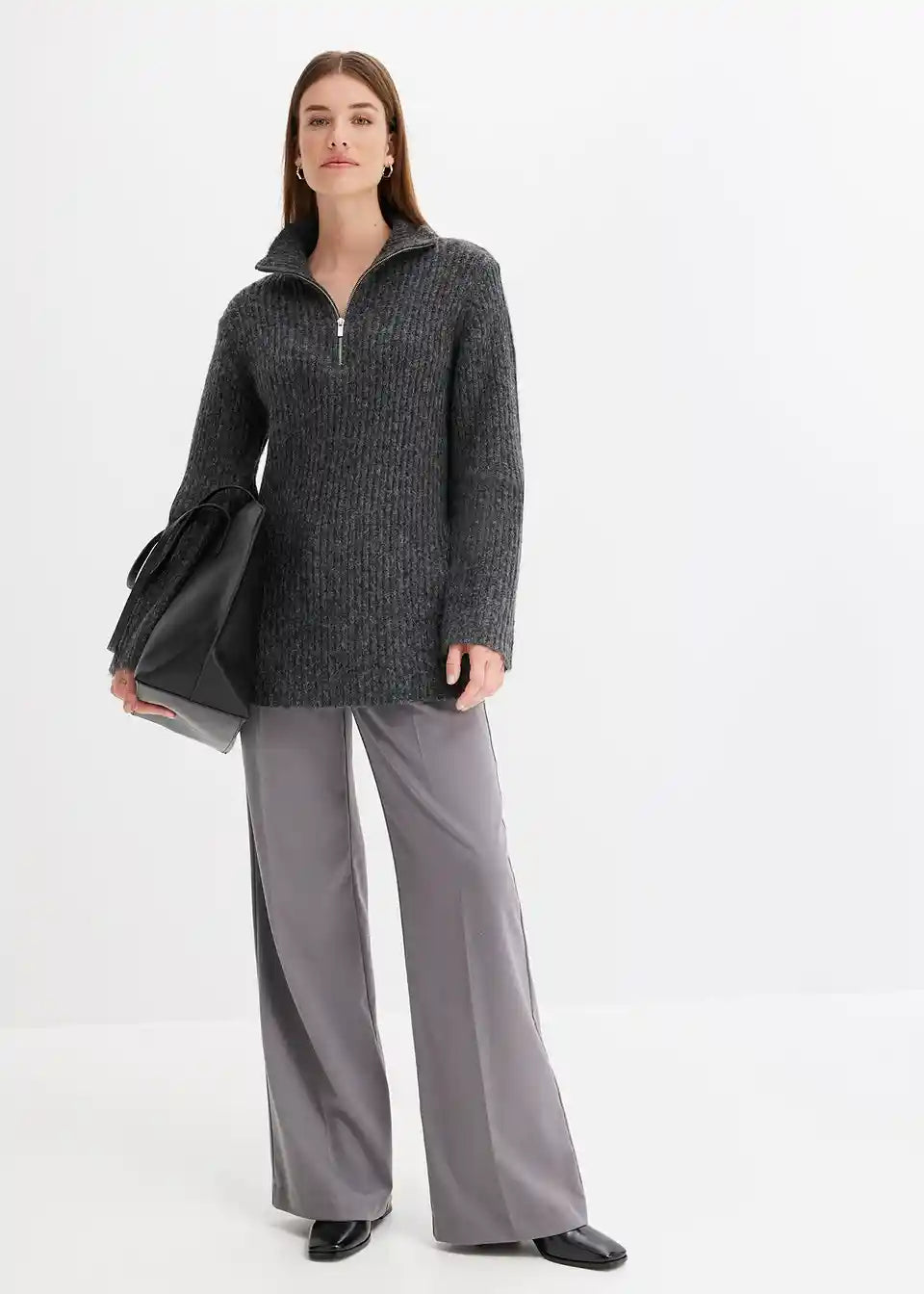 Pullover mit Troyer Kragen aus weich tragbarem Rippstrick