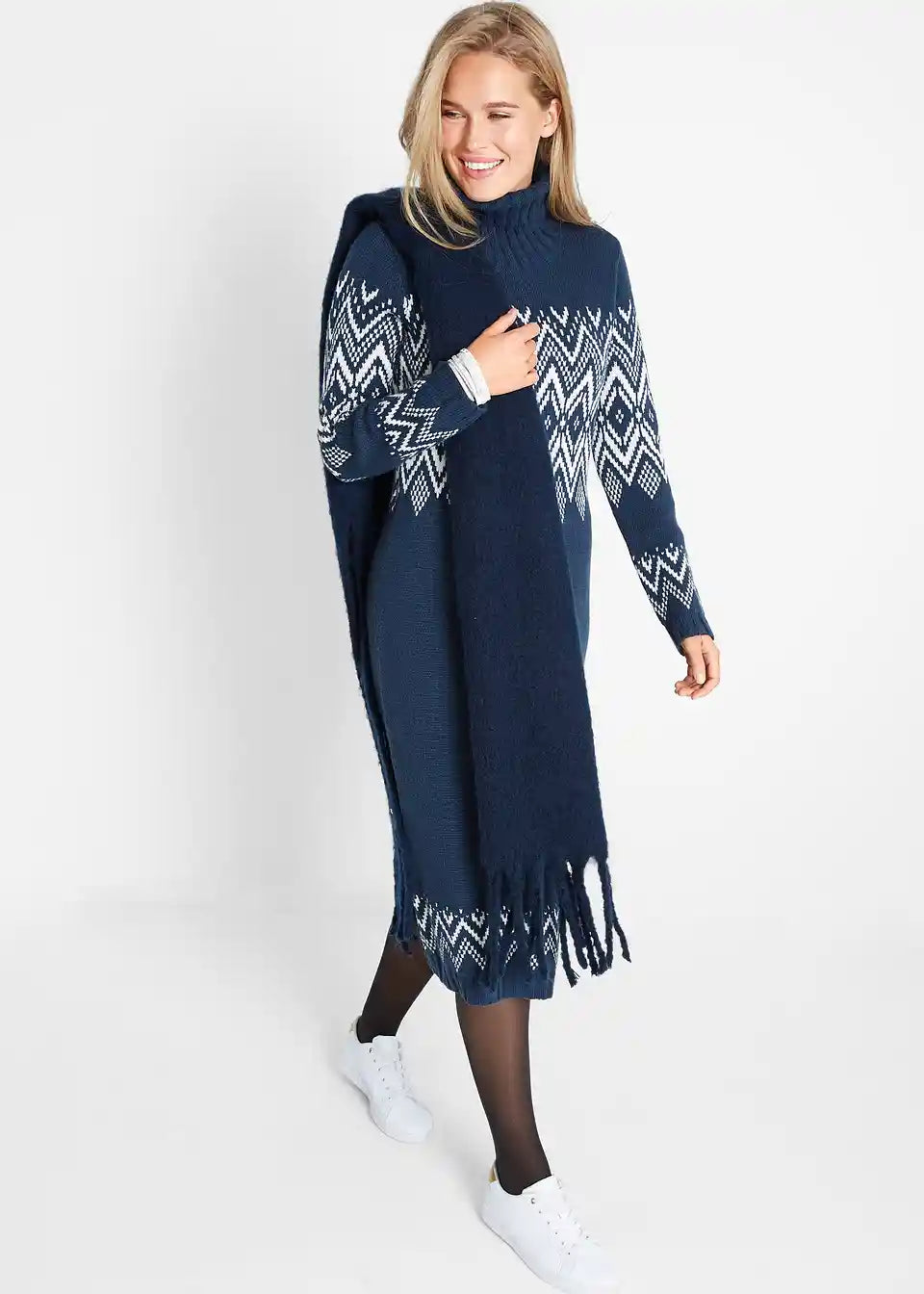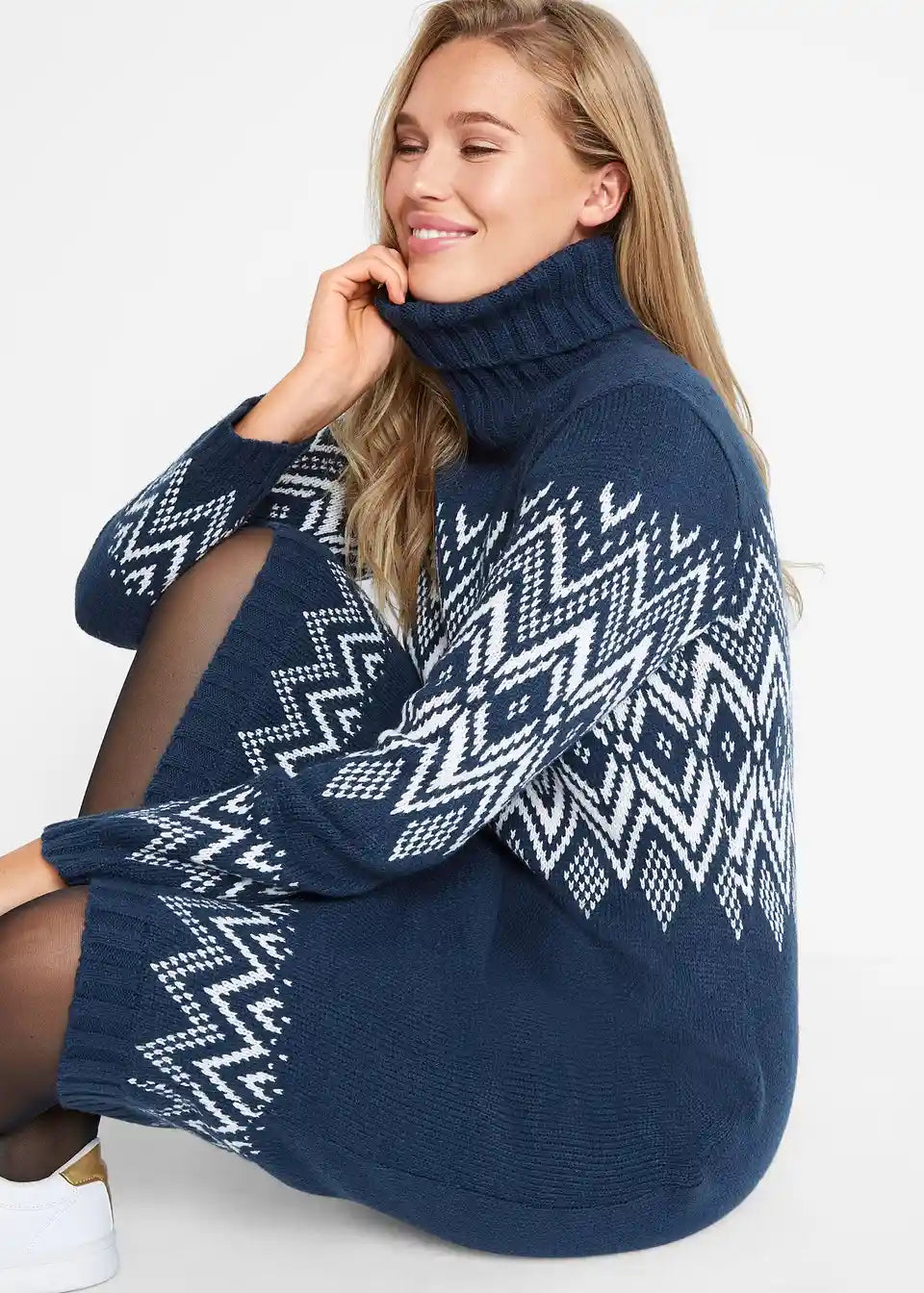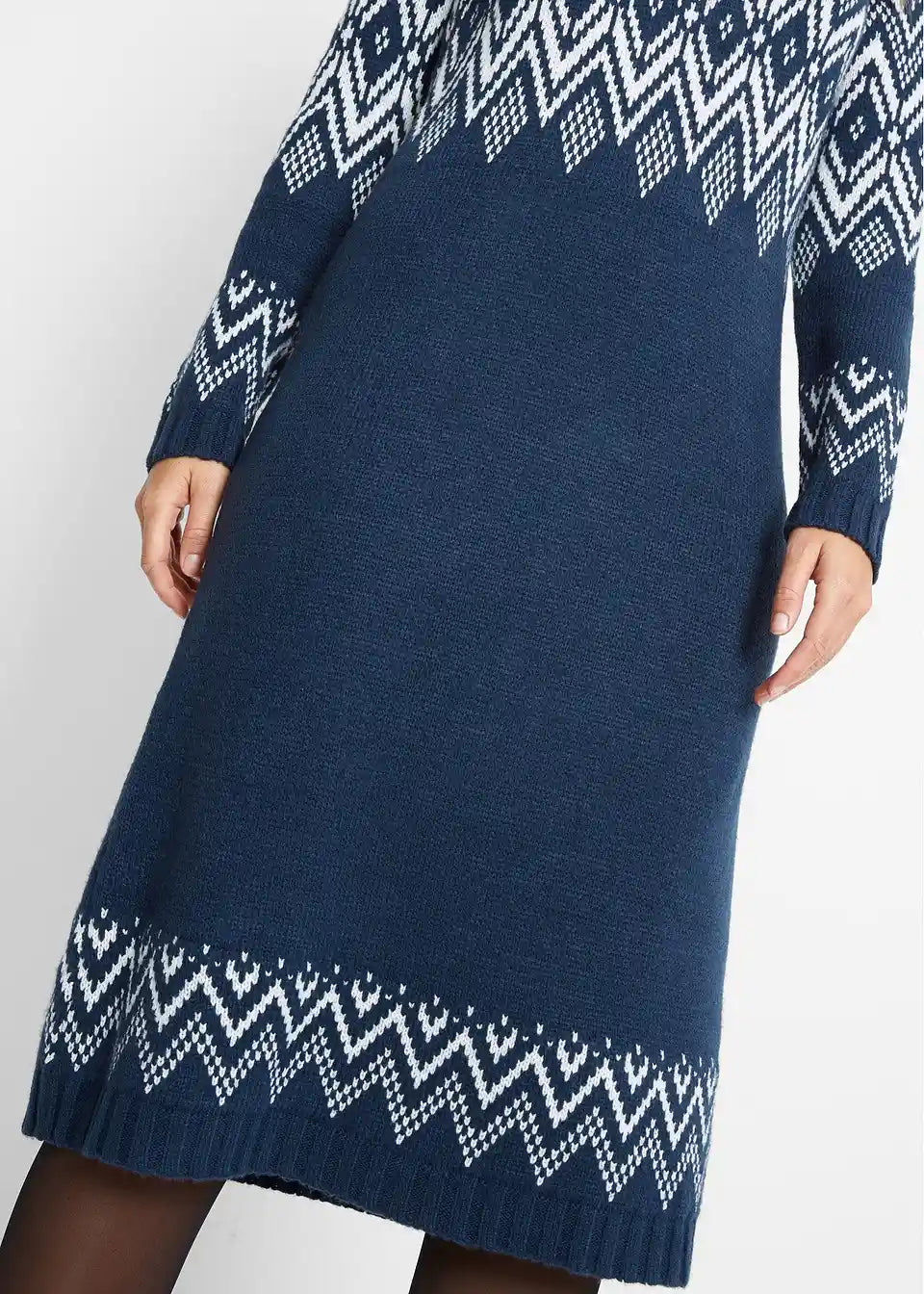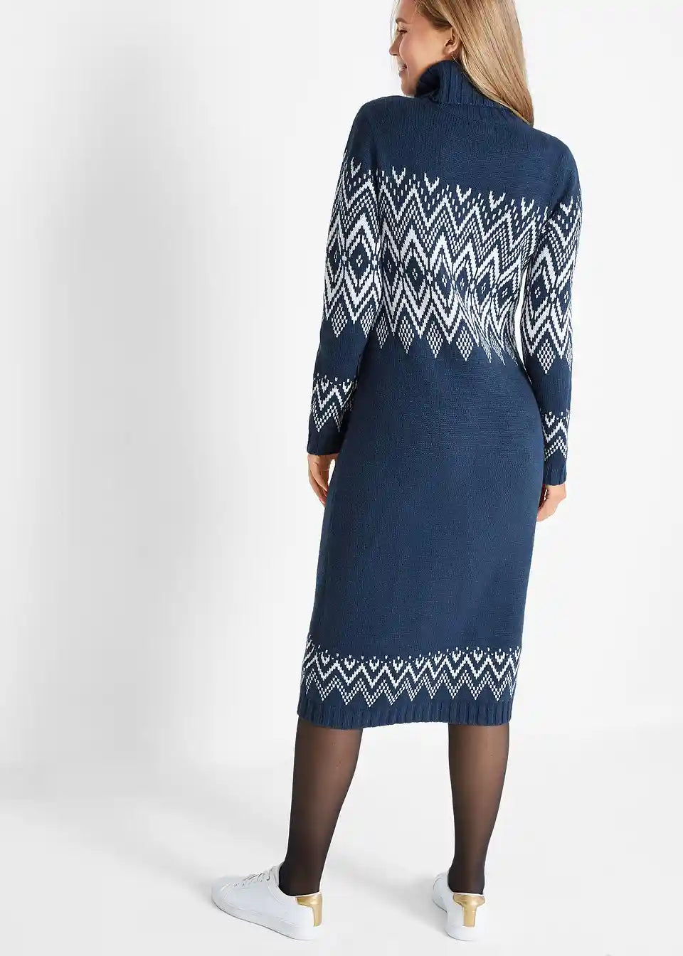 Tailliertes Noweger-Maxikleid mit weitem Rollkragen