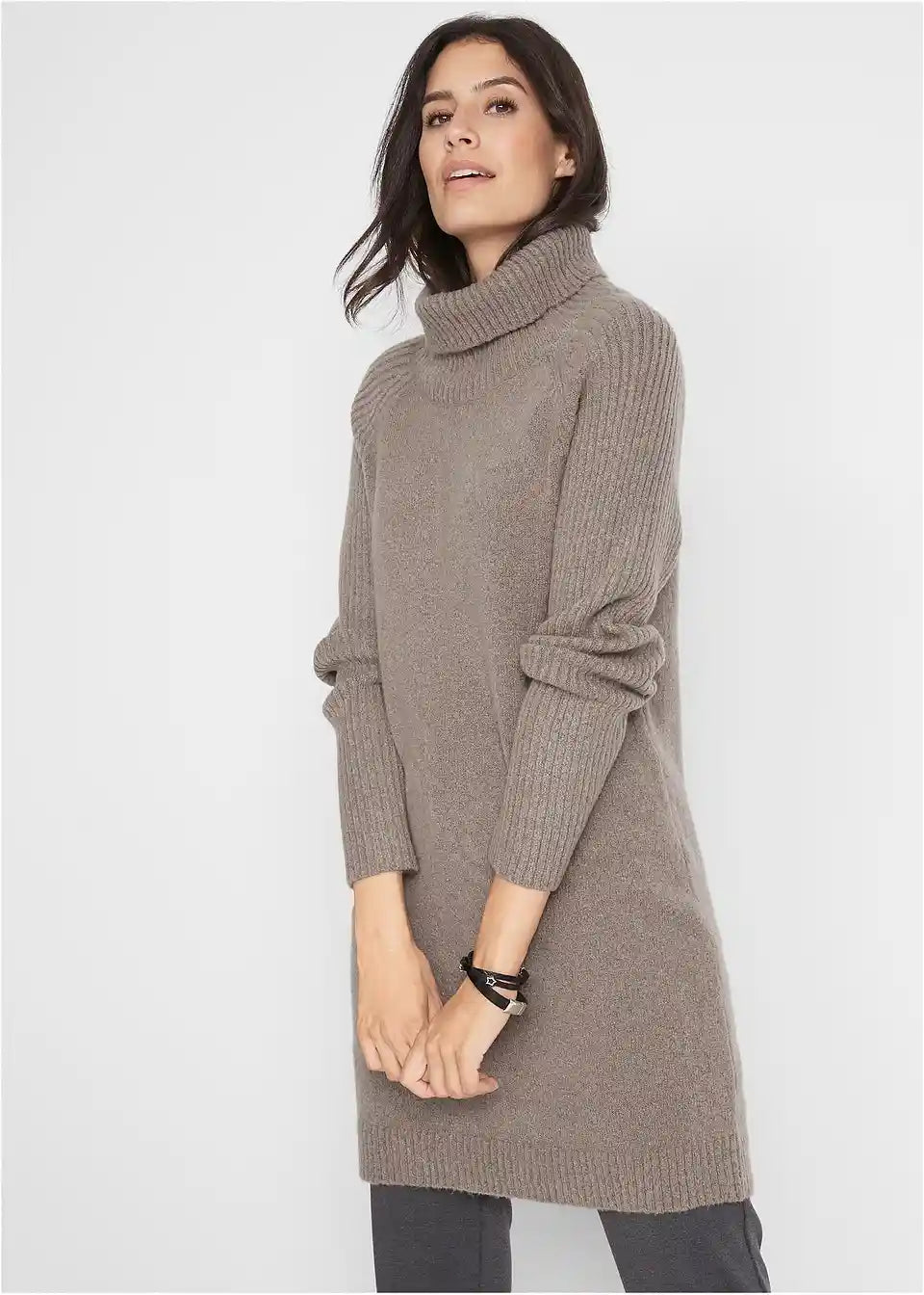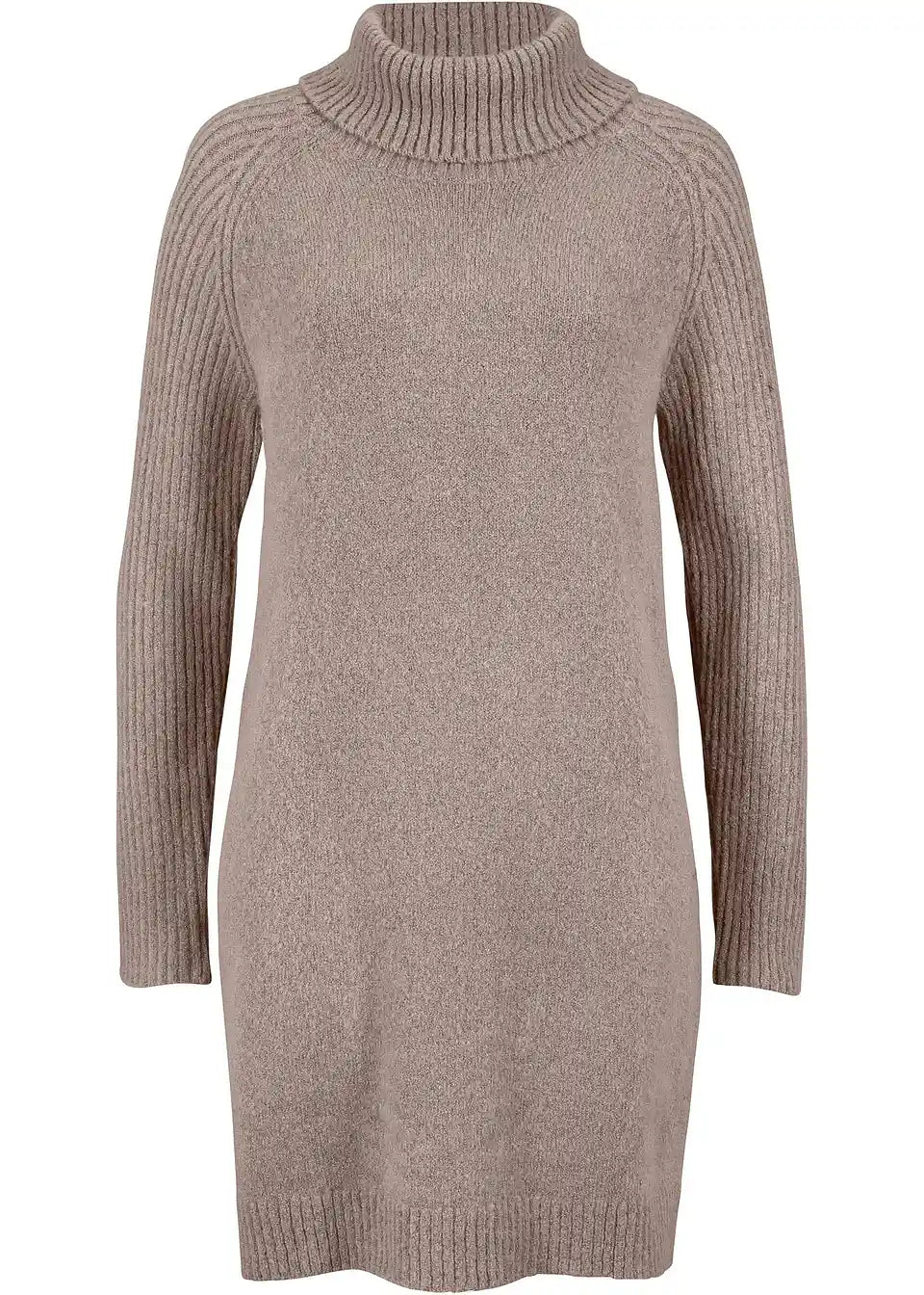 Langer Rollkragen-Pullover mit Rippen-Ärmeln