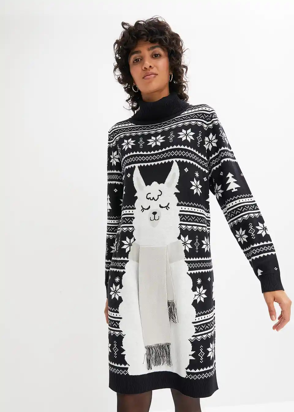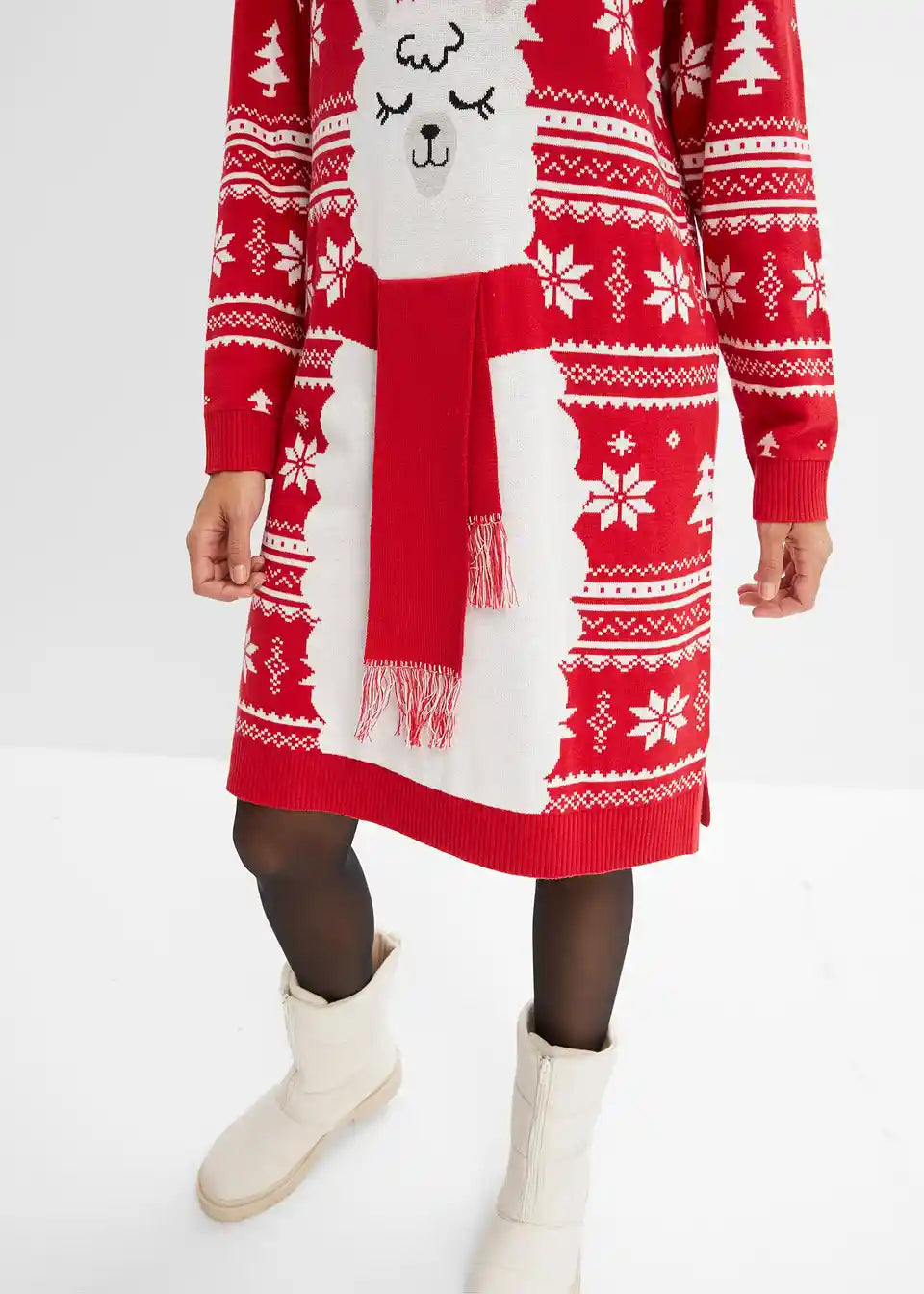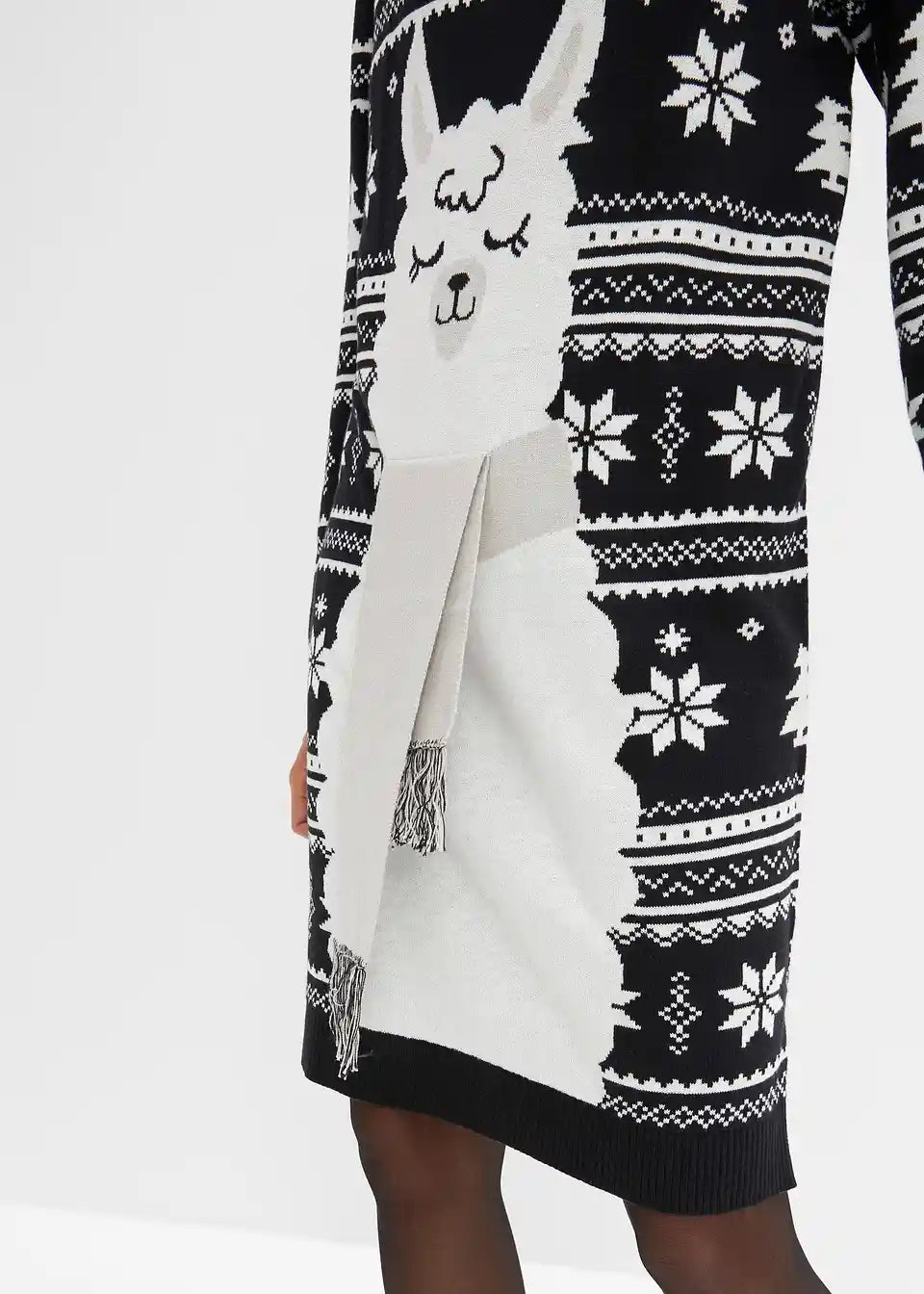 Bequem geschnittenes Strickkleid mit weihnachtlichem Tiermotiv