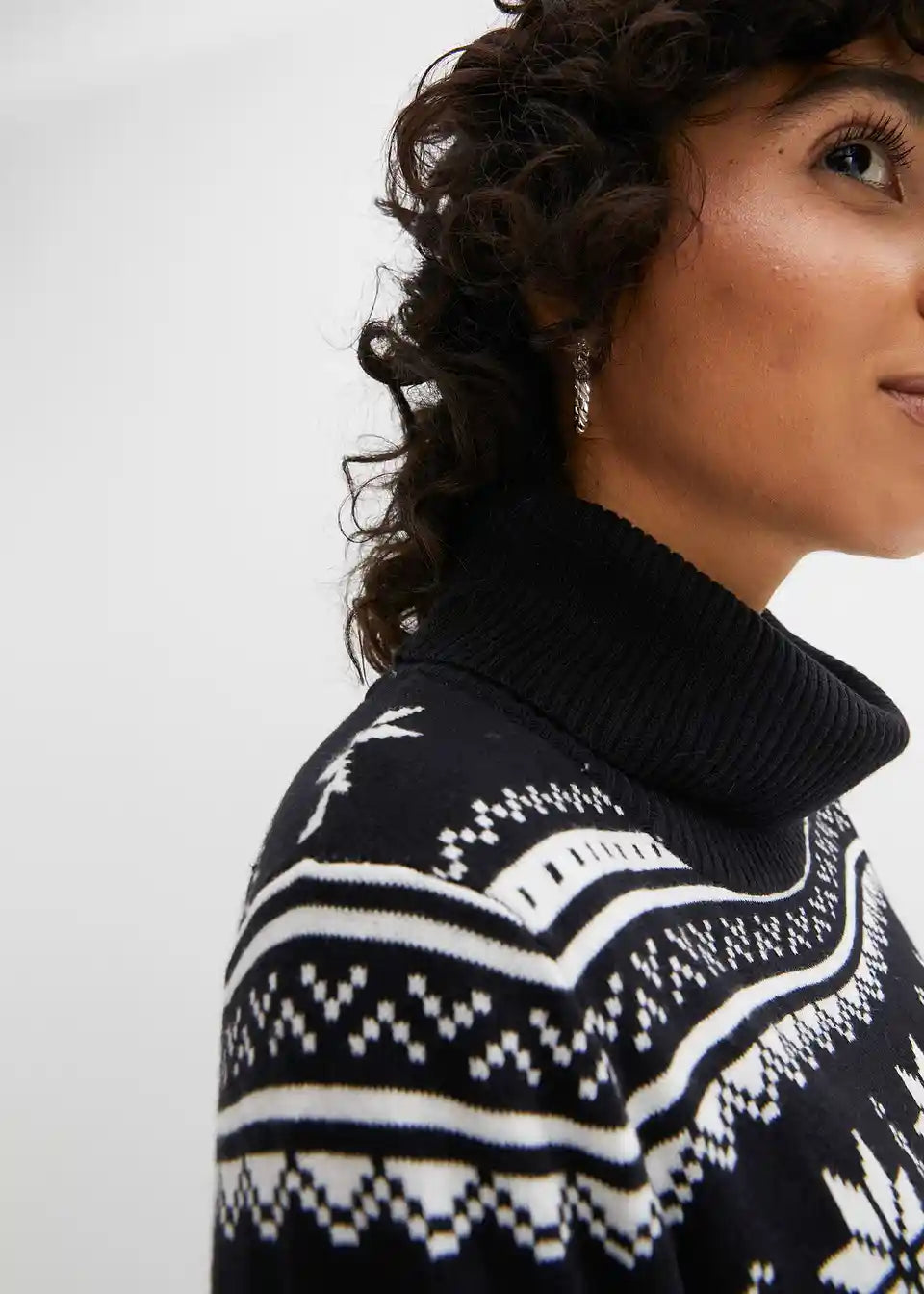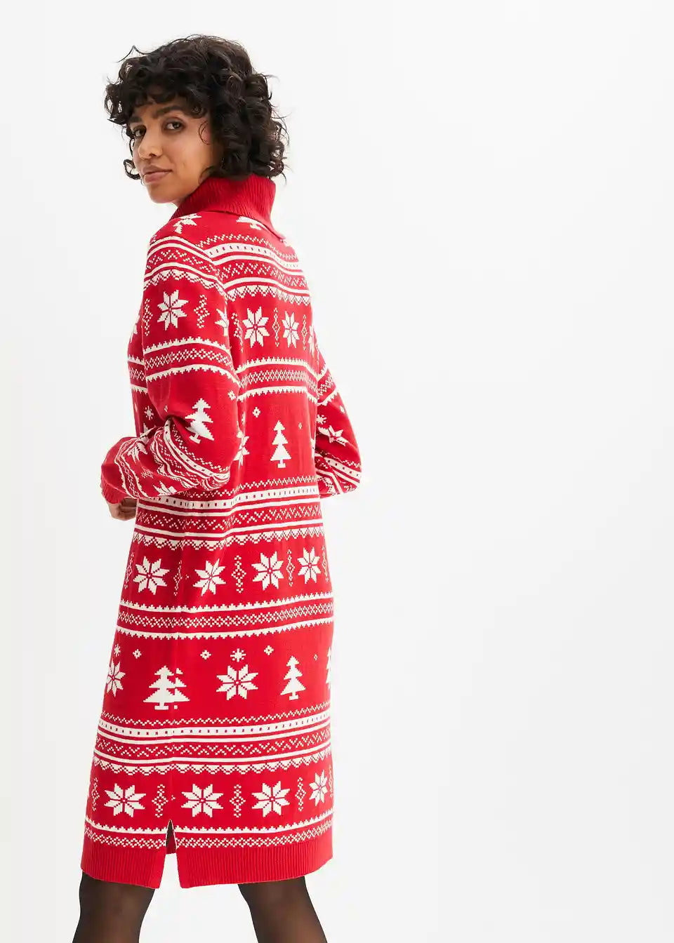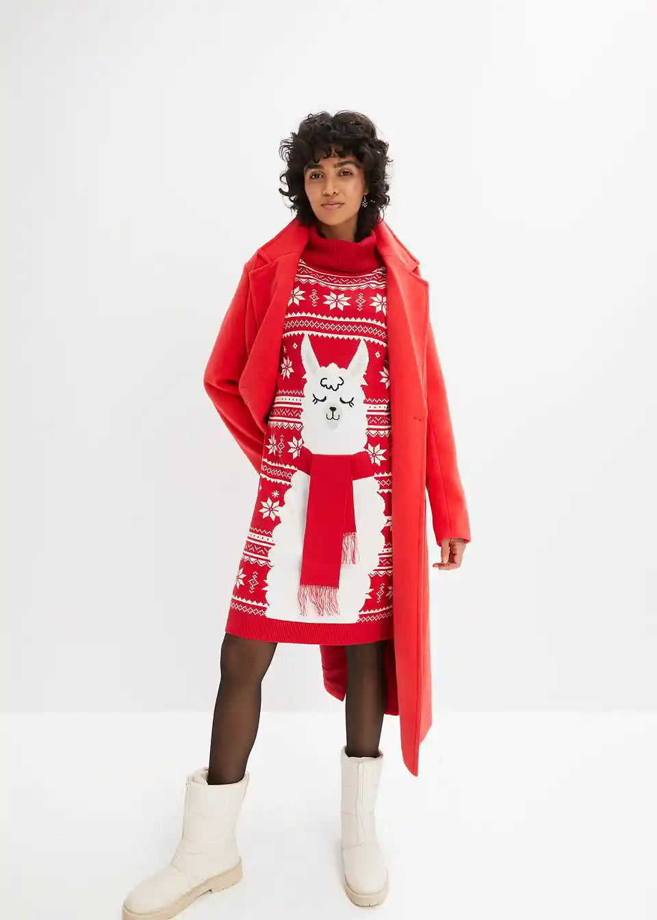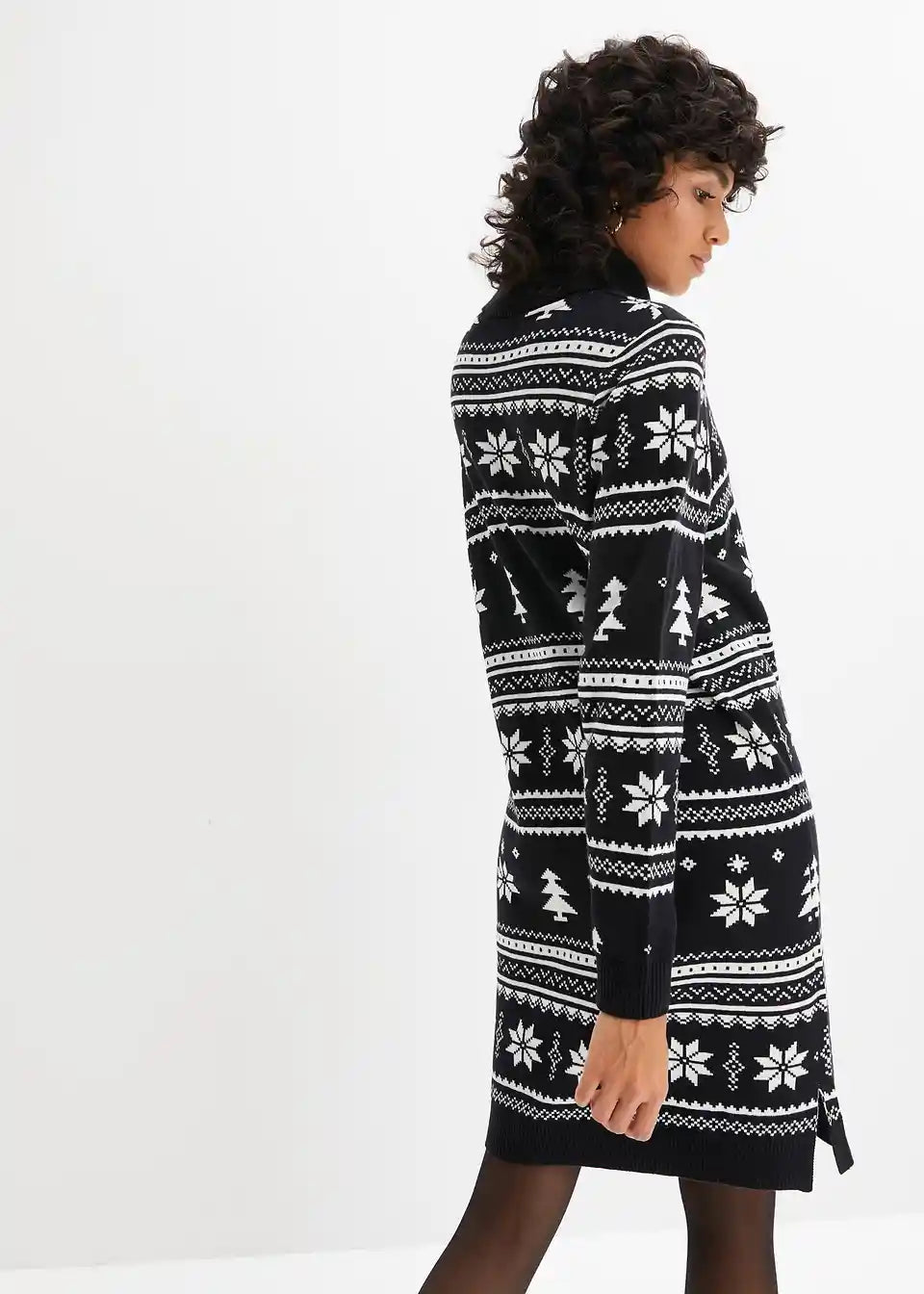 Bequem geschnittenes Strickkleid mit weihnachtlichem Tiermotiv