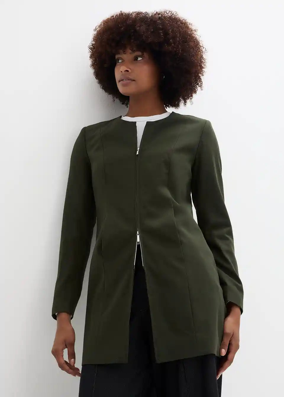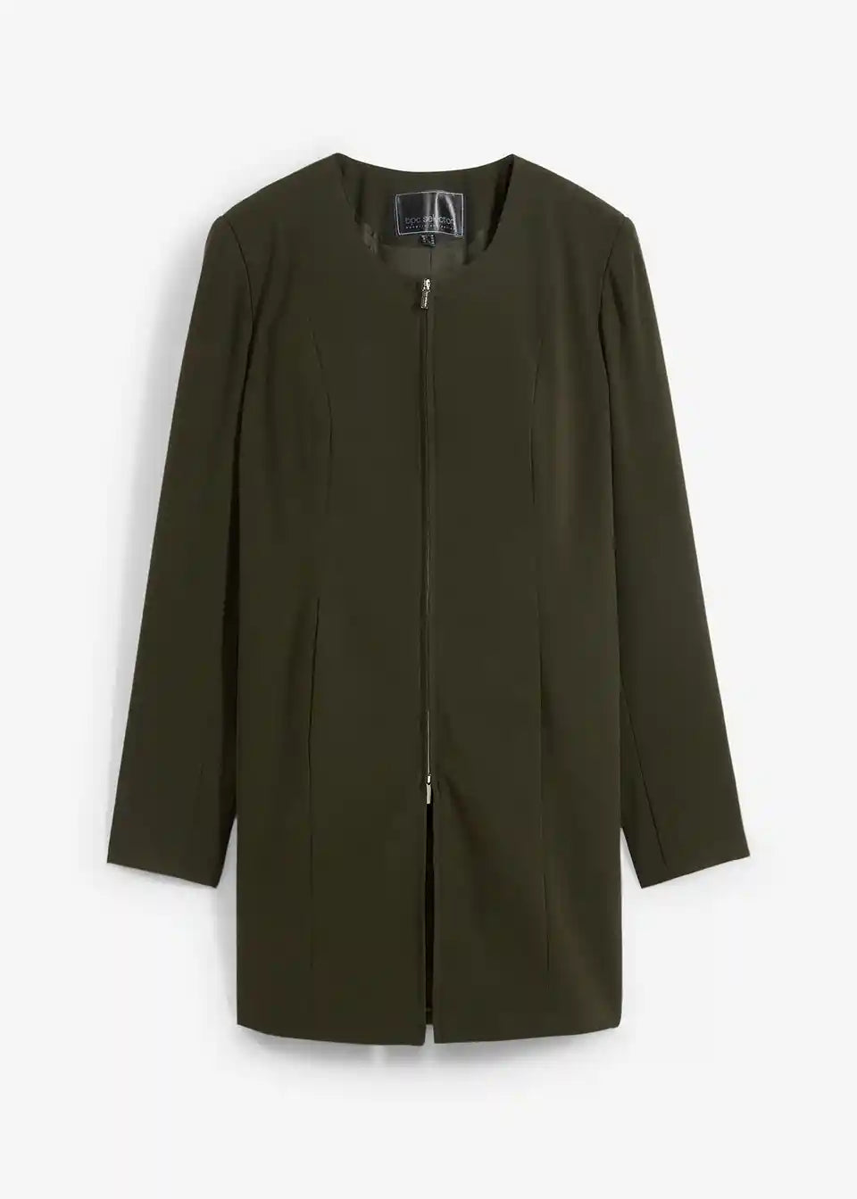 Klassischer Kragenloser Longblazer mit Reißverschluss