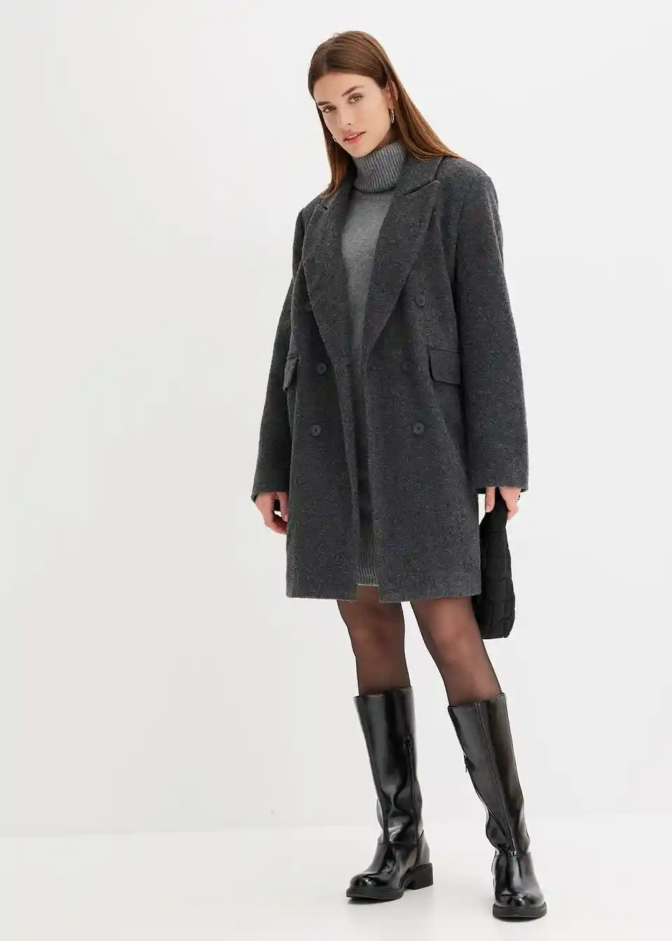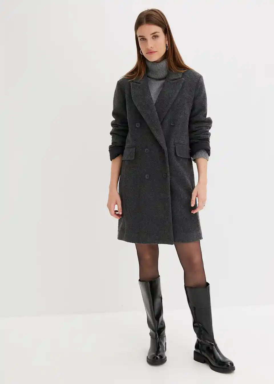 lässiger Doppelreihiger Kurzmantel in Wolloptik