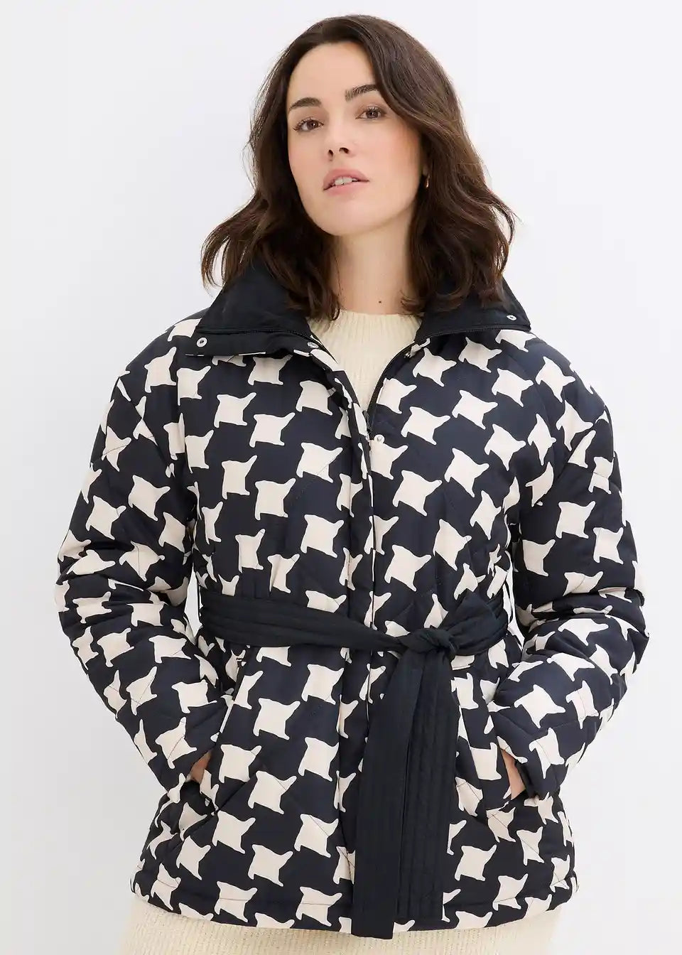 Oversized Jacke mit Gürtel und auffallendem Muster
