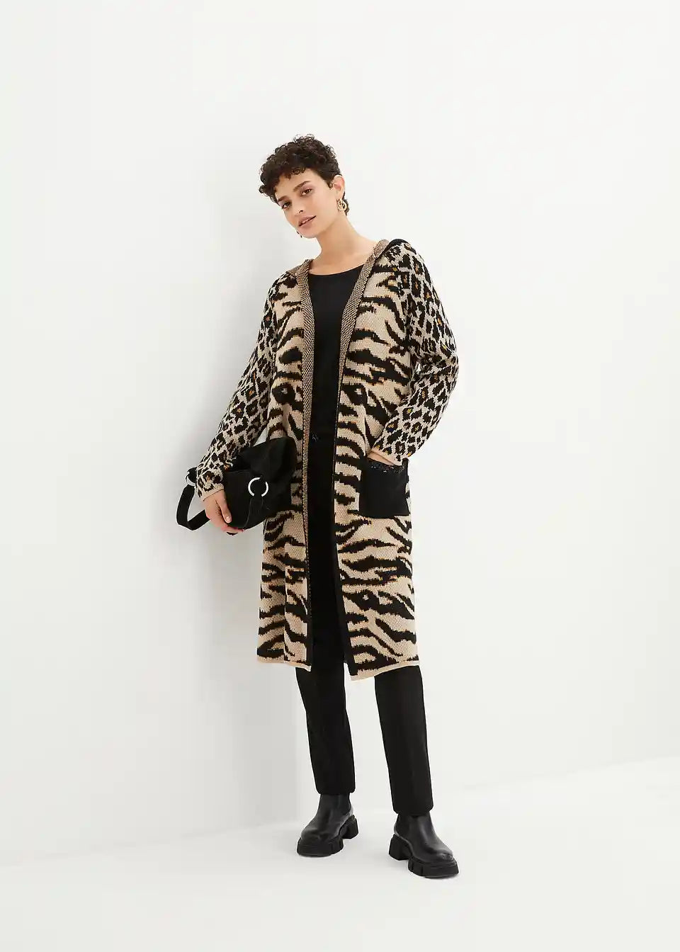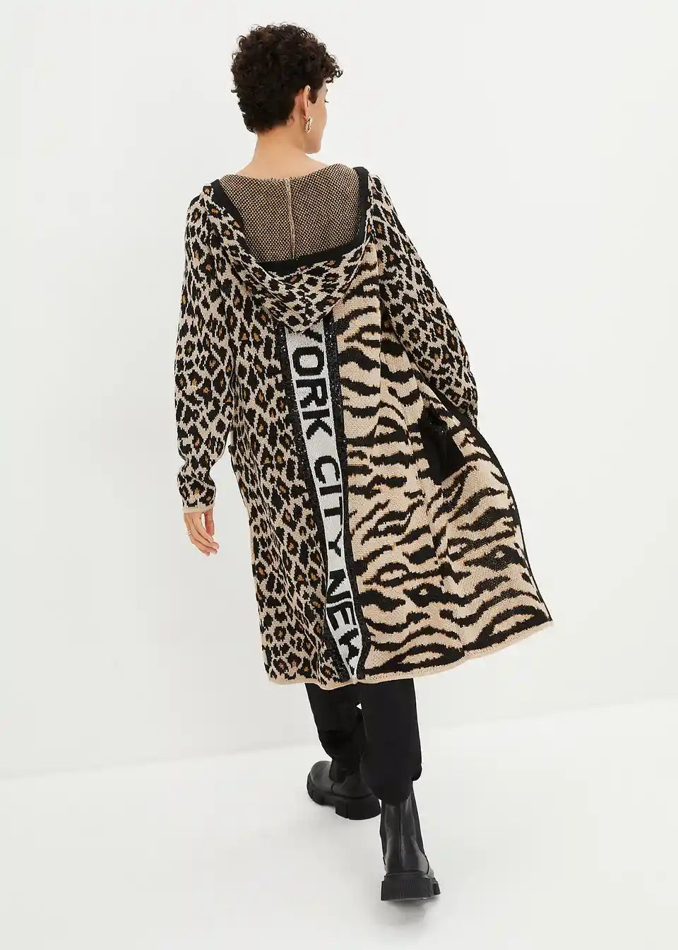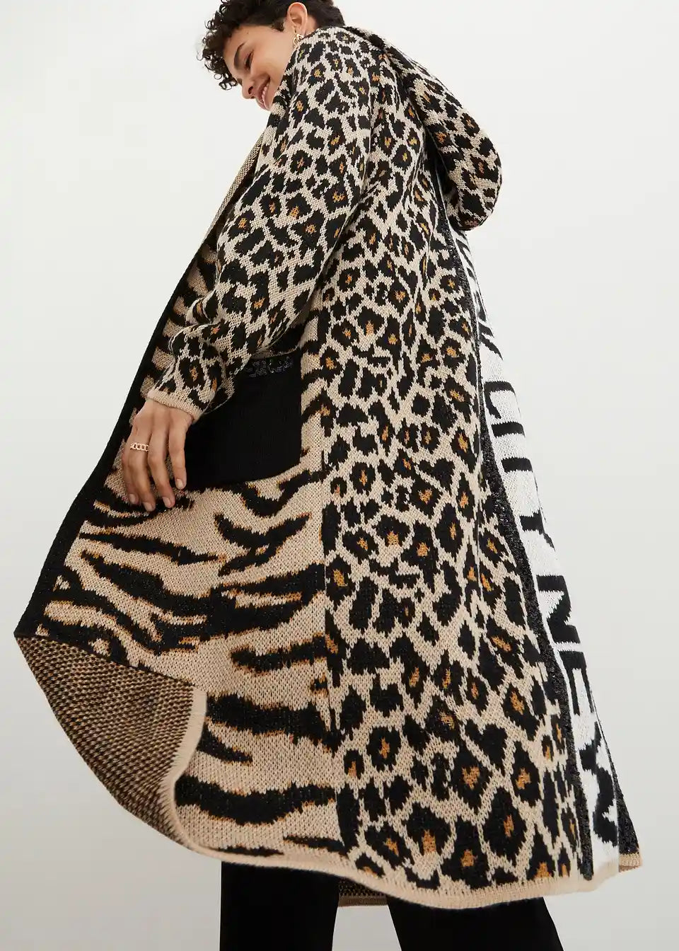 Moderner Strickmantel mit Pailletten und Kapuze