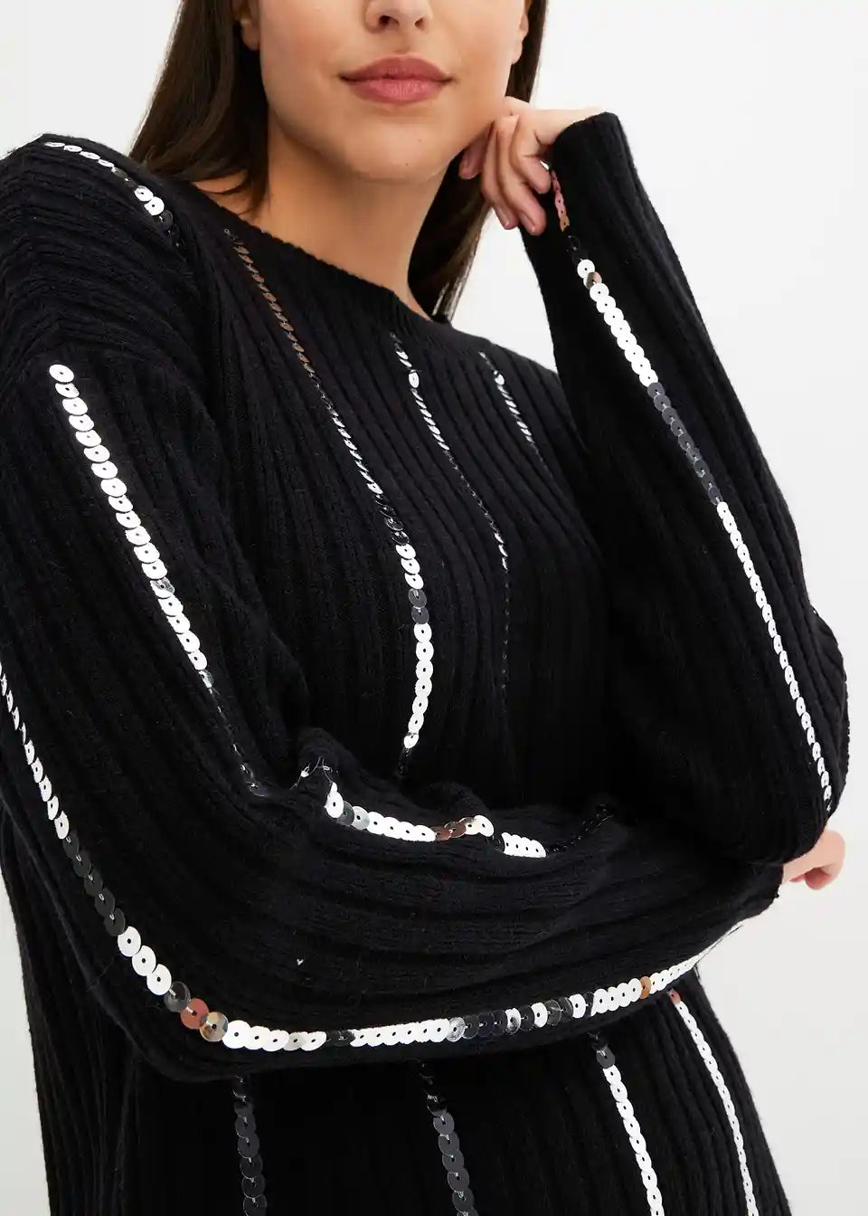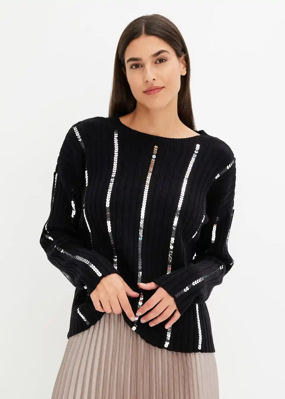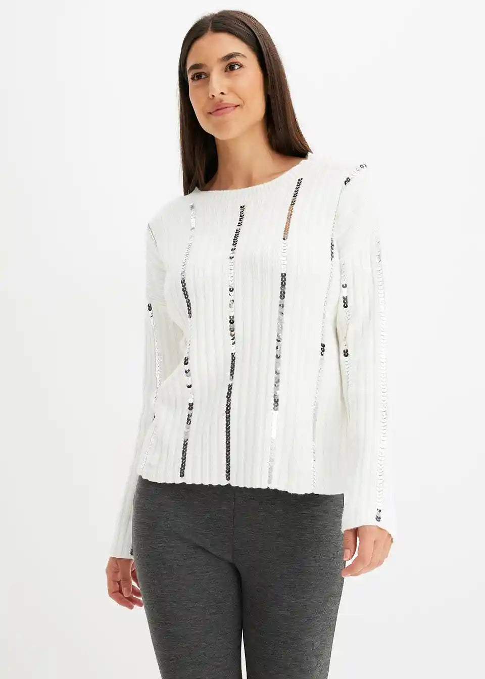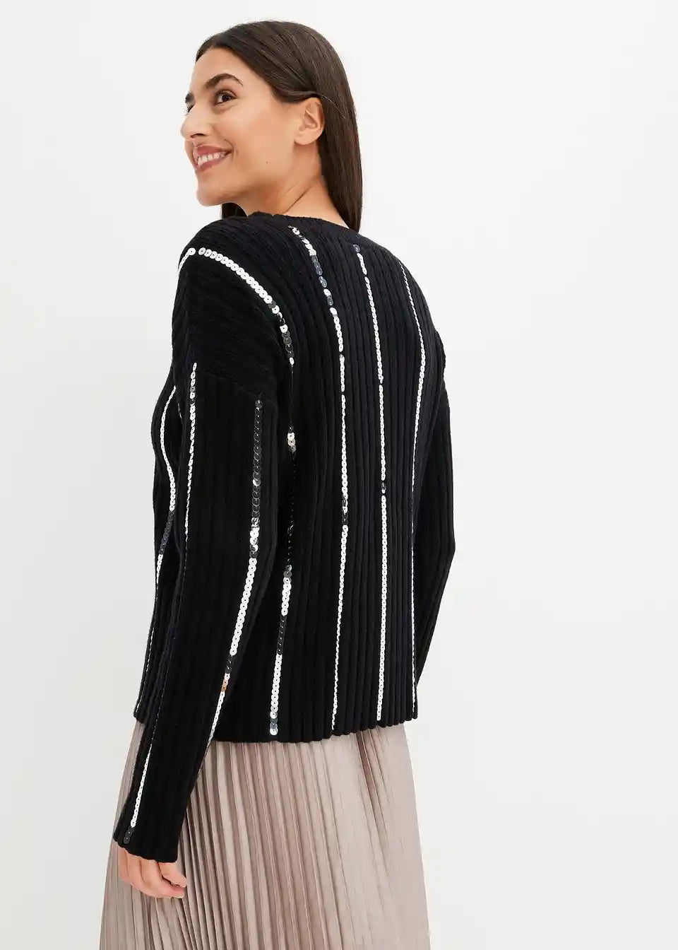 klassischer Pullover mit glänzenden Nadelstreifen