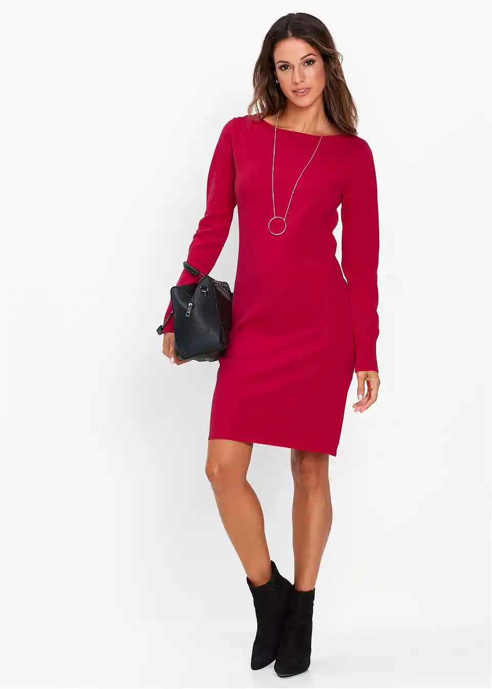 Klassisches schlichtes Strickkleid mit langen Ärmeln