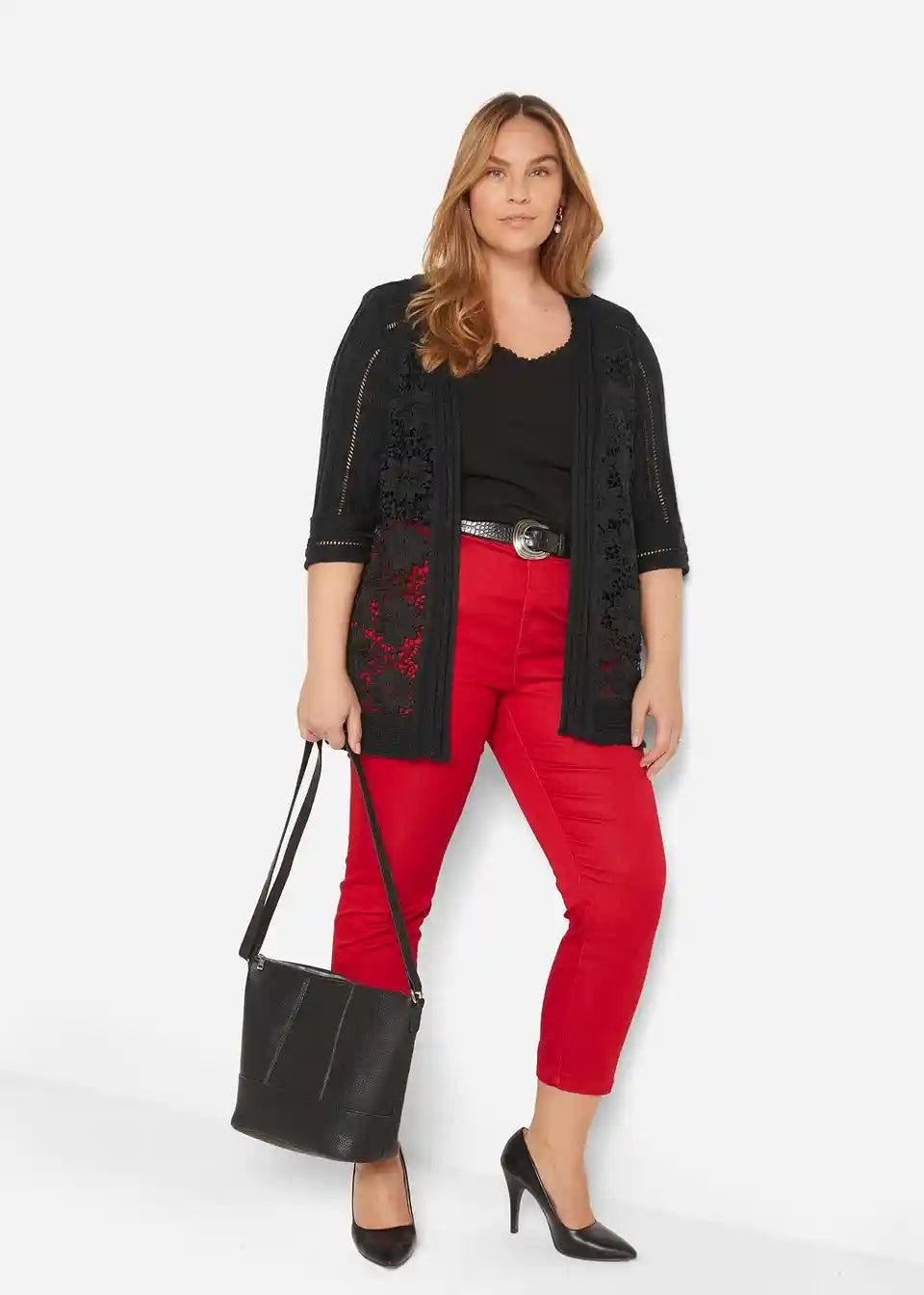 elegante Strickjacke mit Spitze