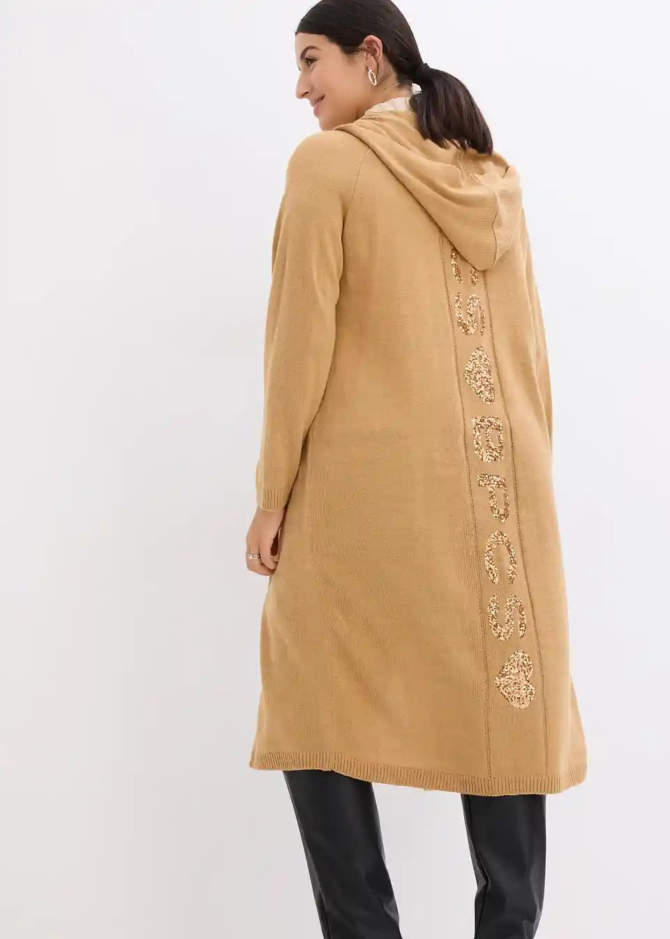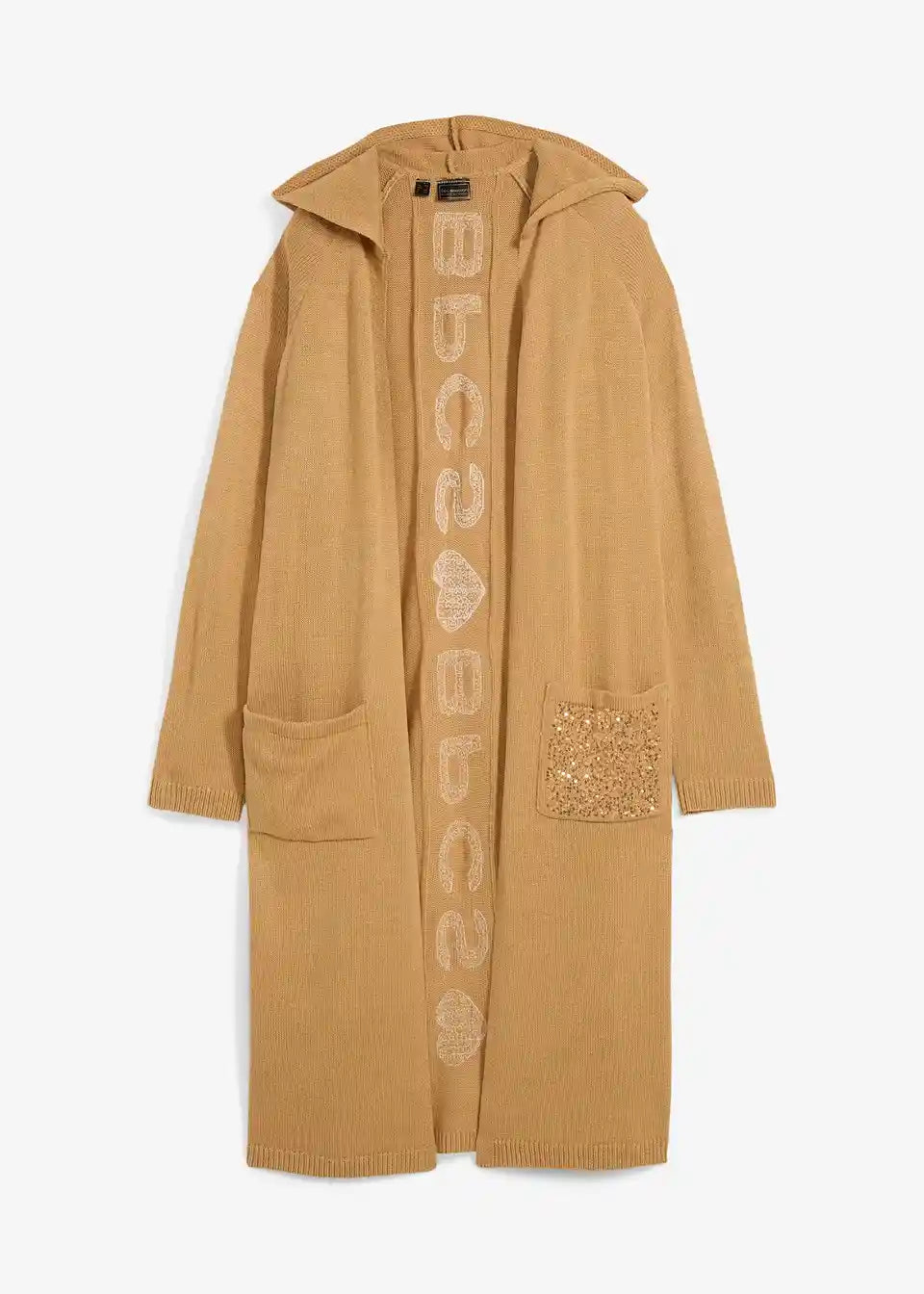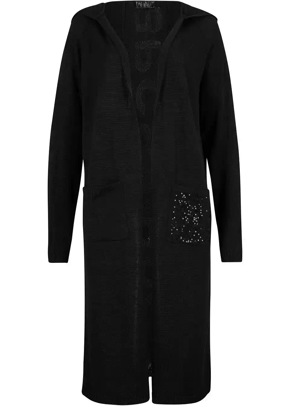 Strickmantel mit Pailletten und Kapuze