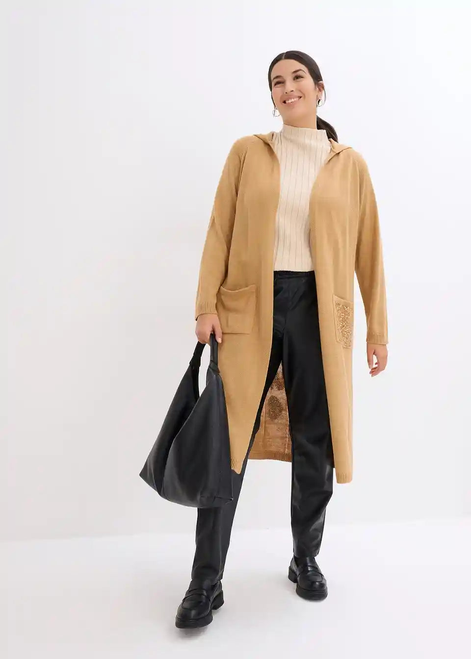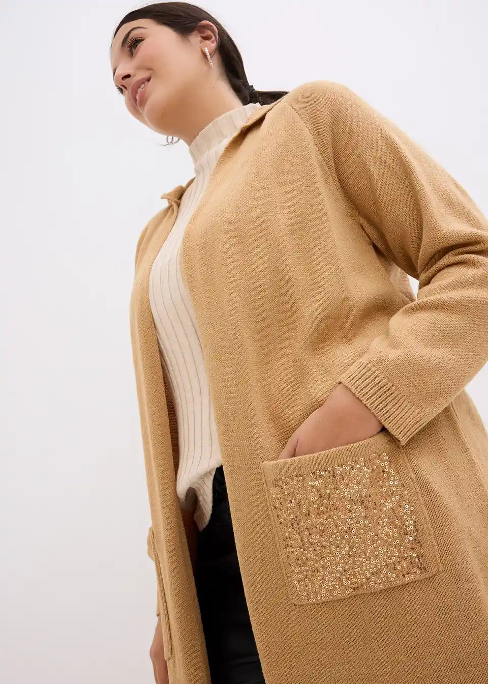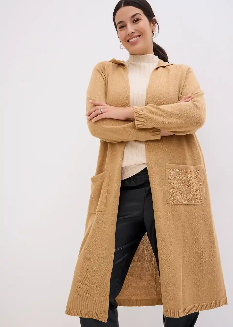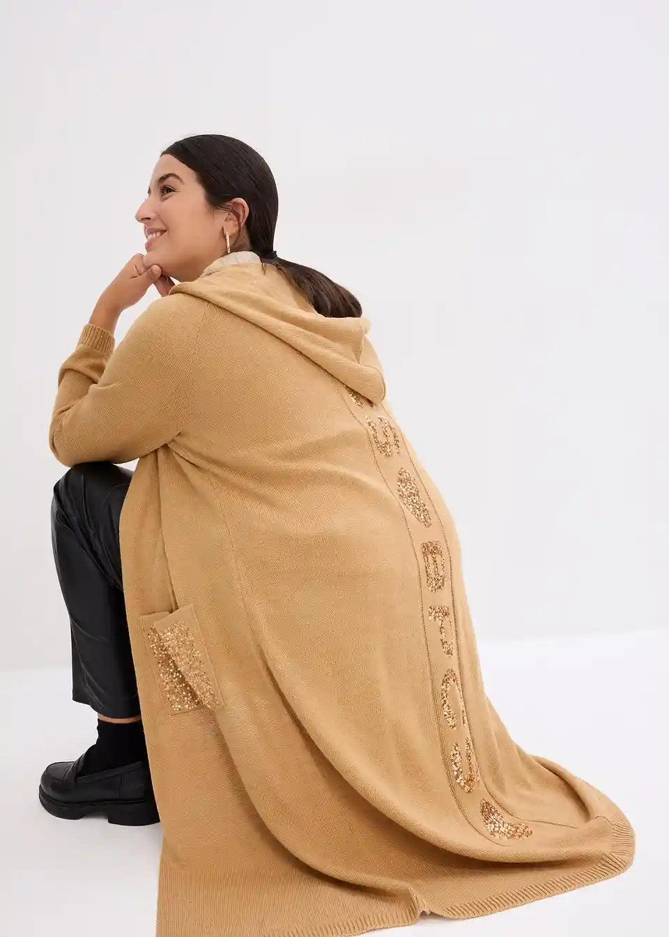 Strickmantel mit Pailletten und Kapuze