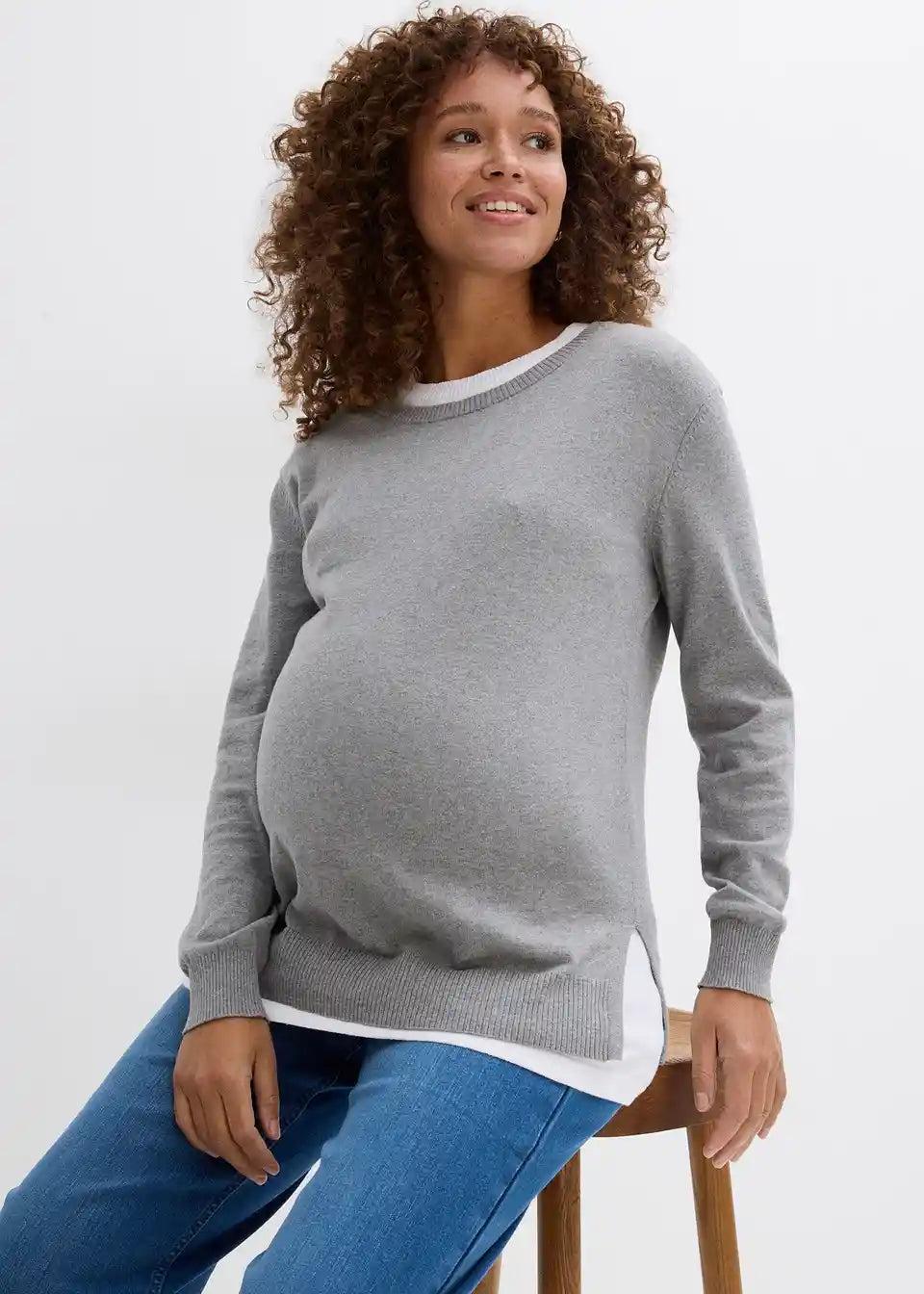 3-in-1 Set aus Umstandspullover und Stilltop aus Baumwollstrick