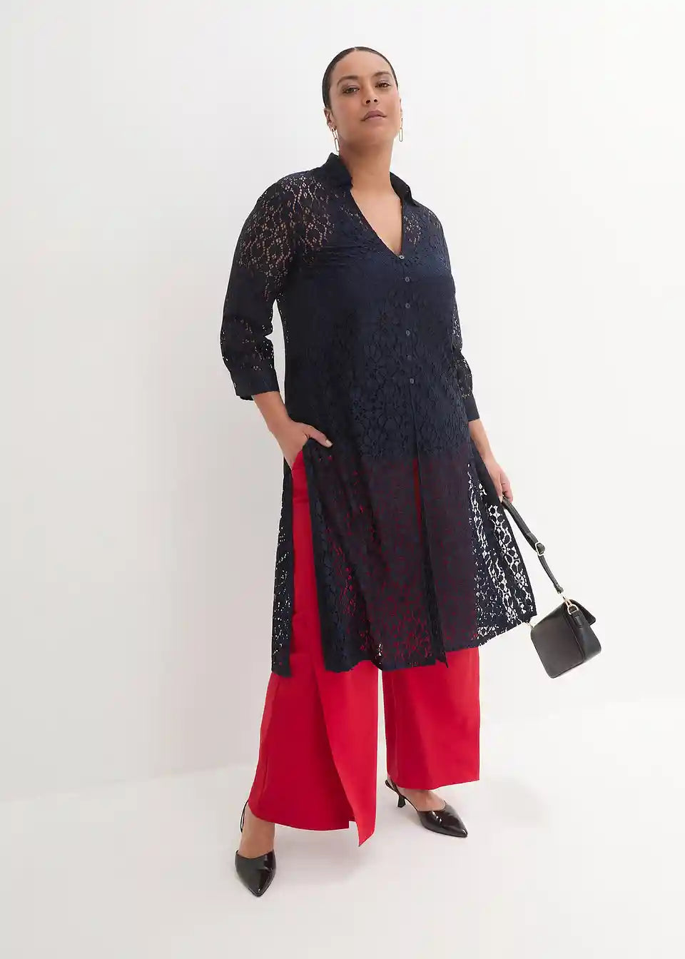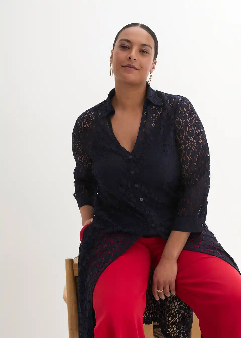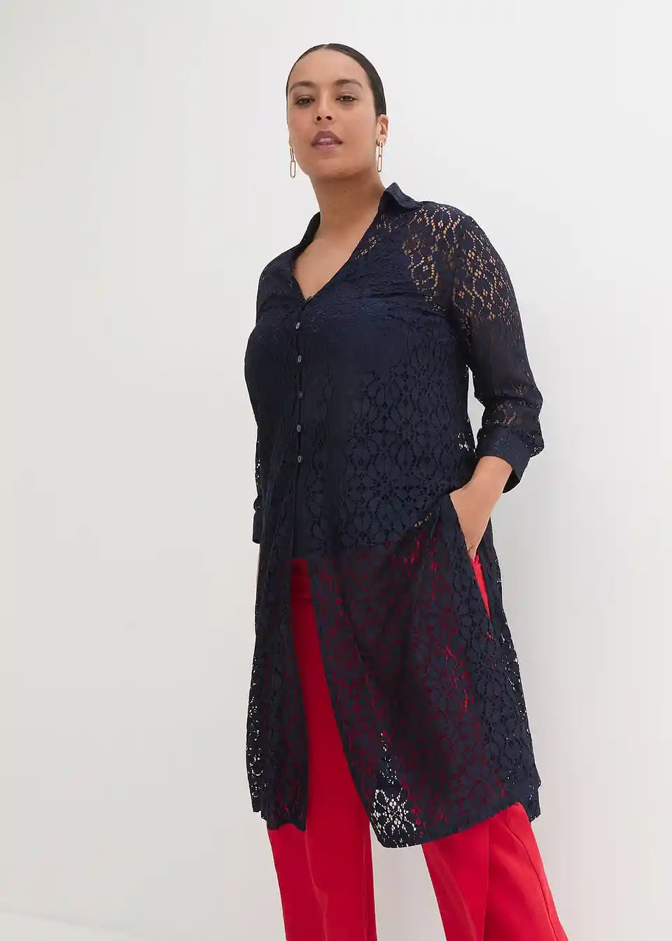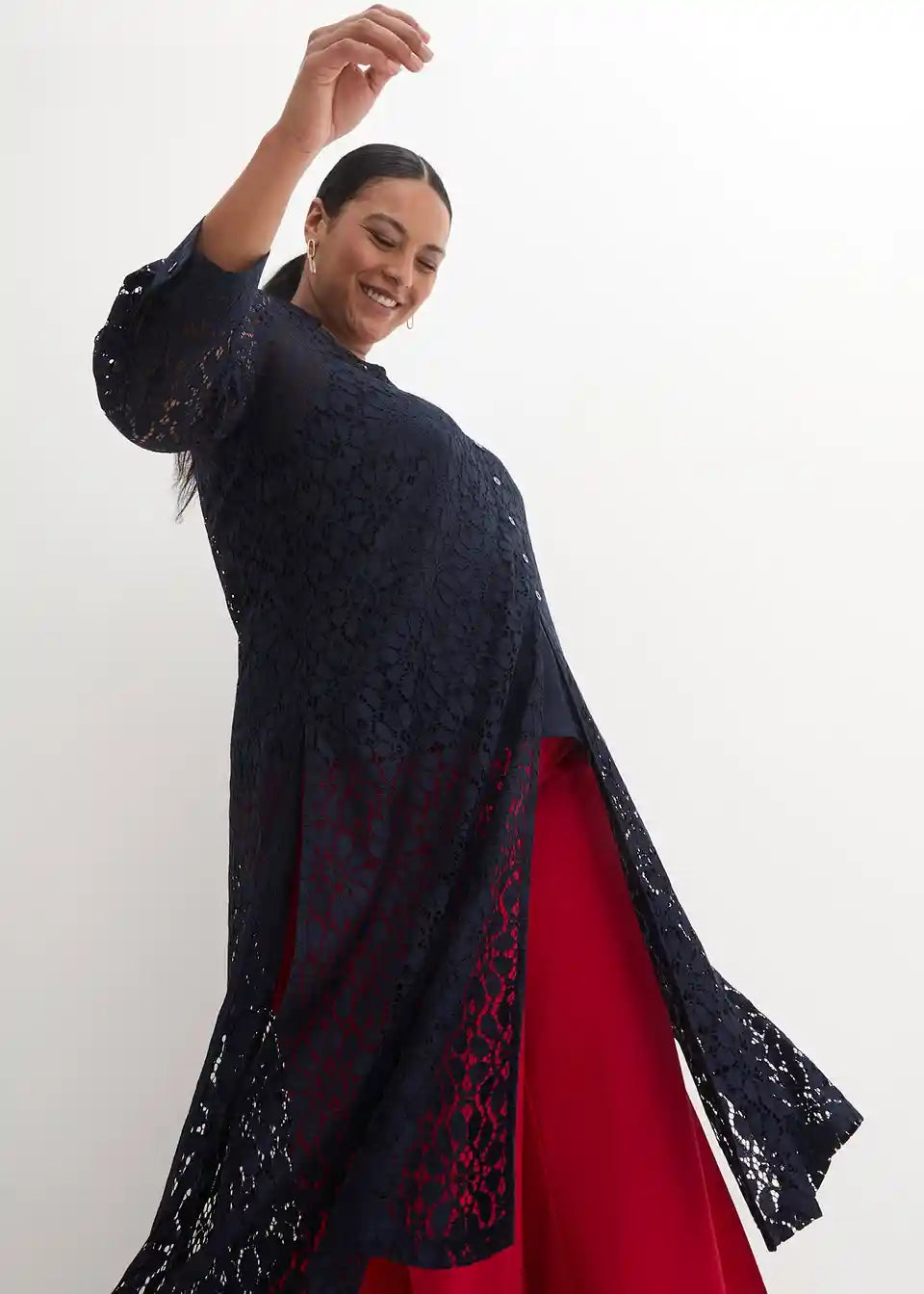 Spitzen- Longbluse mit Top (2-tlg. Set)