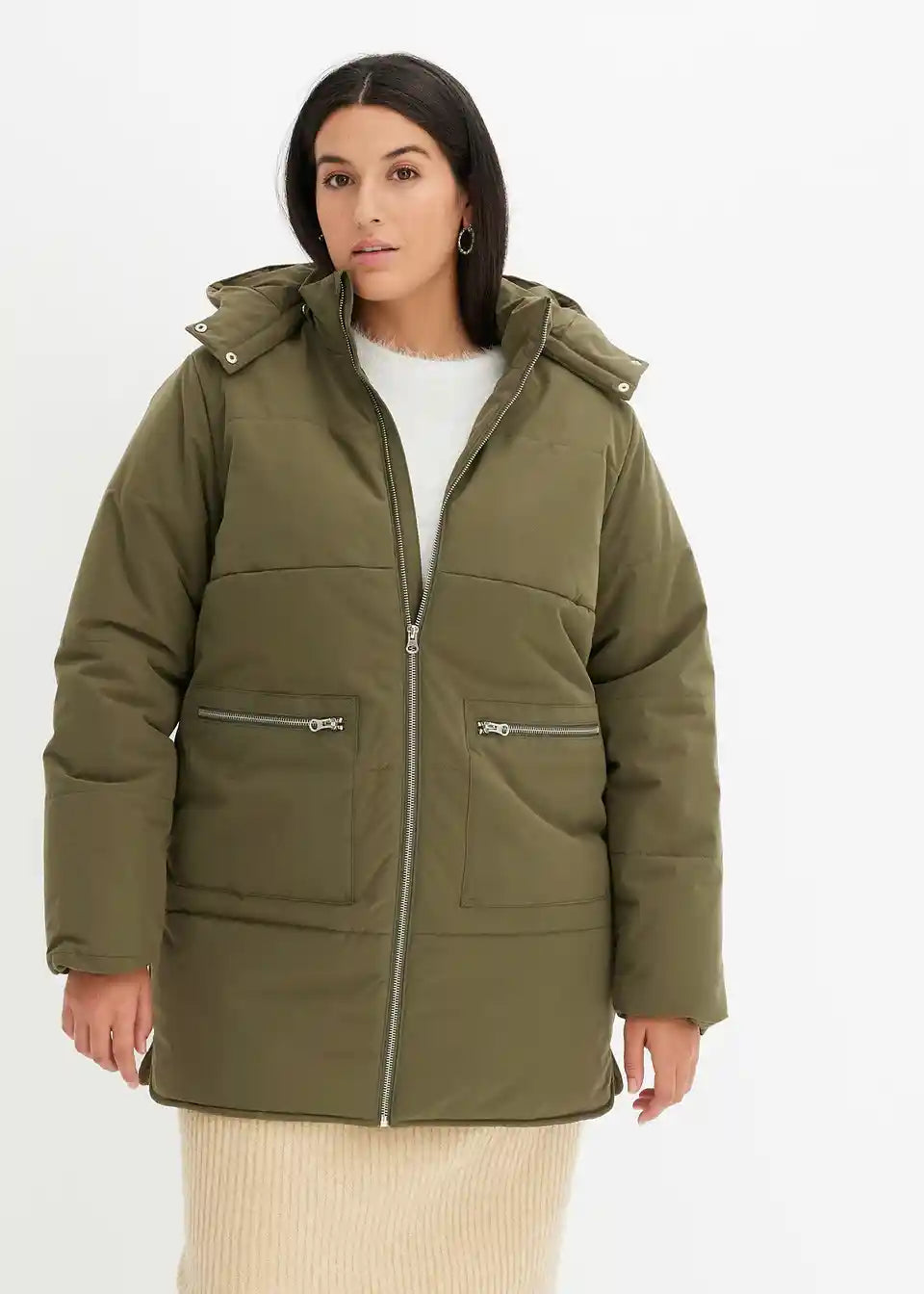 Warme voluminöse Steppjacke mit Taschen und Reißverschluss