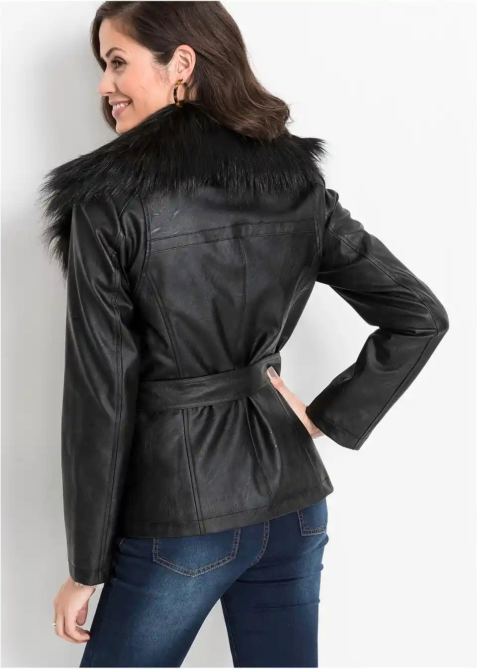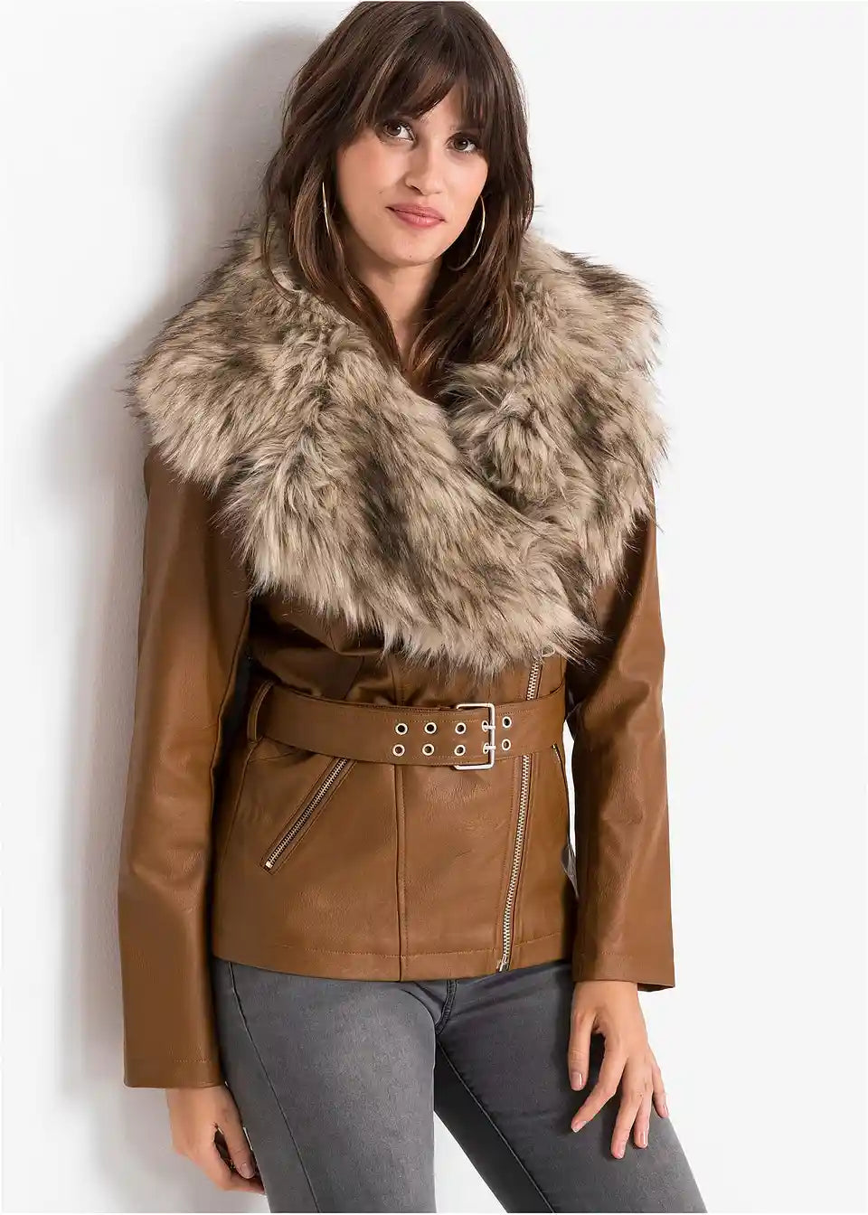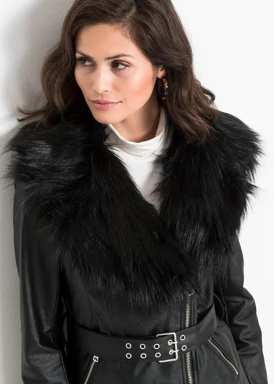 Attraktive Lederimitat-Jacke mit opulentem Fellimitatkragen.