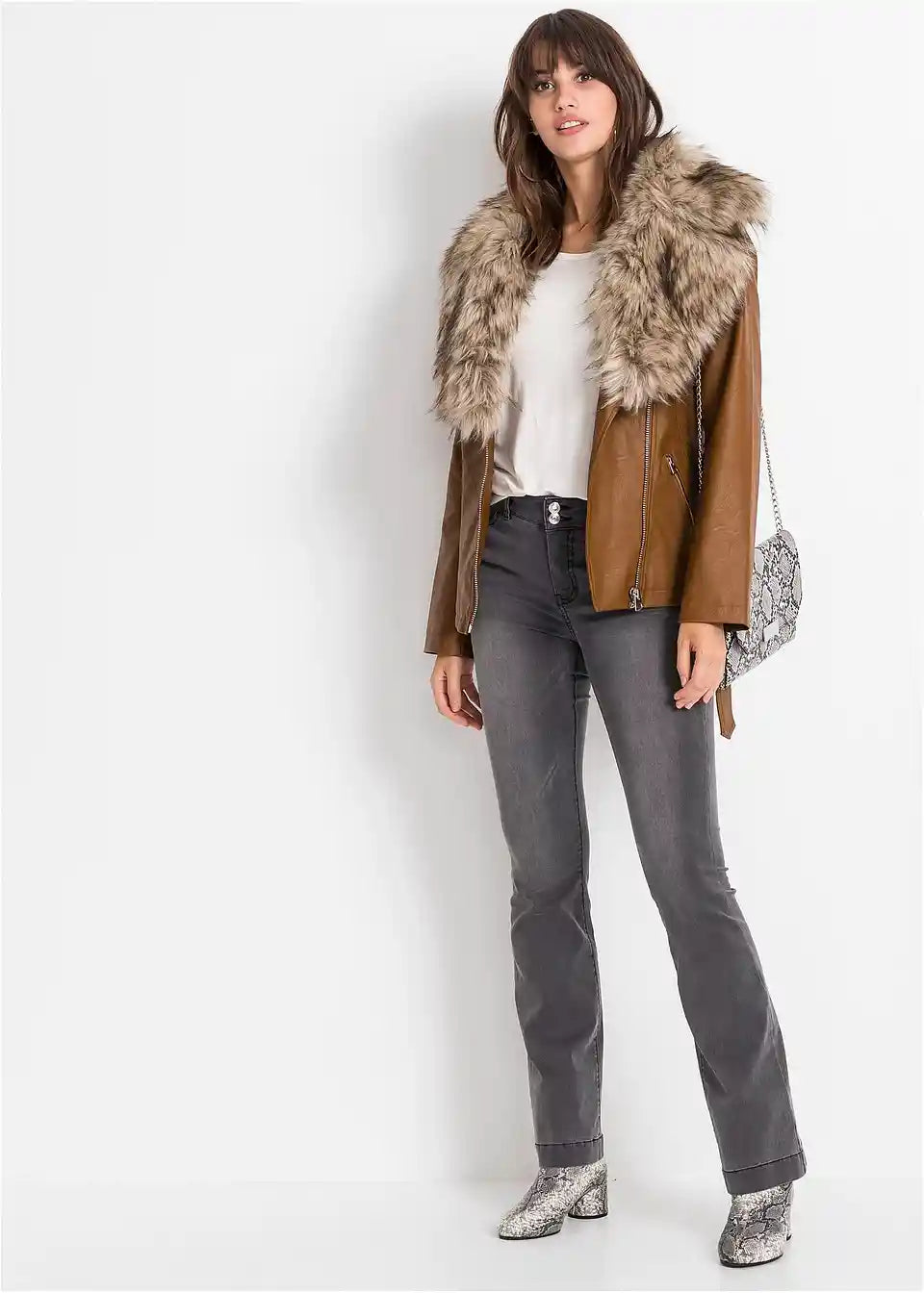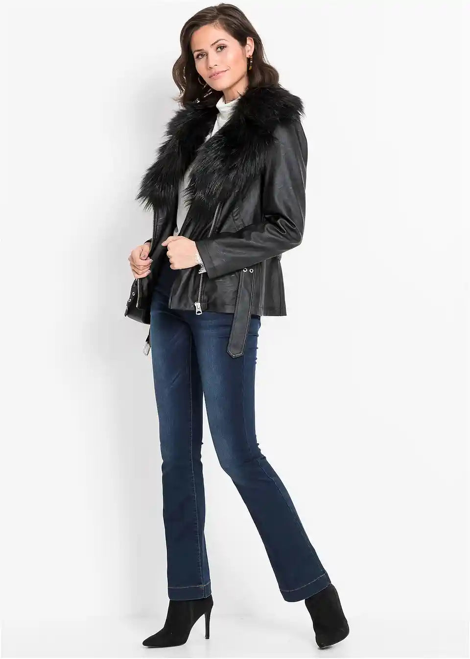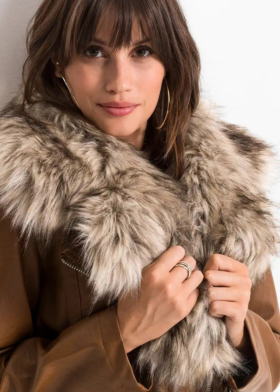 Attraktive Lederimitat-Jacke mit opulentem Fellimitatkragen.