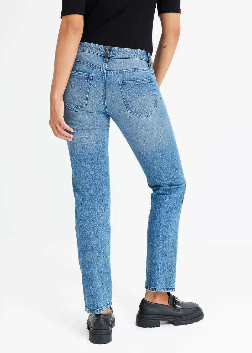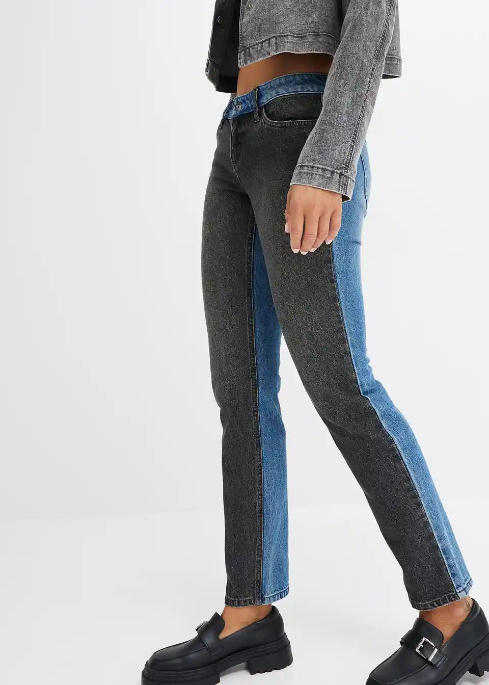 Niedrig geschnittene Straight Jeans mit Color Blocking