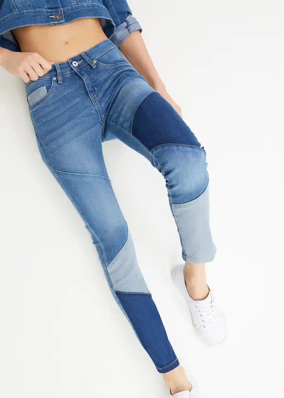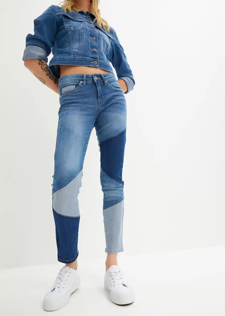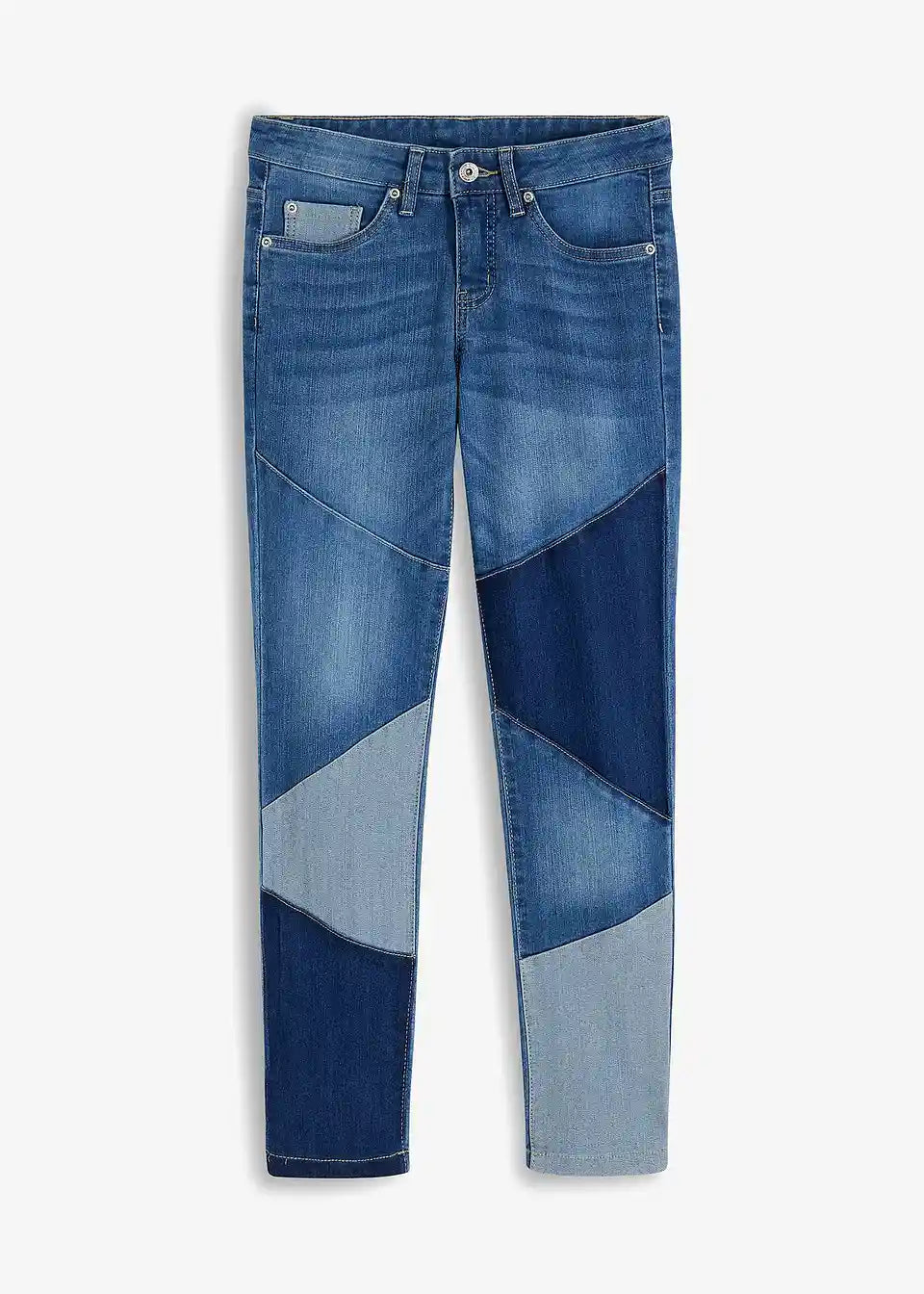 Diese Skinny Jeans mit dreieckigen Einsätzen ist ein cooles Teil für die Freizeit. Durch die Einsätze in verschiedenen Waschungen entsteht ein stylisher Patchwork-Look. Die schmale Passform der Hose betont die Figur und setzt die Beine fantastisch in Szene.Das angesagte Modell zeichnet sich durch den klassischen 5-Pocket-Stil und eine niedrige Leibhöhe aus.