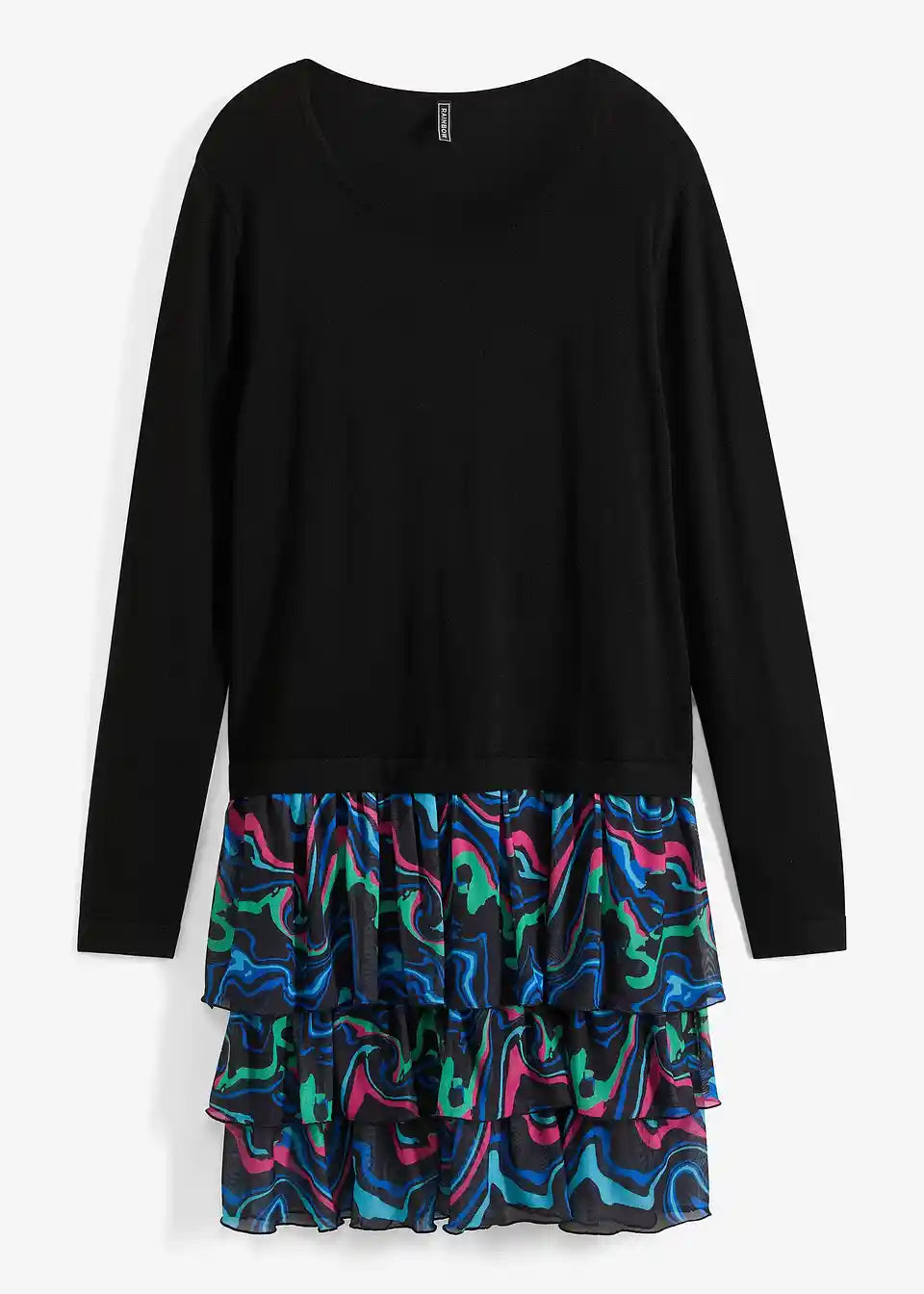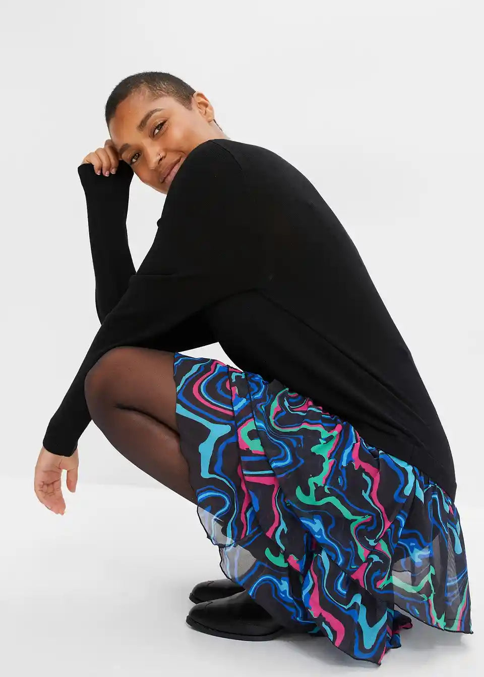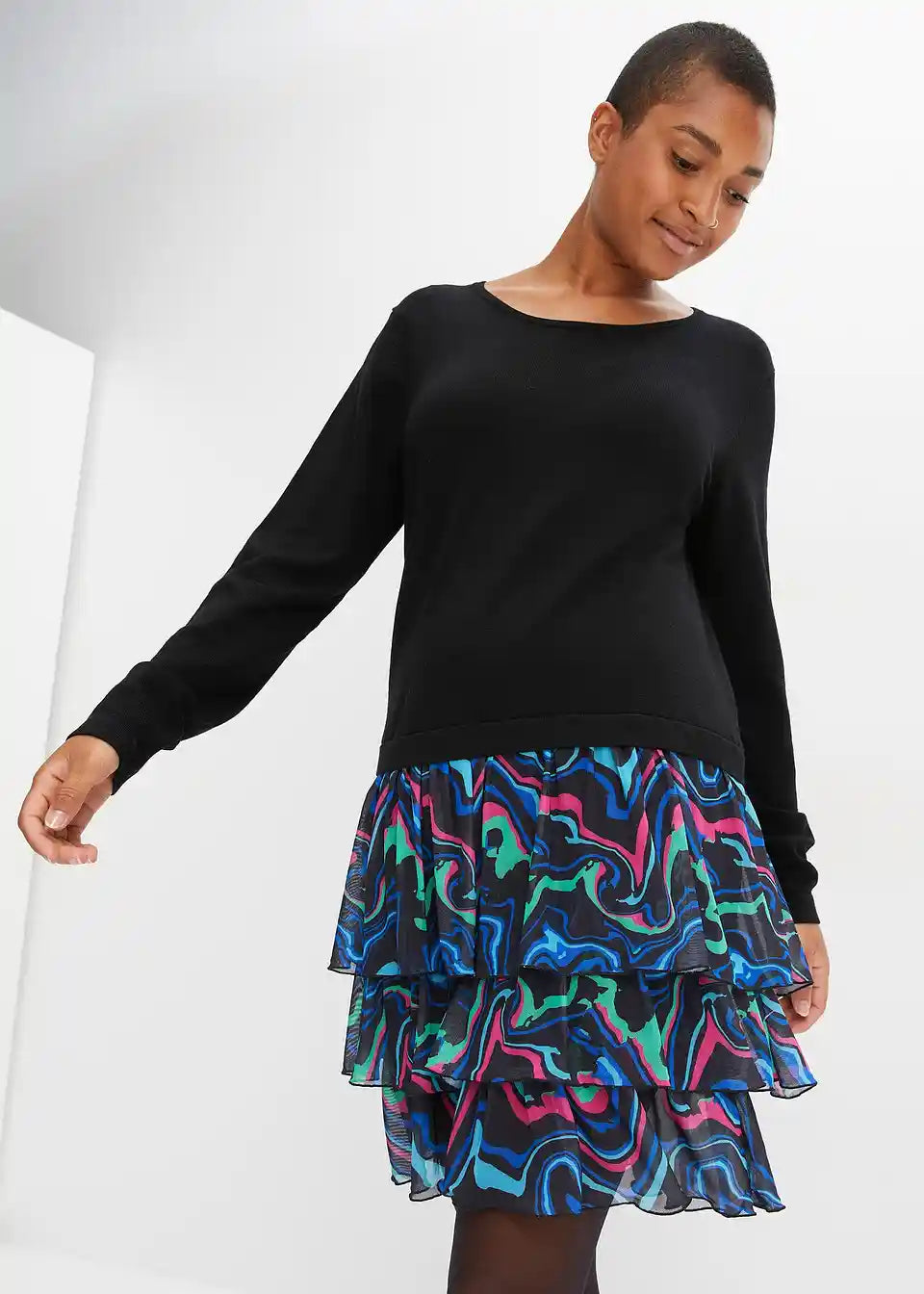 Modernes Strickkleid mit leicht ausgestelltem Volant-Rock