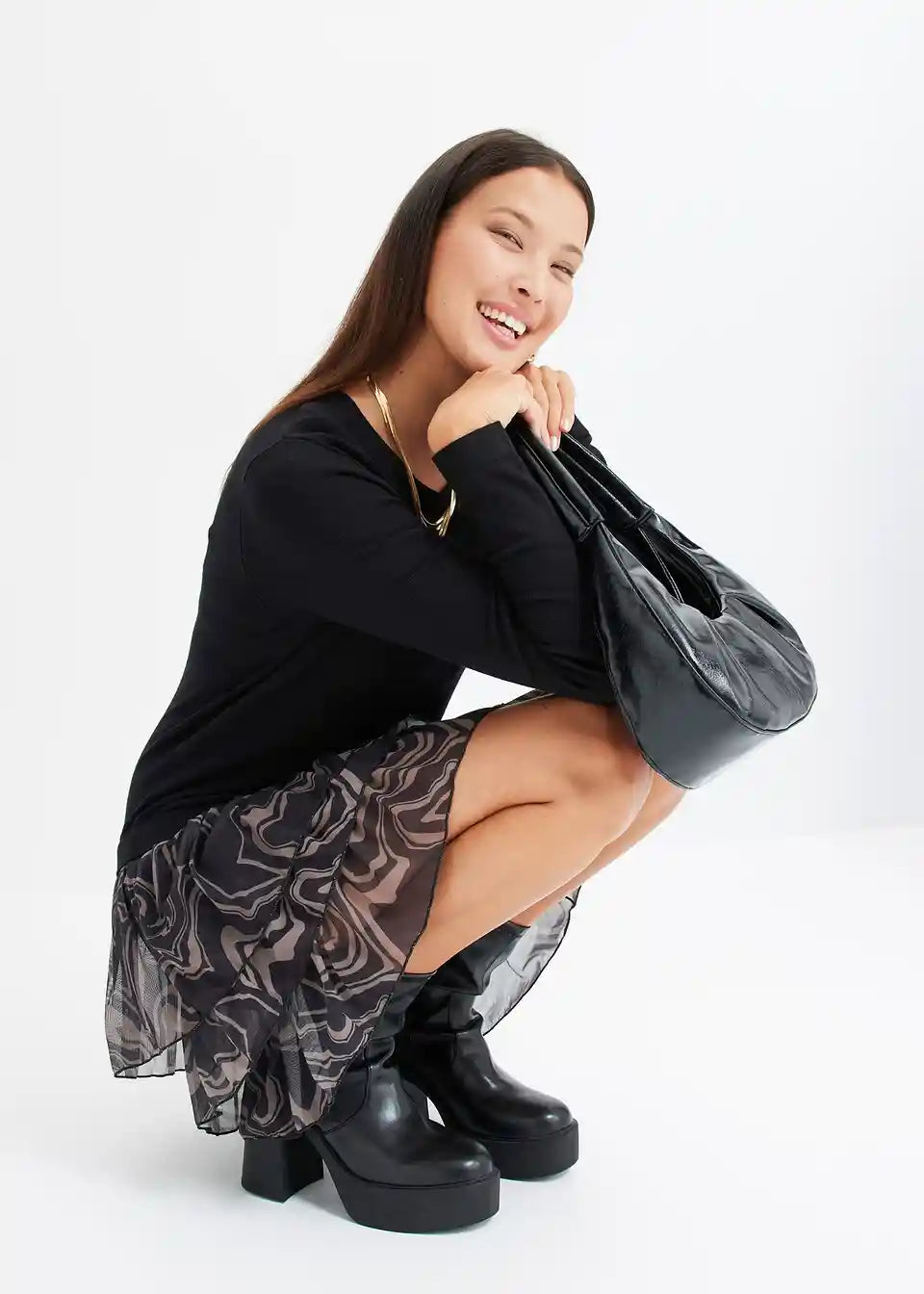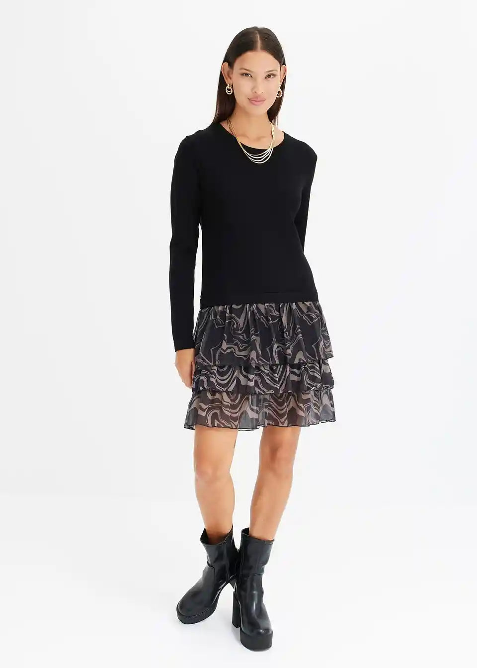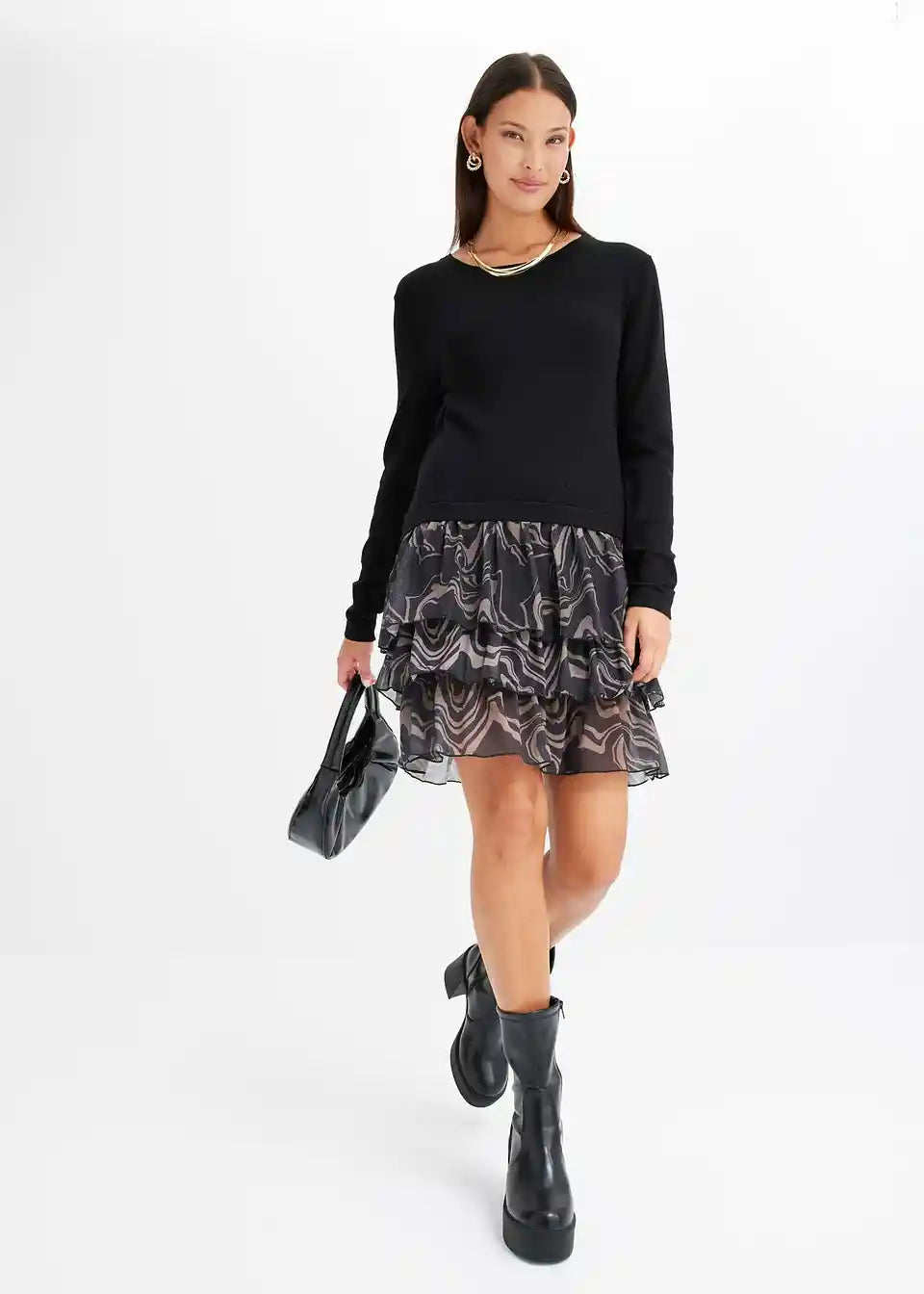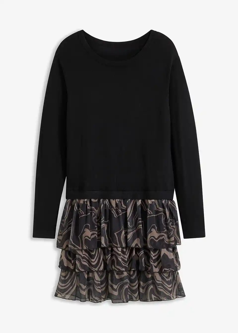 Modernes Strickkleid mit leicht ausgestelltem Volant-Rock