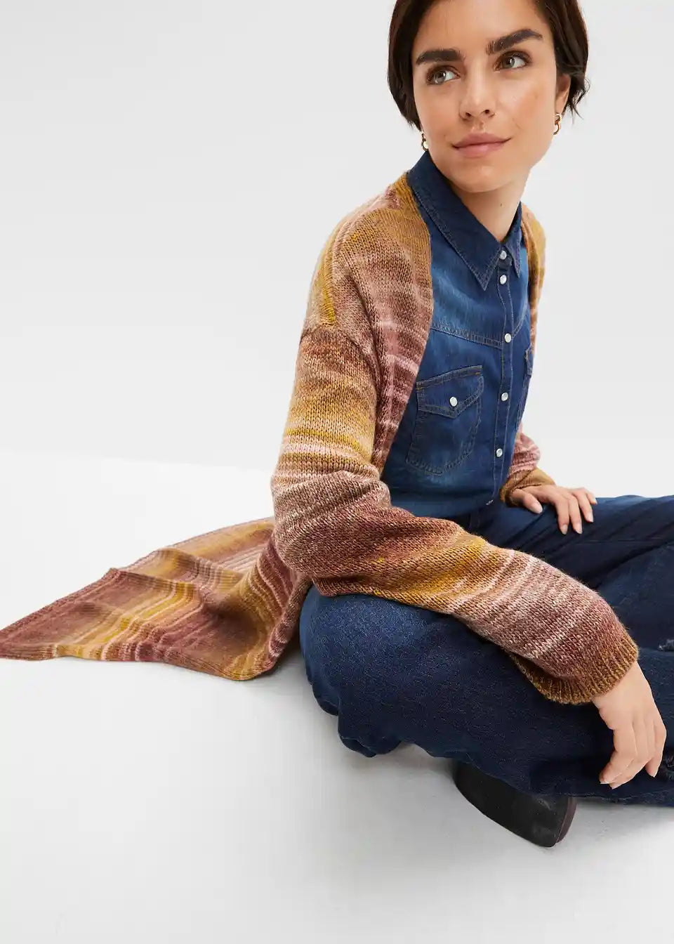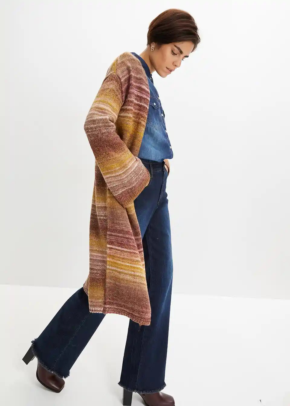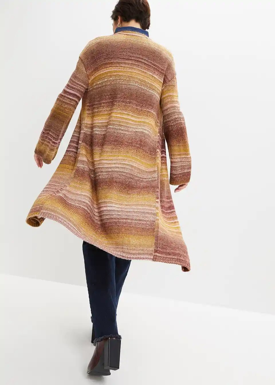 Modischer, langer Strickmantel mit überschnittener Schulter. Jedes Teil ein Unikat.