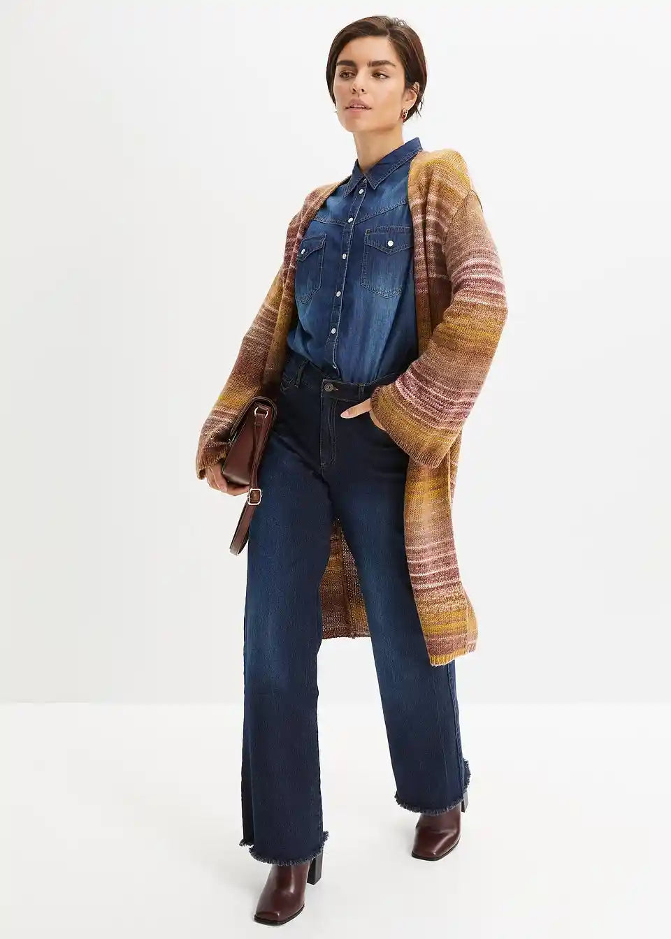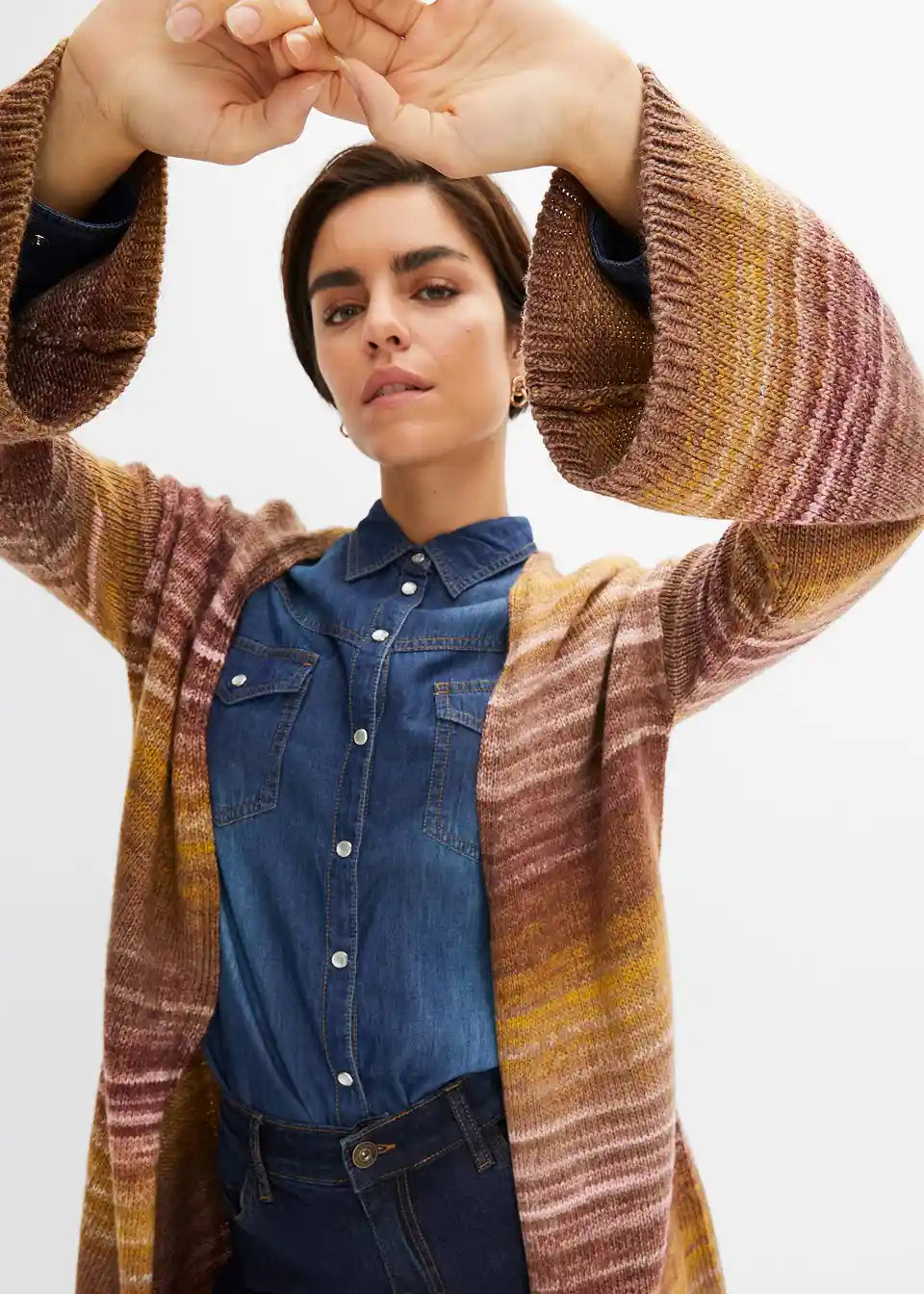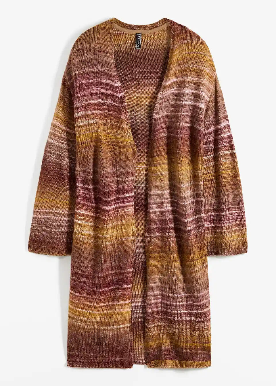 Modischer, langer Strickmantel mit überschnittener Schulter. Jedes Teil ein Unikat.