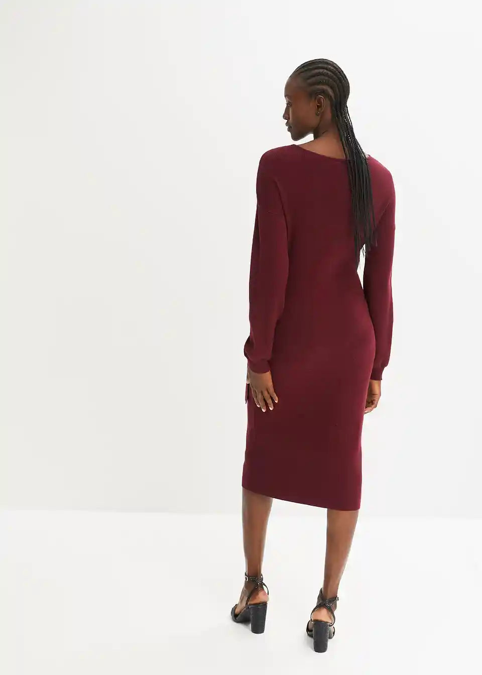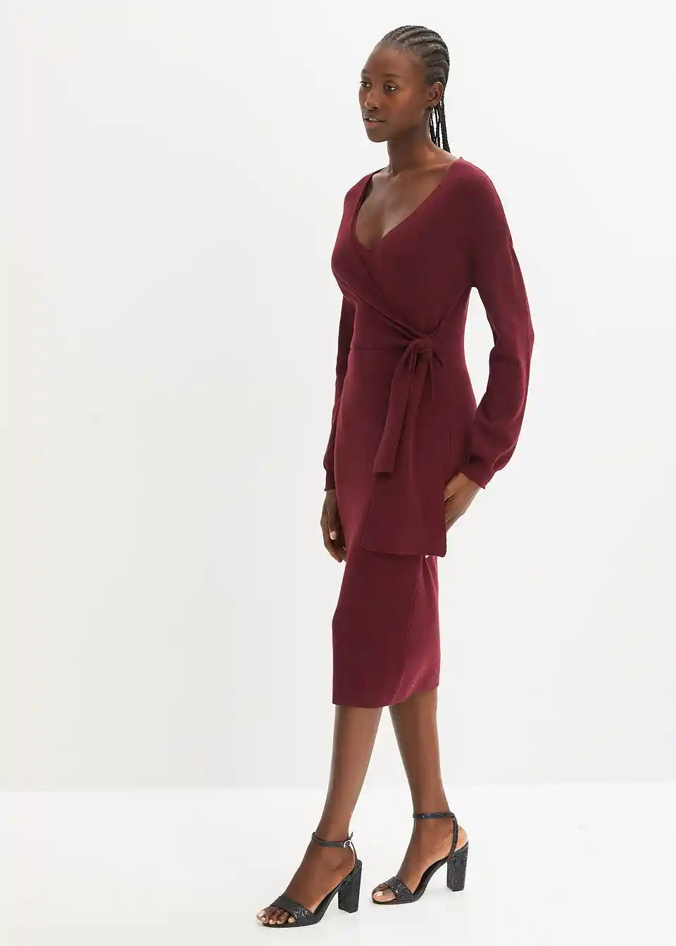 Langärmliges Strickkleid in Wickeloptik und Midilänge