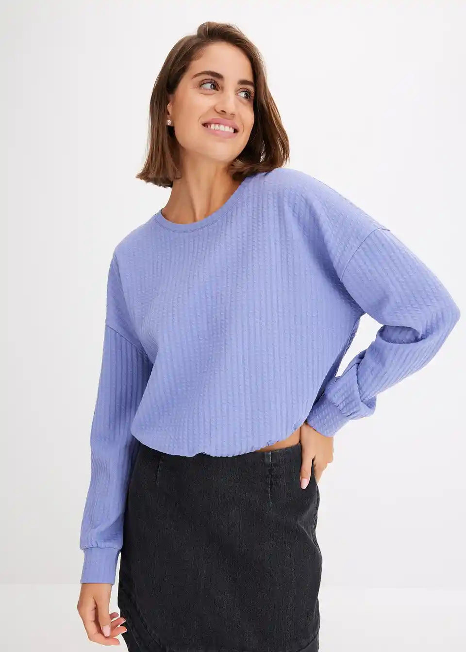 Langärmliges Strukturshirt mit Raffungsmöglichkeit am Saum