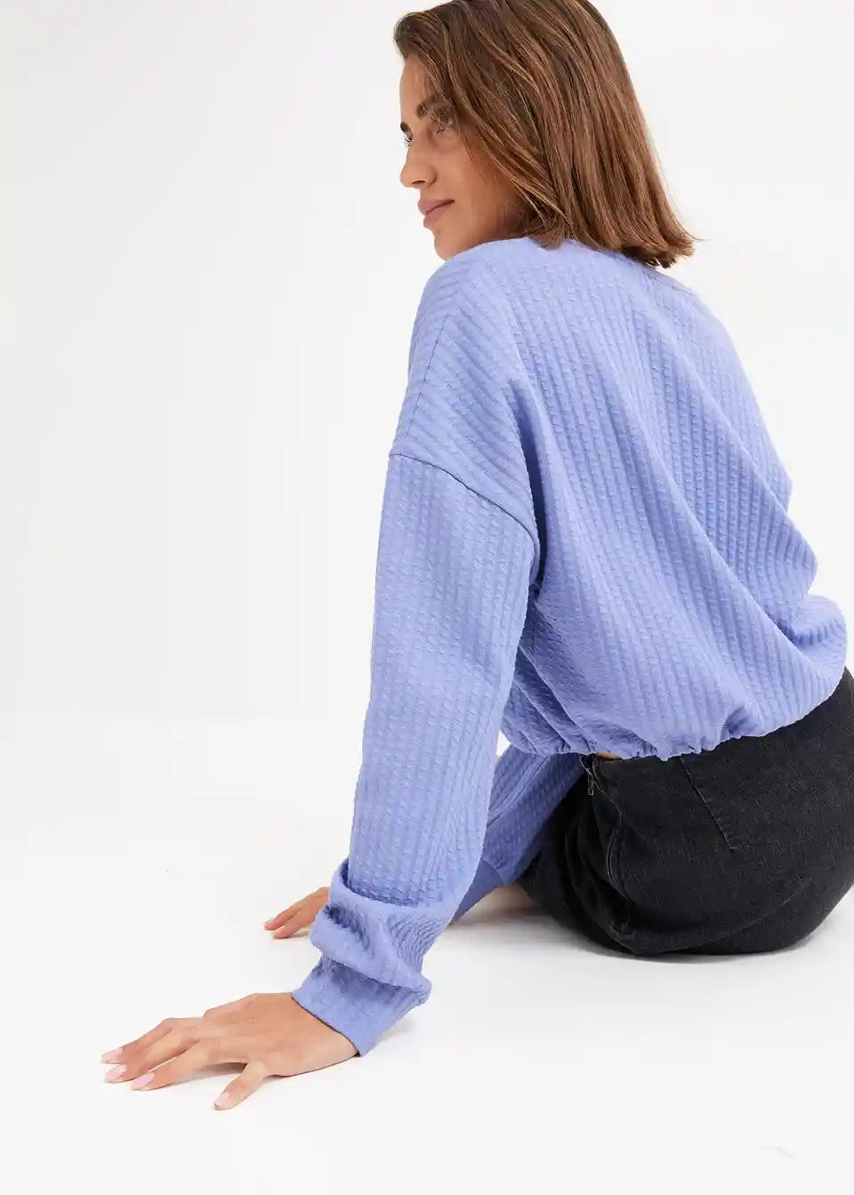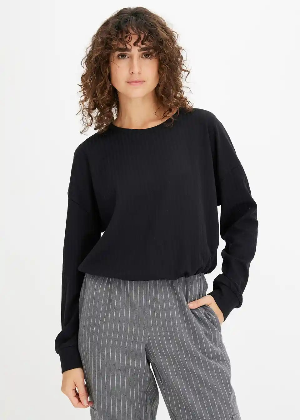 Langärmliges Strukturshirt mit Raffungsmöglichkeit am Saum