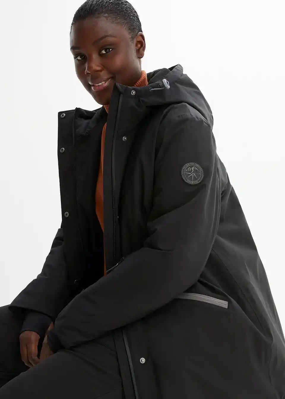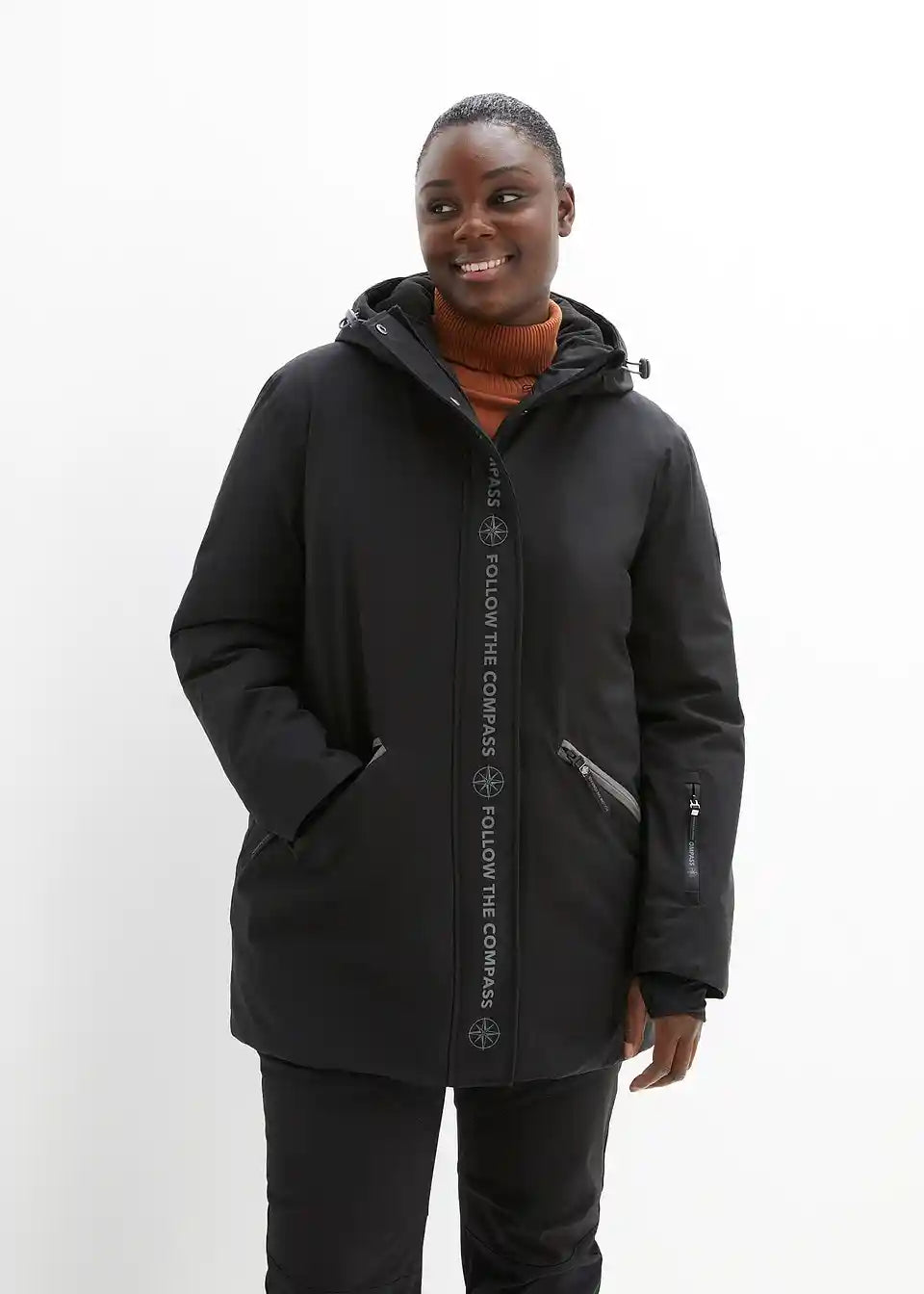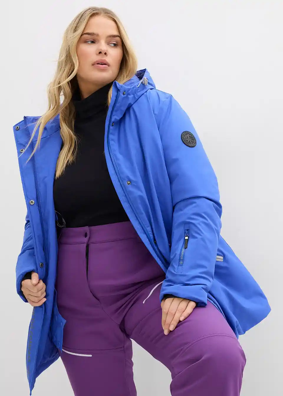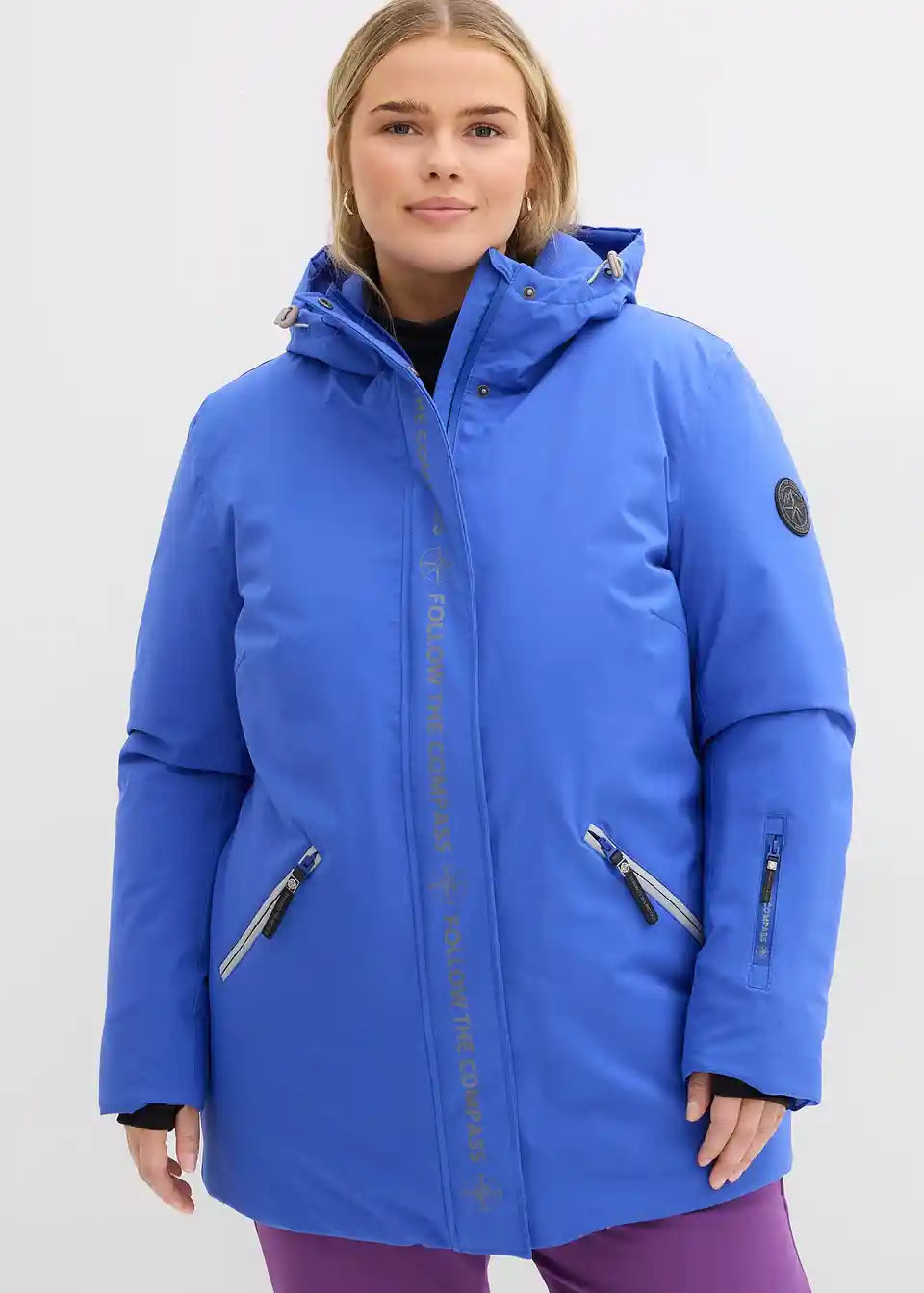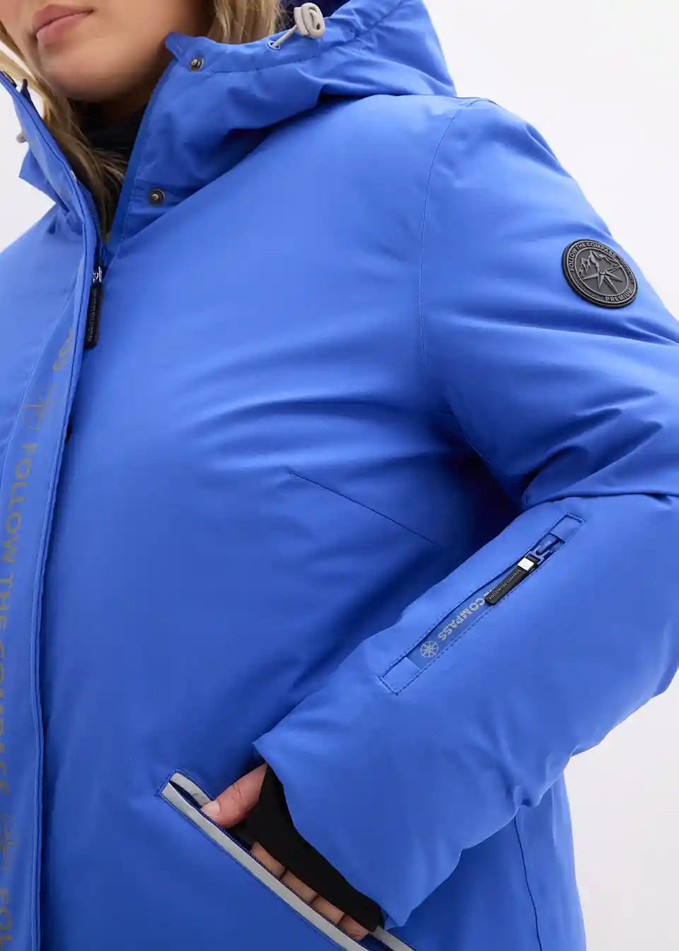Lange Skijacke mit verschließbaren Taschen und Schneefang, weit geschnitten