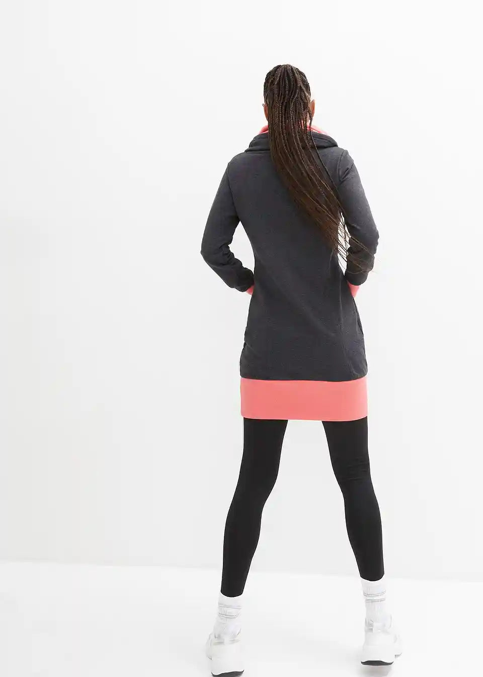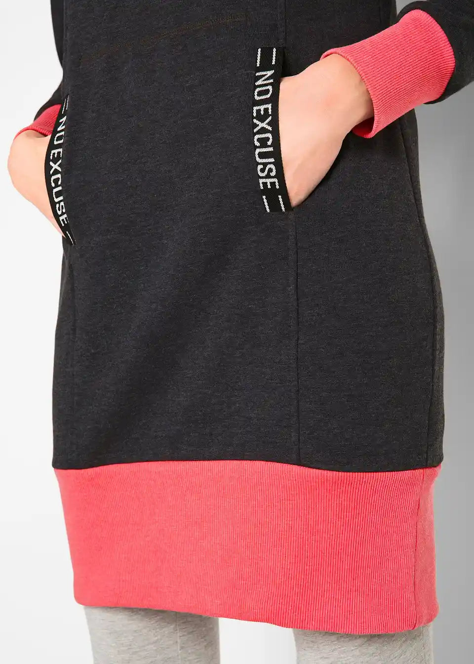 Innen weich angerautes Sweatkleid mit bedrucktem Innenkragen und Kängurutasche