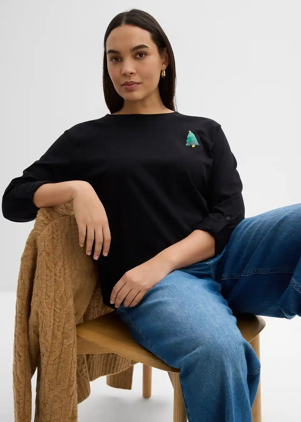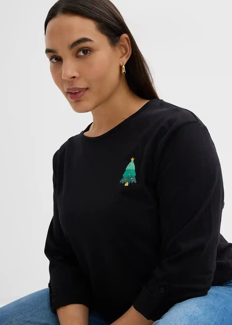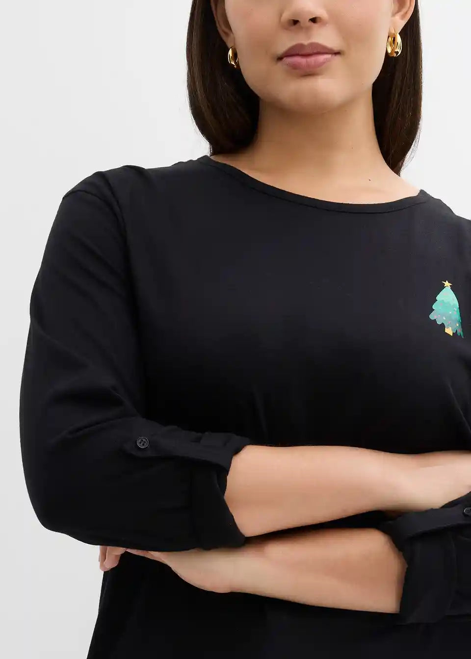 Langarmshirt aus reiner Bio-Baumwolle mit Weihnachtsmotiv
