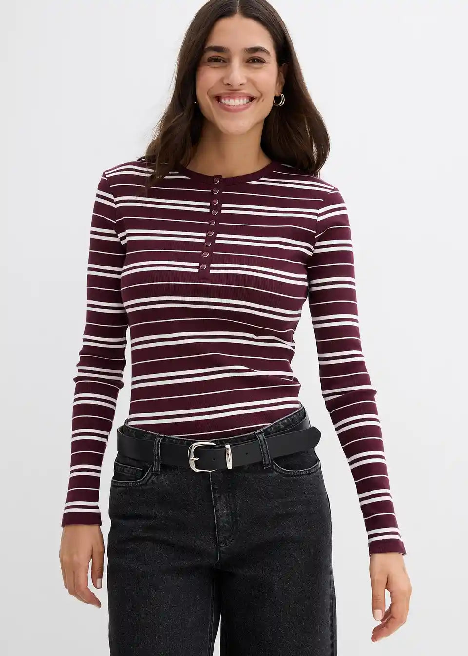 Geripptes Langarmshirt aus Bio-Baumwollmix