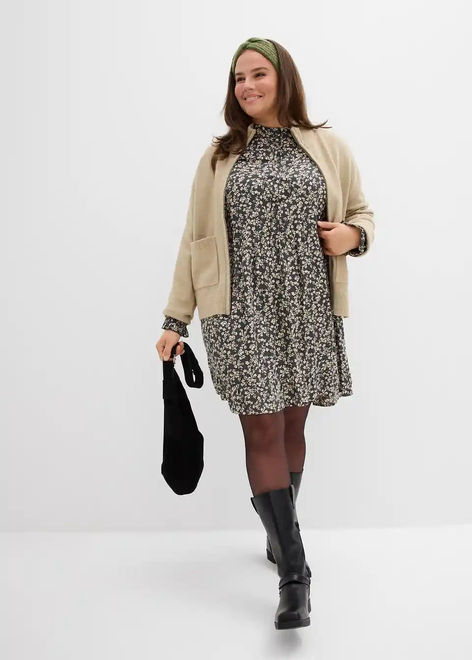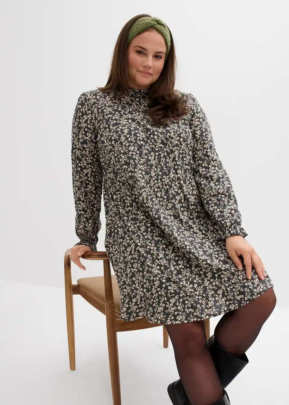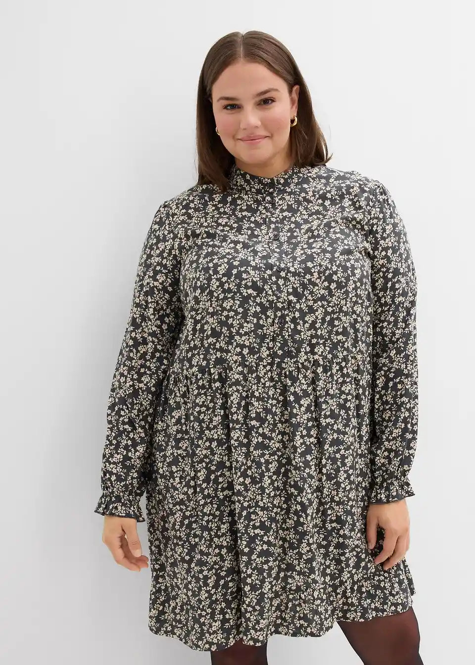 Weites und kurzes Kleid mit Puffärmeln und Rüschen am Ärmelabschluss