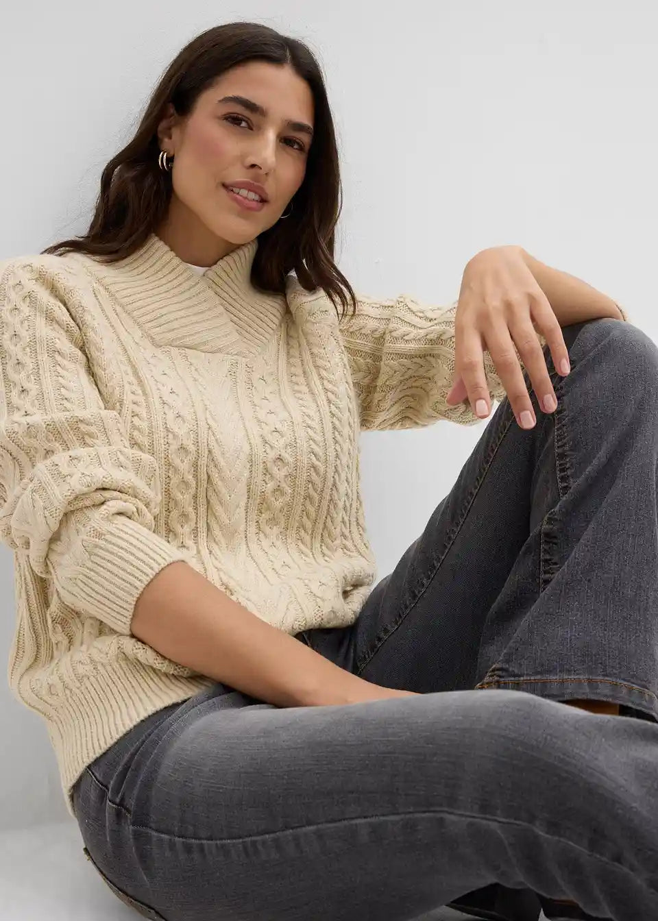 Zopstrick-Pullover mit modischem V-Auschnitt