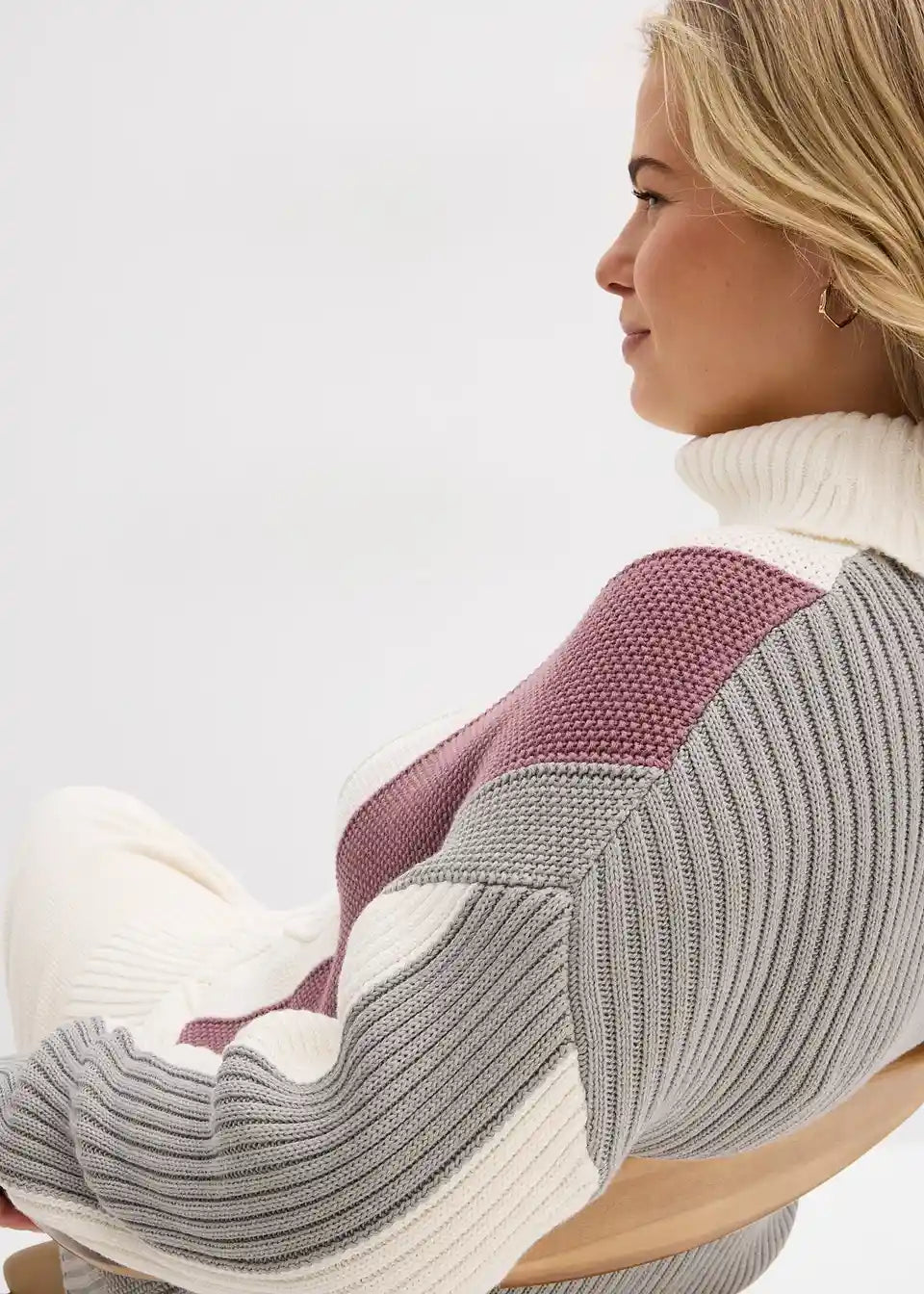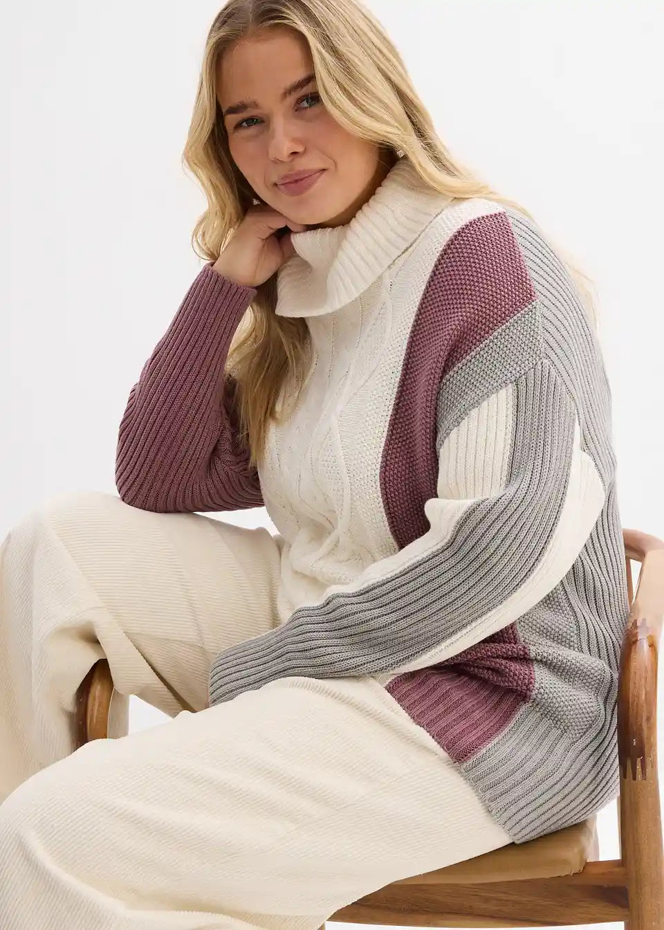 Modischer Zopfstrick-Pullover mit Rollkragen